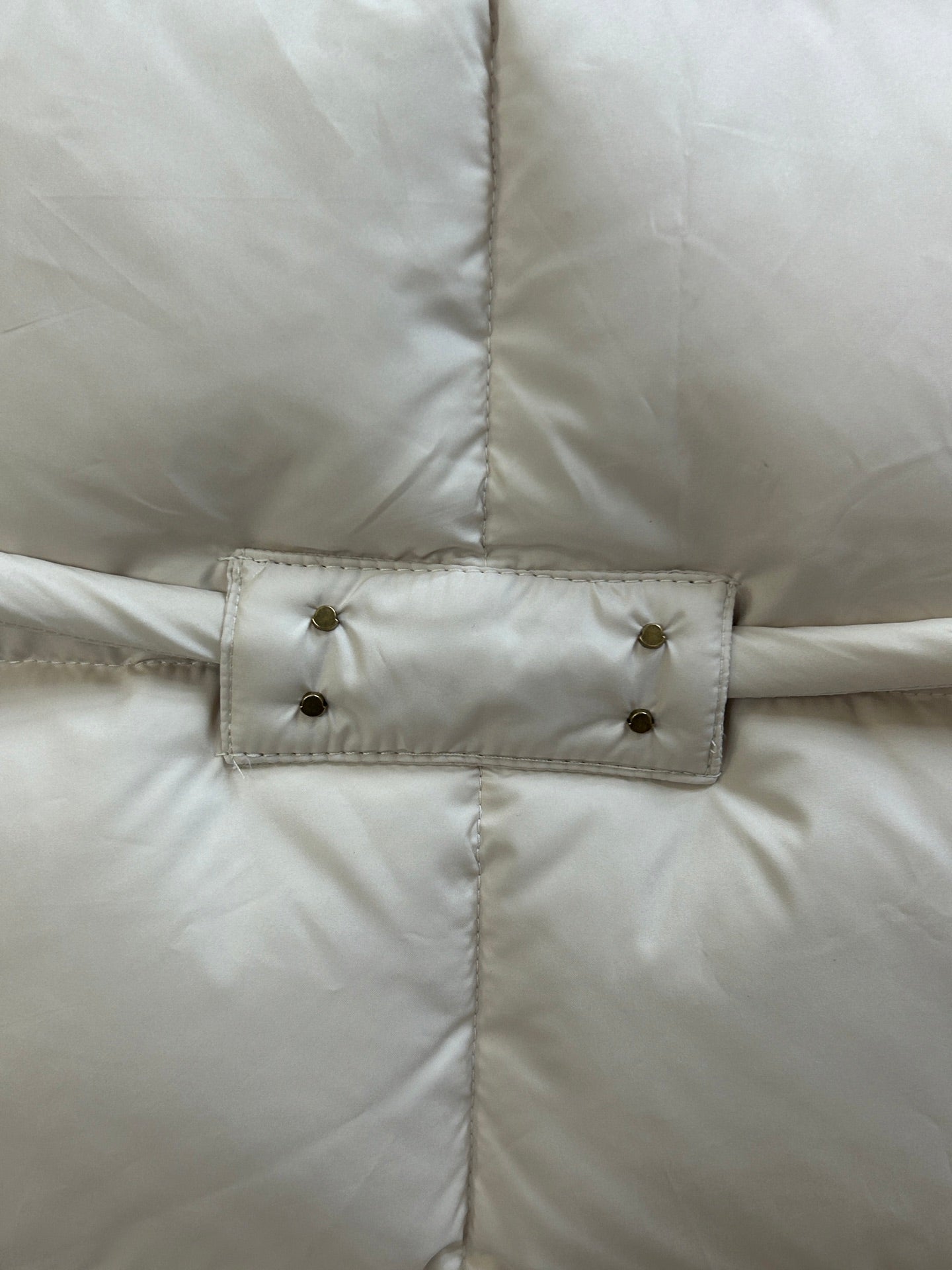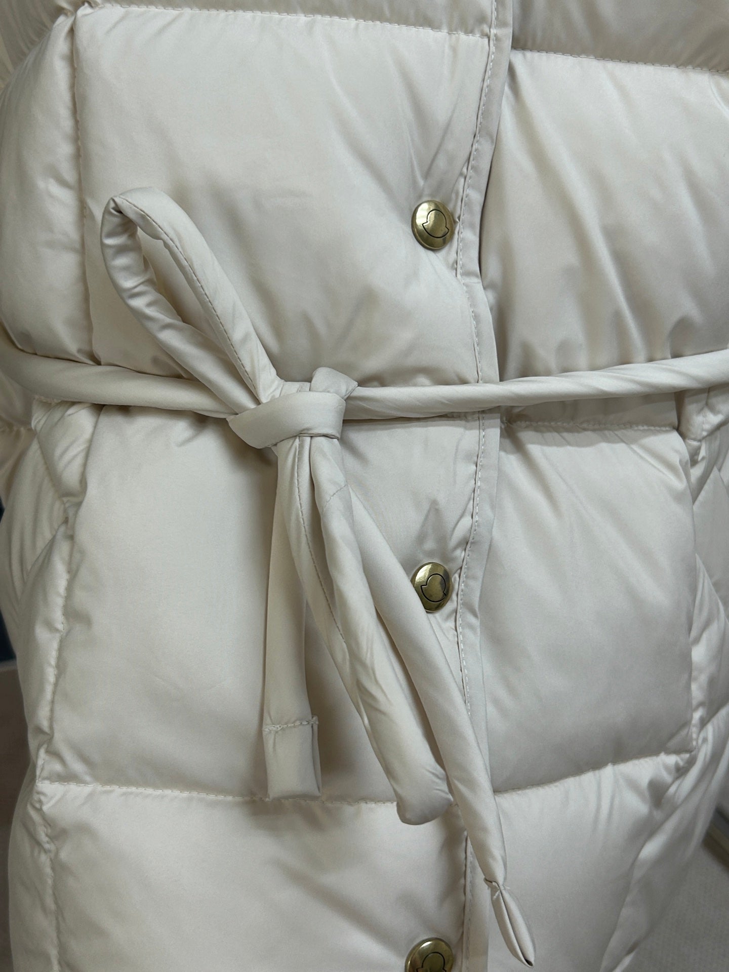 - **Adjustable Waist Belt:** The matching fabric belt cinches the waist, creating an hourglass shape that enhances your figure while maintaining the cozy, voluminous feel typical of "bread jackets." Enjoy the visual appeal of a slimmer silhouette without sacrificing comfort.