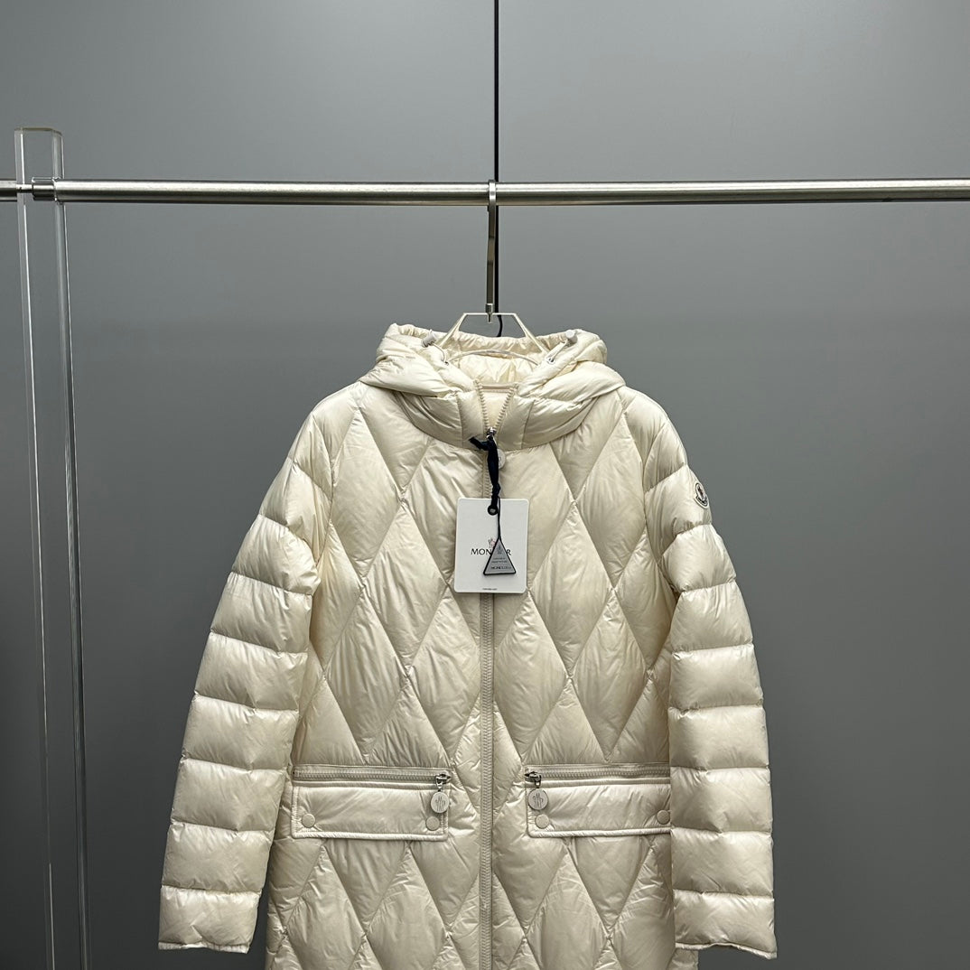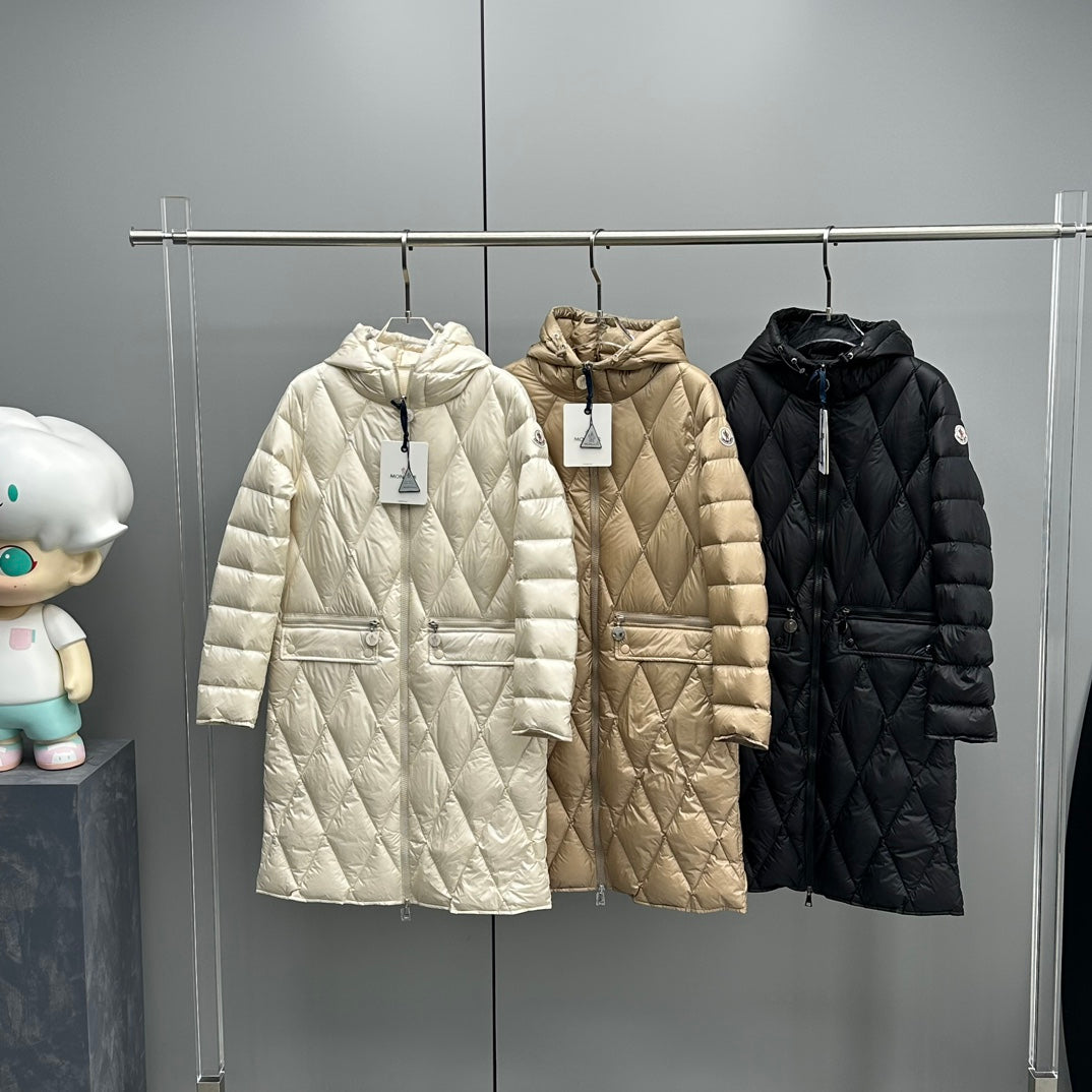 Moncler Women's Hooded Down Jacket - Serilong Mid-Length Diamond Pattern