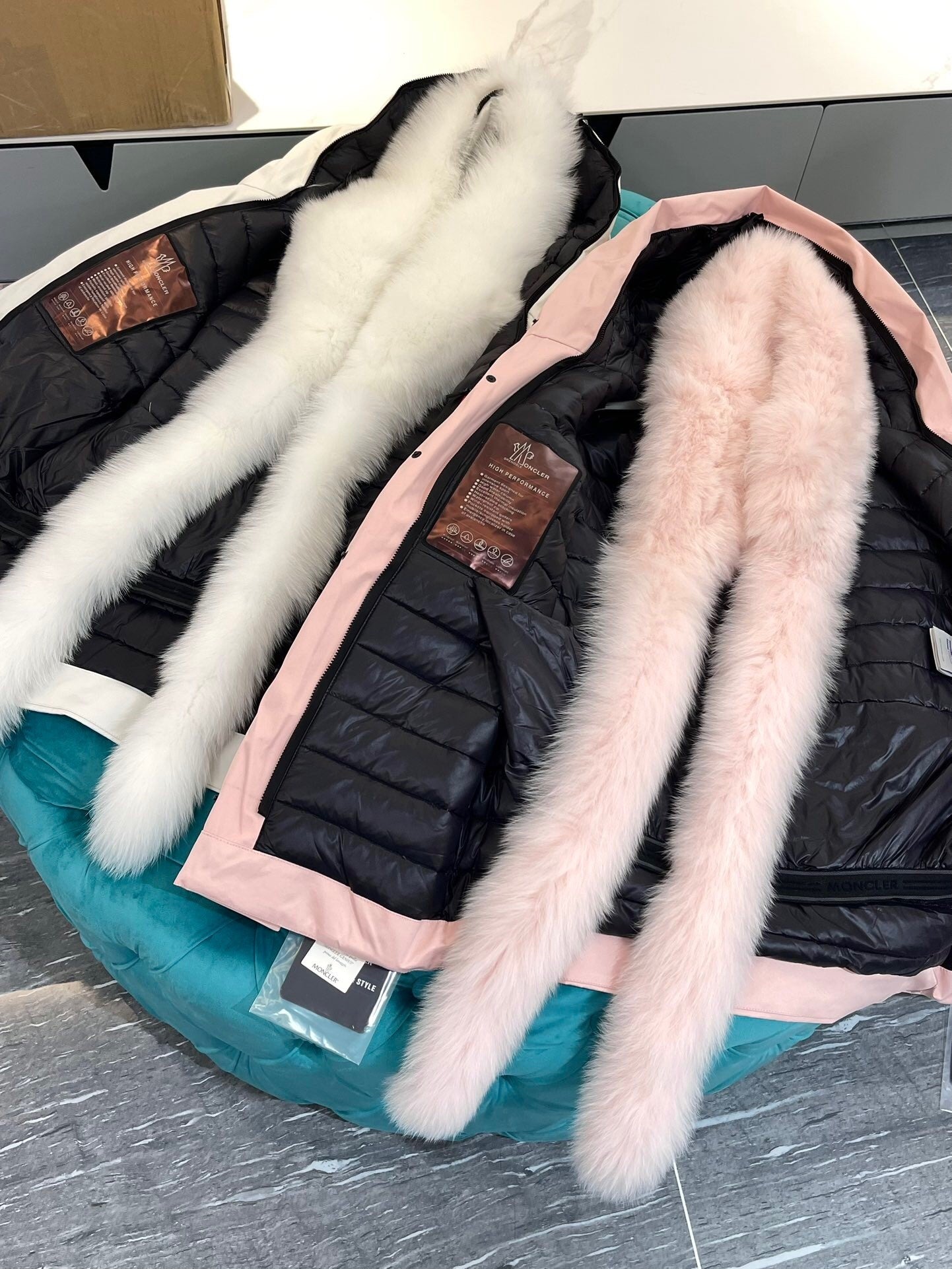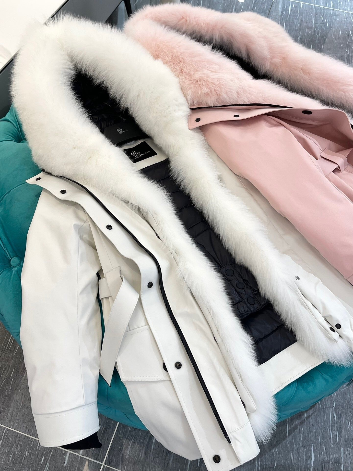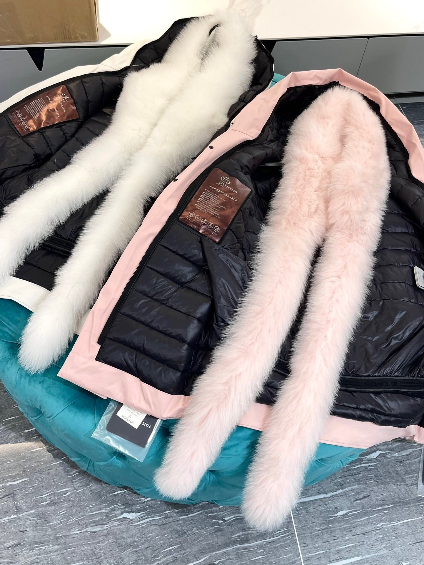 Experience unparalleled luxury with the Moncler Women's Down Ski Wear Series. Crafted from premium materials, this exclusive ski wear features a detachable fox fur collar for a customizable look.