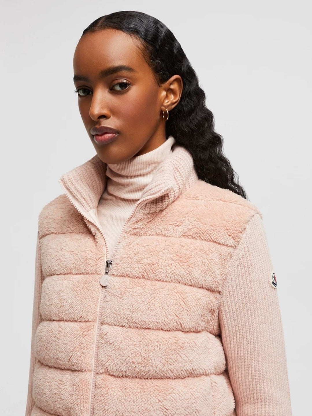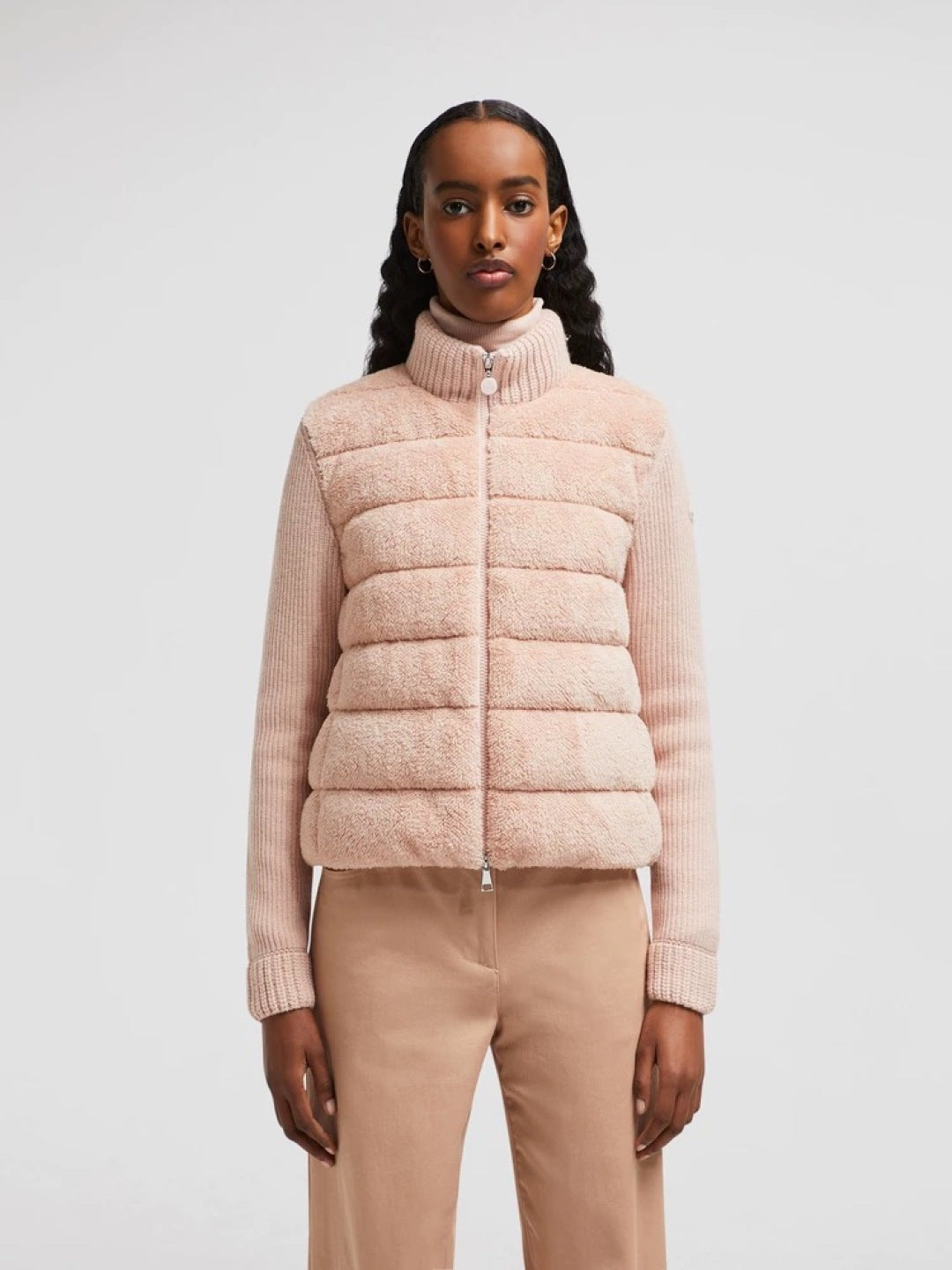 Moncler Women's Teddy Velvet Zipper Cardigan - Pink, White, Gray (S-XL)