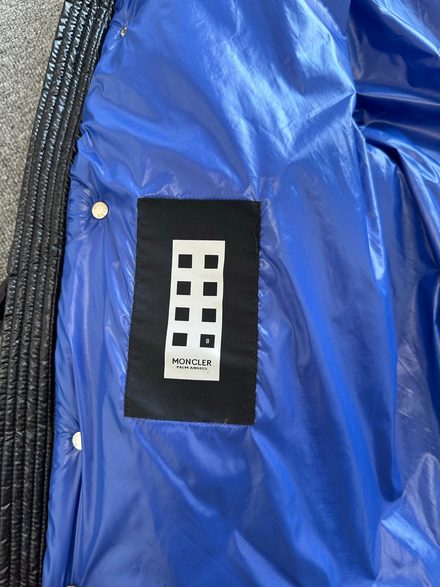 Elevate your outerwear collection with the Moncler x Palm Angels HAUNANI Down Jacket. This Olympic-inspired piece showcases a striking contrast of colors with its sophisticated gray, black, and blue hues. Designed for both style and warmth, this jacket features a modern stand collar and a cozy down filling, perfect for any occasion. Available in sizes 1-4, it ensures a comfortable fit for everyone. Experience the unique blend of high fashion and functionality with this exclusive co-branded jacket.
