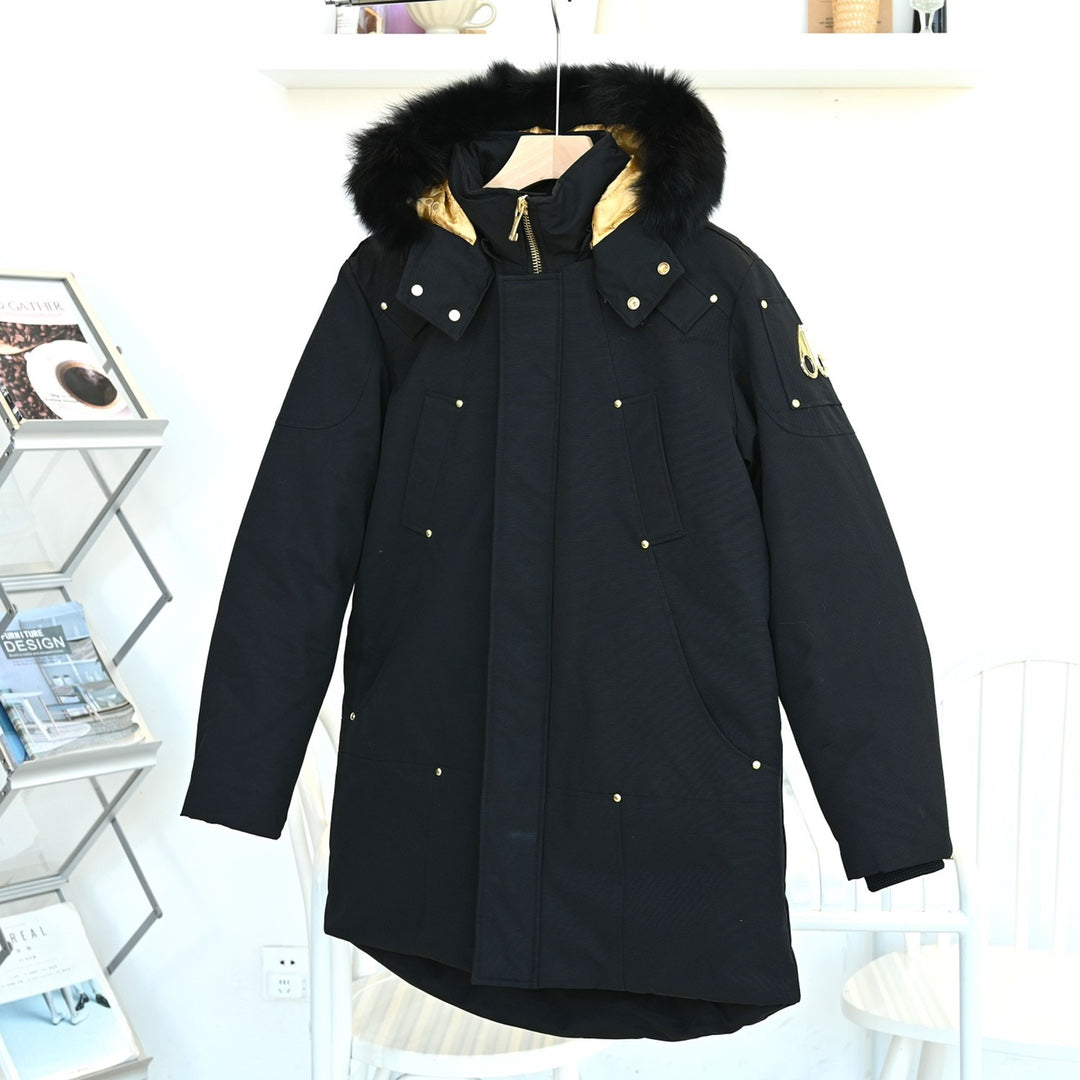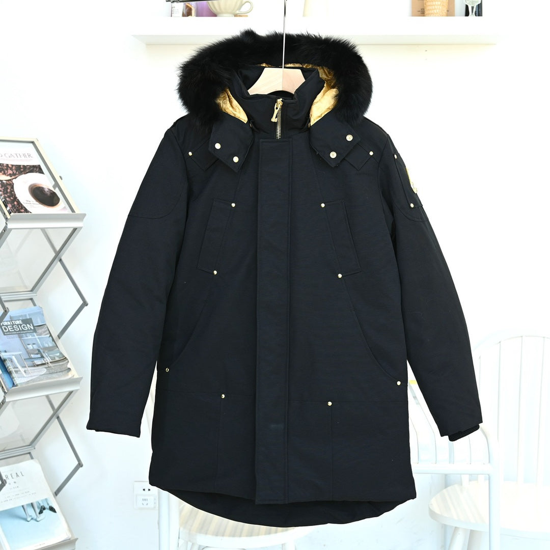 Experience the ultimate in winter luxury with the Moose Knuckles Premium Goose Down Jacket. Established in Toronto in 2007, this high-end outdoor brand has roots dating back to 1921, specializing in down jackets designed to withstand the harshest cold weather.