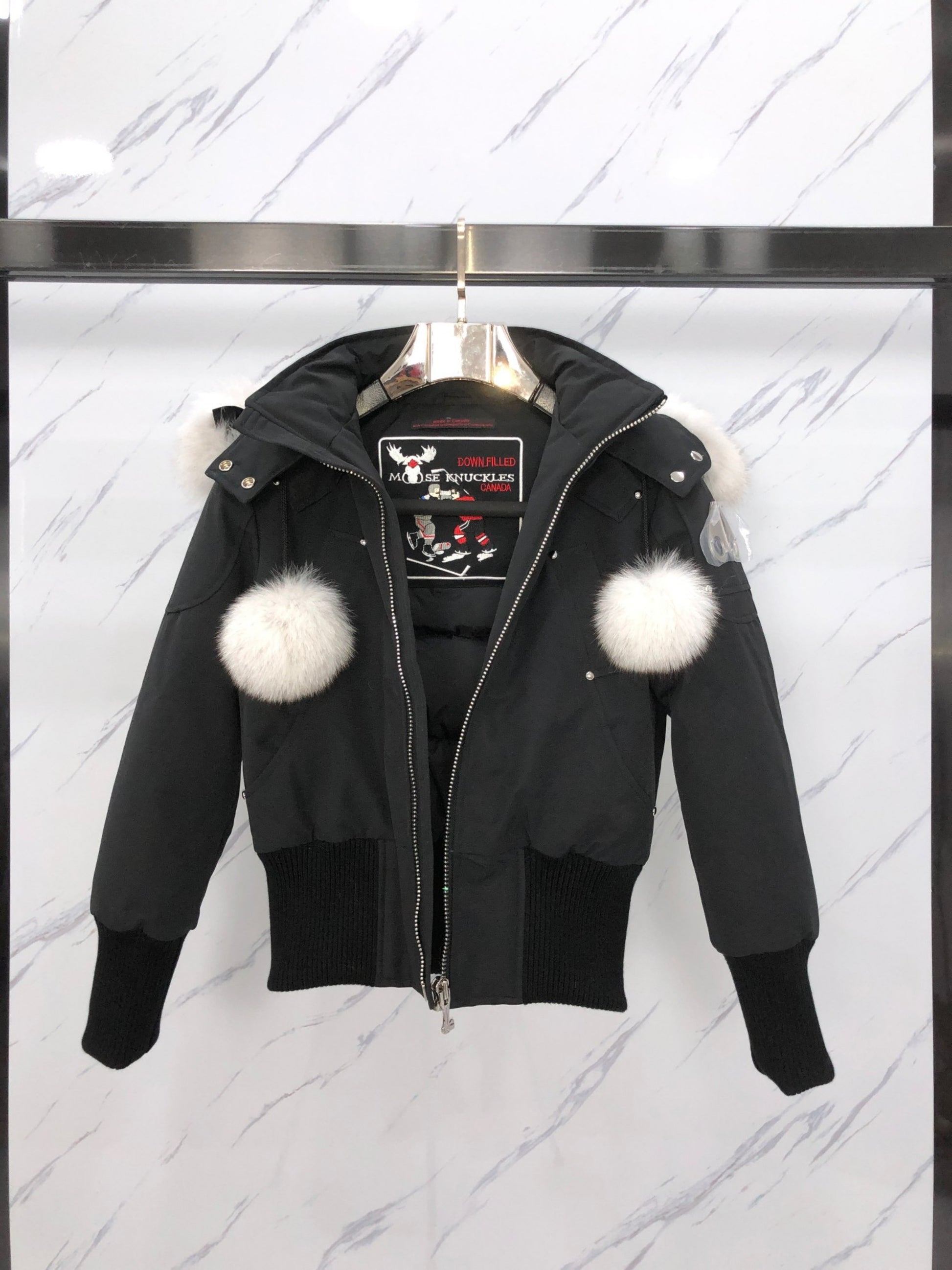 Introducing the Moose Knuckles Stag Lake Women's Down Jacket, a perfect blend of style and functionality. Crafted with a durable 75d*150d cotton nylon outer layer treated with DuPont Teflon, this jacket offers exceptional windproof and water-resistant protection. The luxurious gold jacquard lining showcases the iconic Moose Knuckles logo, while the high-density 40d*40d nylon interior features a quilted anti-piling layer to enhance comfort and durability.