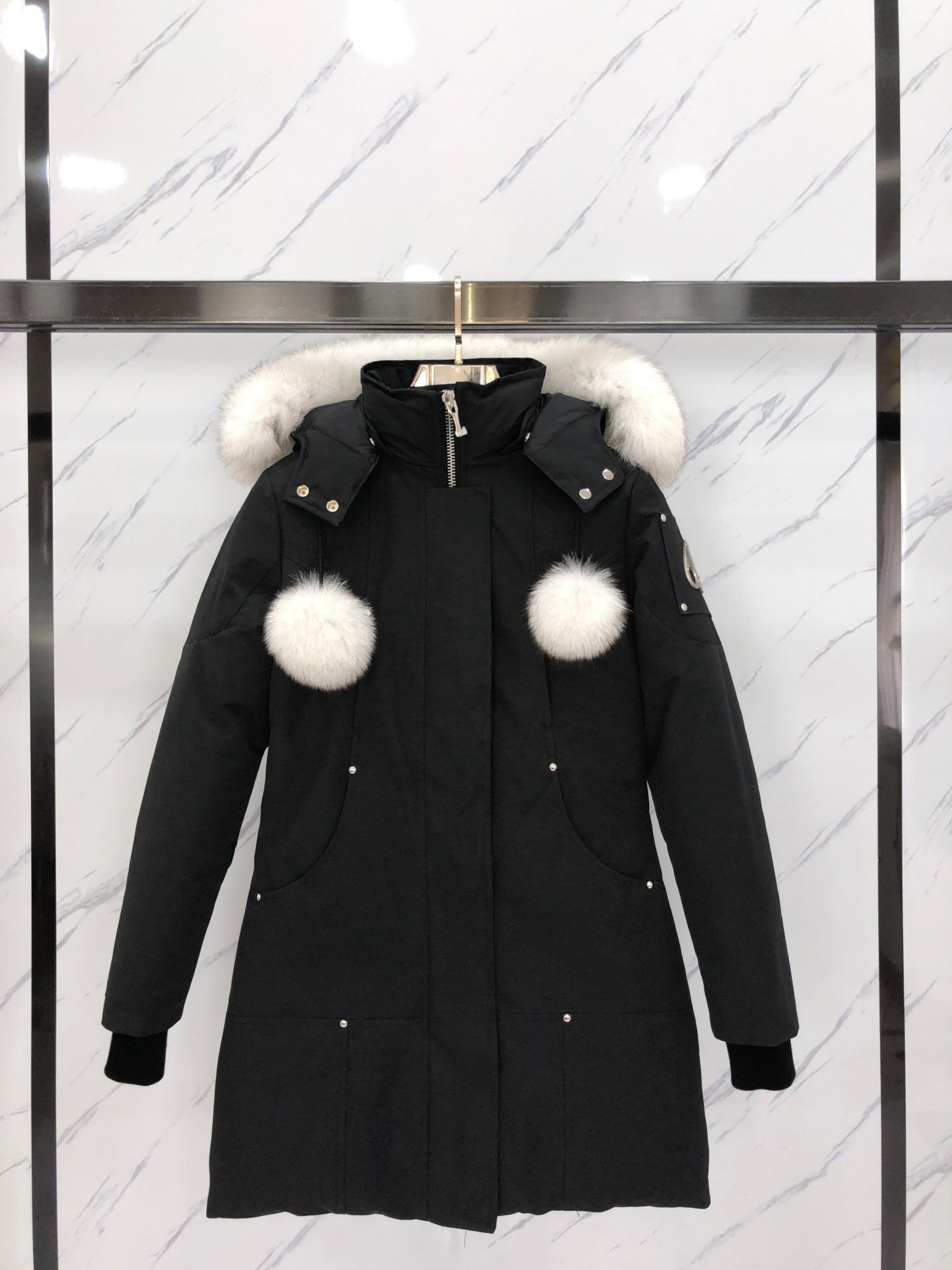- **Luxurious Arctic Fox Fur Collar:** Available in black or white for a unique touch and a soft feel.