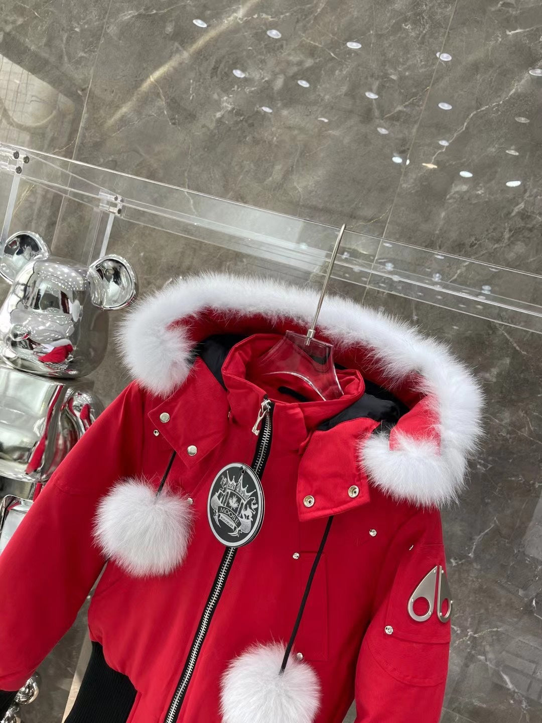 Introducing the MOOSEKNUCKLES Stag Lake Women's Down Jacket, a perfect blend of luxury, warmth, and weather resistance. Crafted from durable 75D*150D cotton nylon, this jacket features a waterproof outer layer and a sophisticated gold MOOSEKNUCKLES logo jacquard lining. The Teflon-treated surface provides excellent wind and splash protection, making it suitable for various weather conditions.