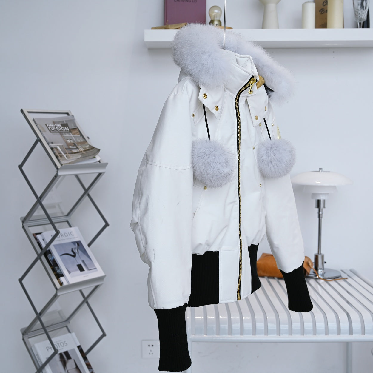 Equipped with a Teflon finishing by DuPont, this jacket is both windproof and splash-proof, making it ideal for outdoor adventures. The high-density 40D*40D nylon inner lining offers a quilted anti-piling protective layer, ensuring durability and comfort. The use of ultra-soft Finnish fox fur adds a touch of elegance, with tightly woven fibers that resist flattening.