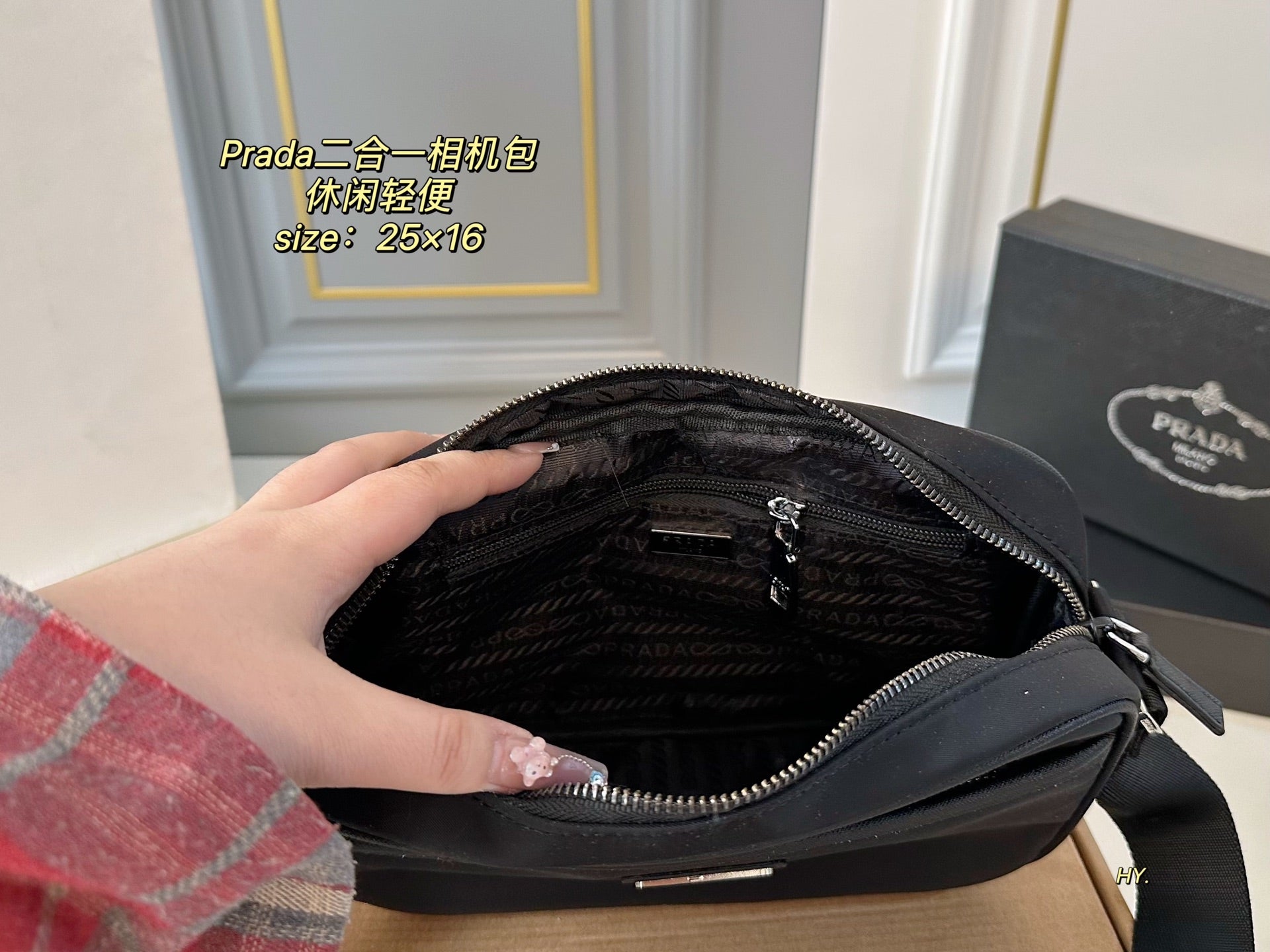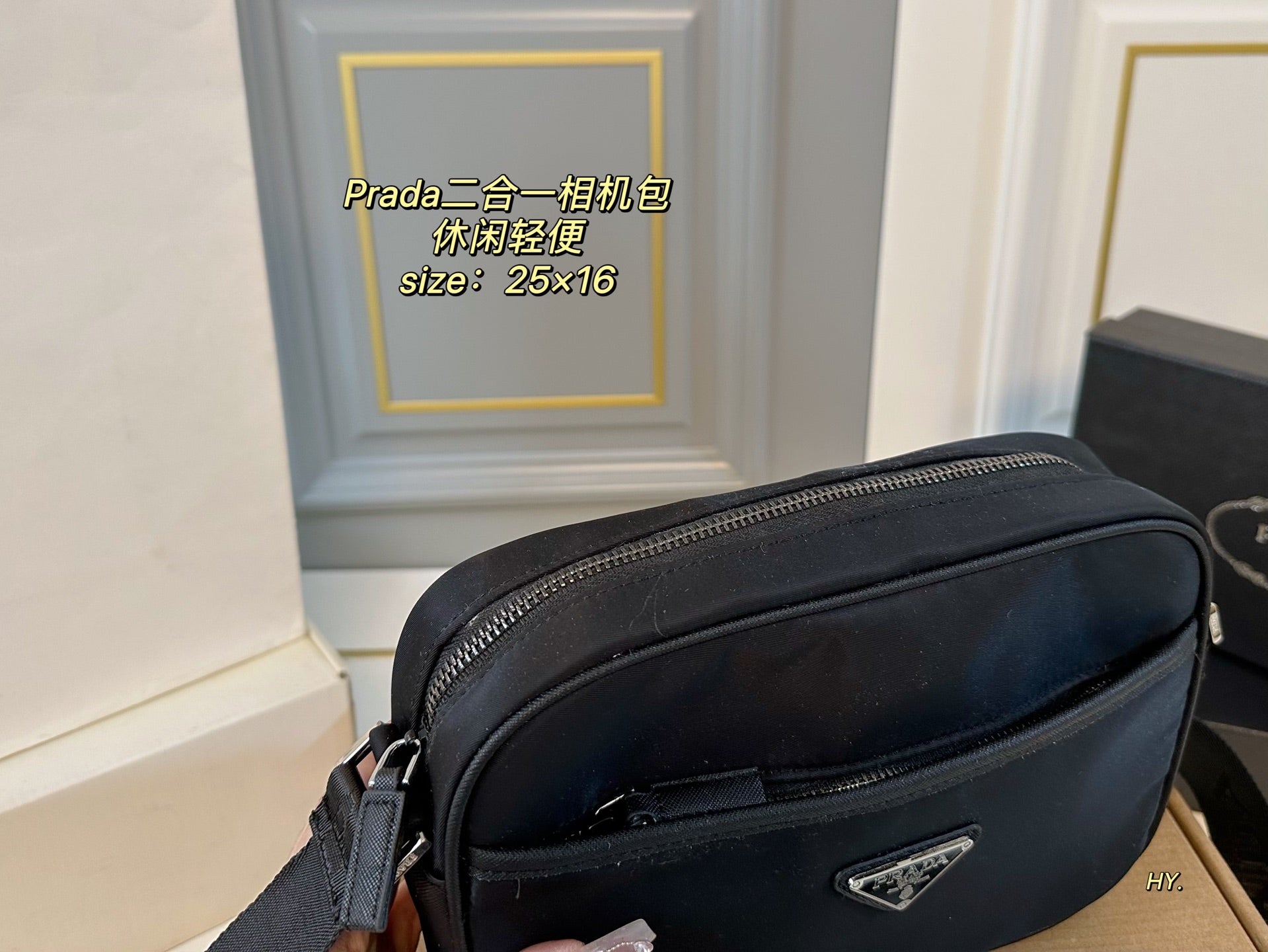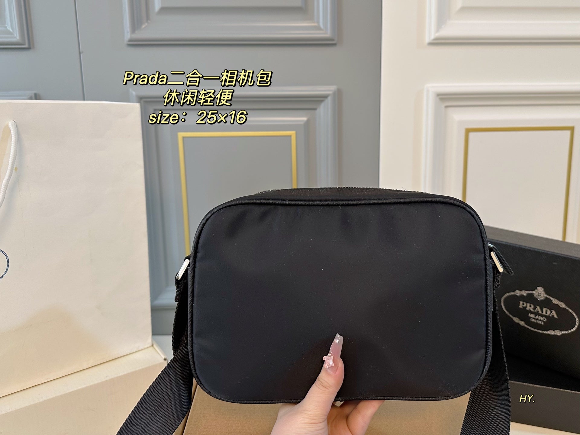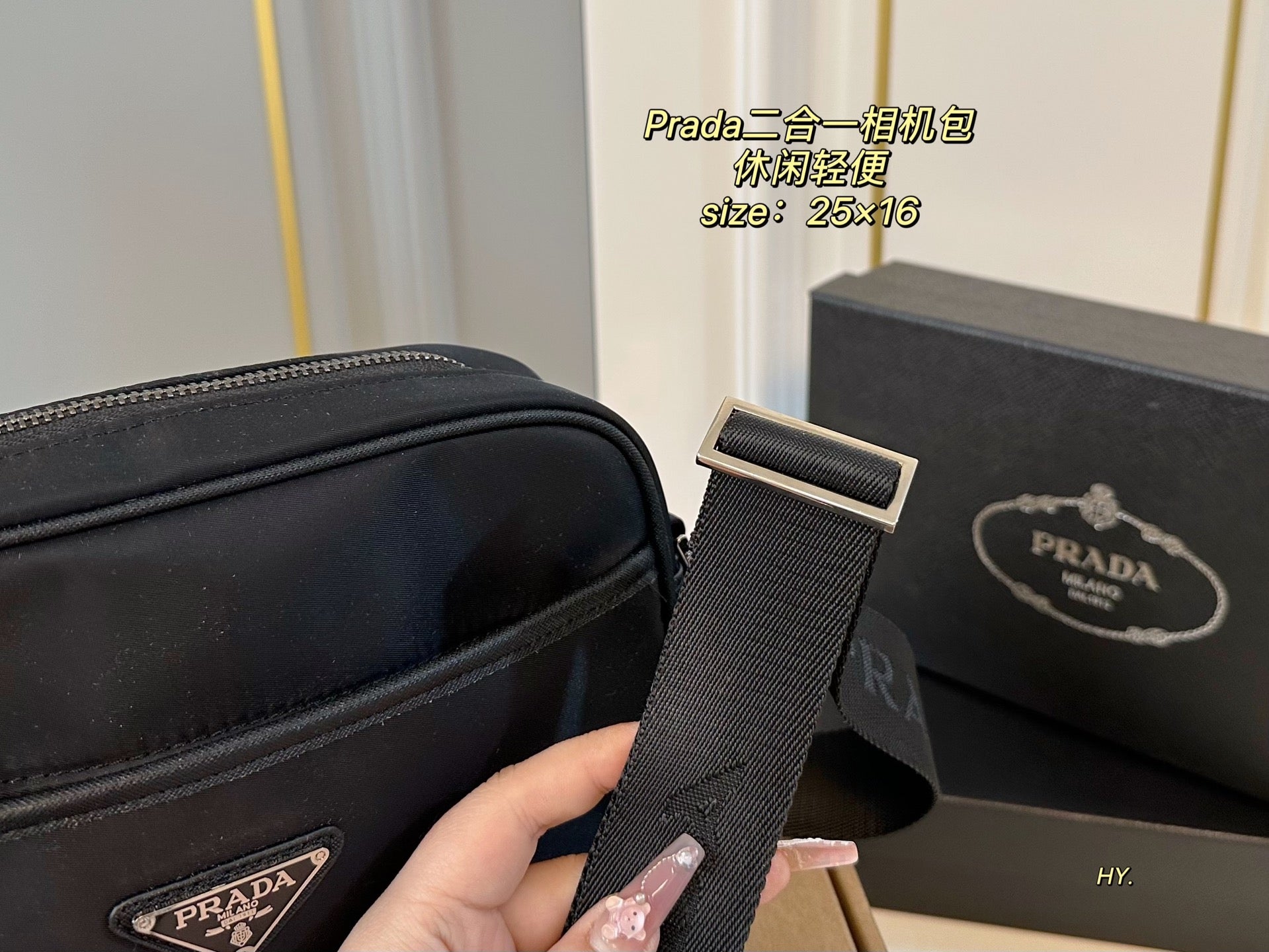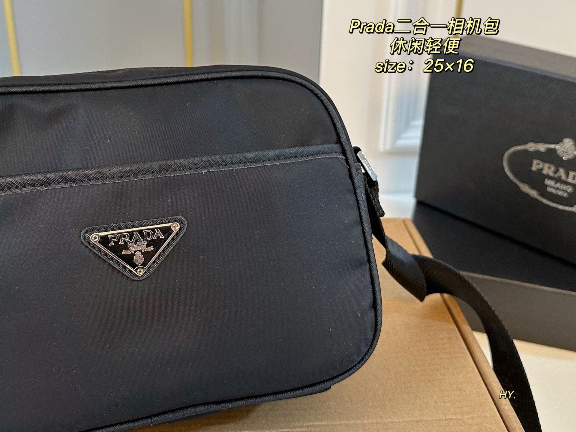 Introducing the PRADA 2-in-1 Camera Bag, a stylish and functional accessory designed for everyday use. Measuring 25×16 cm, this casual and lightweight cross-body bag effortlessly combines fashion and versatility.