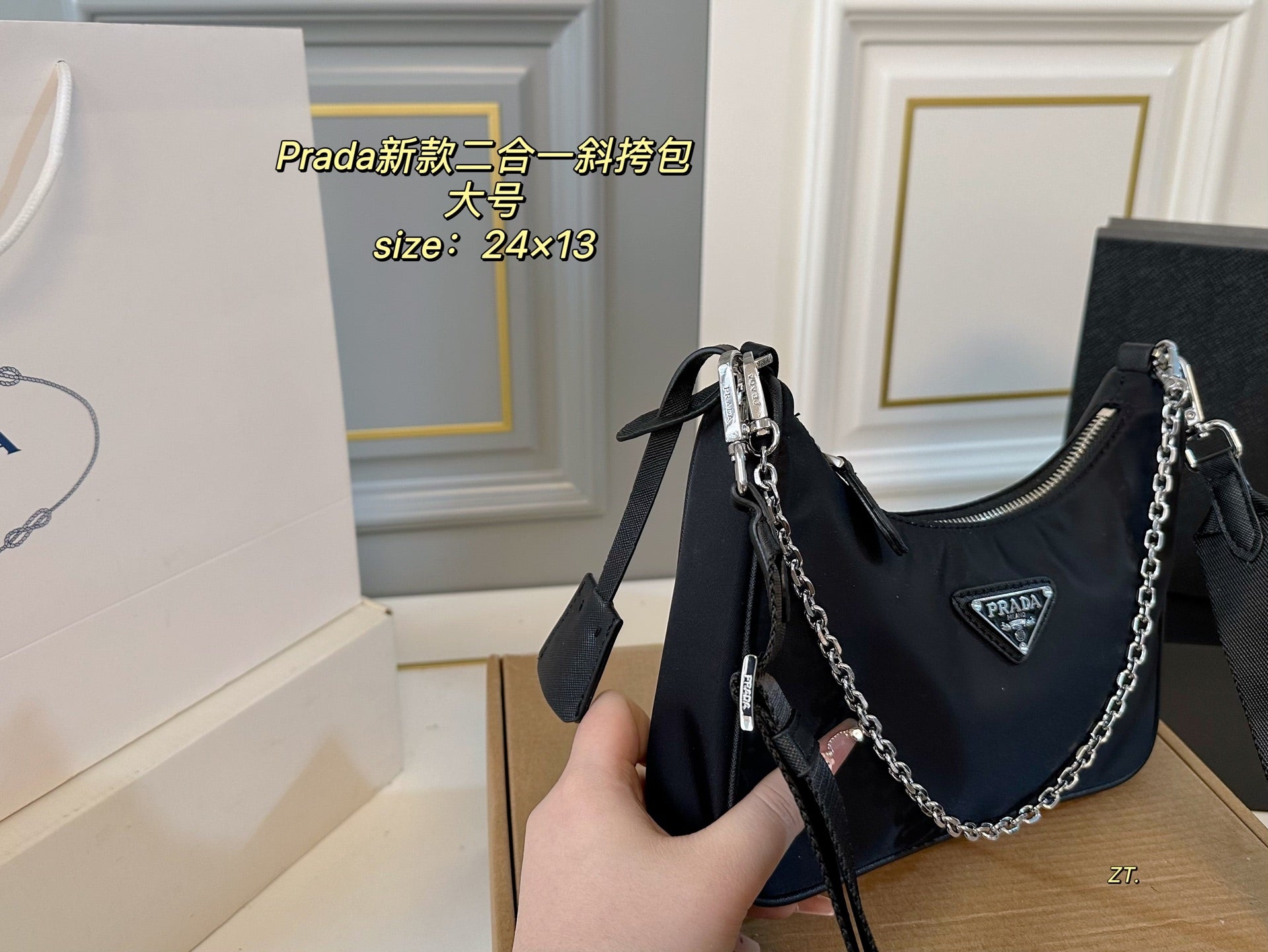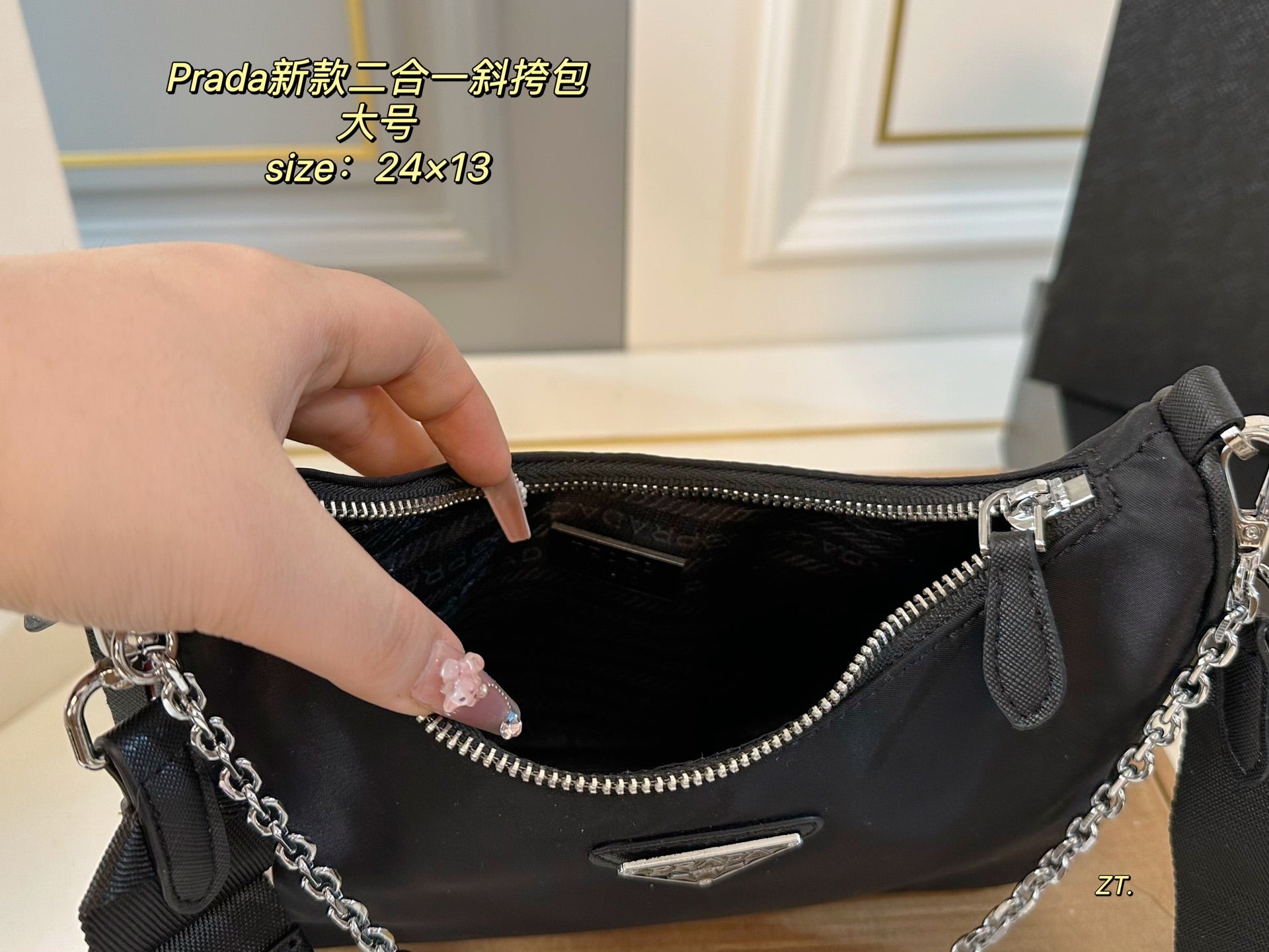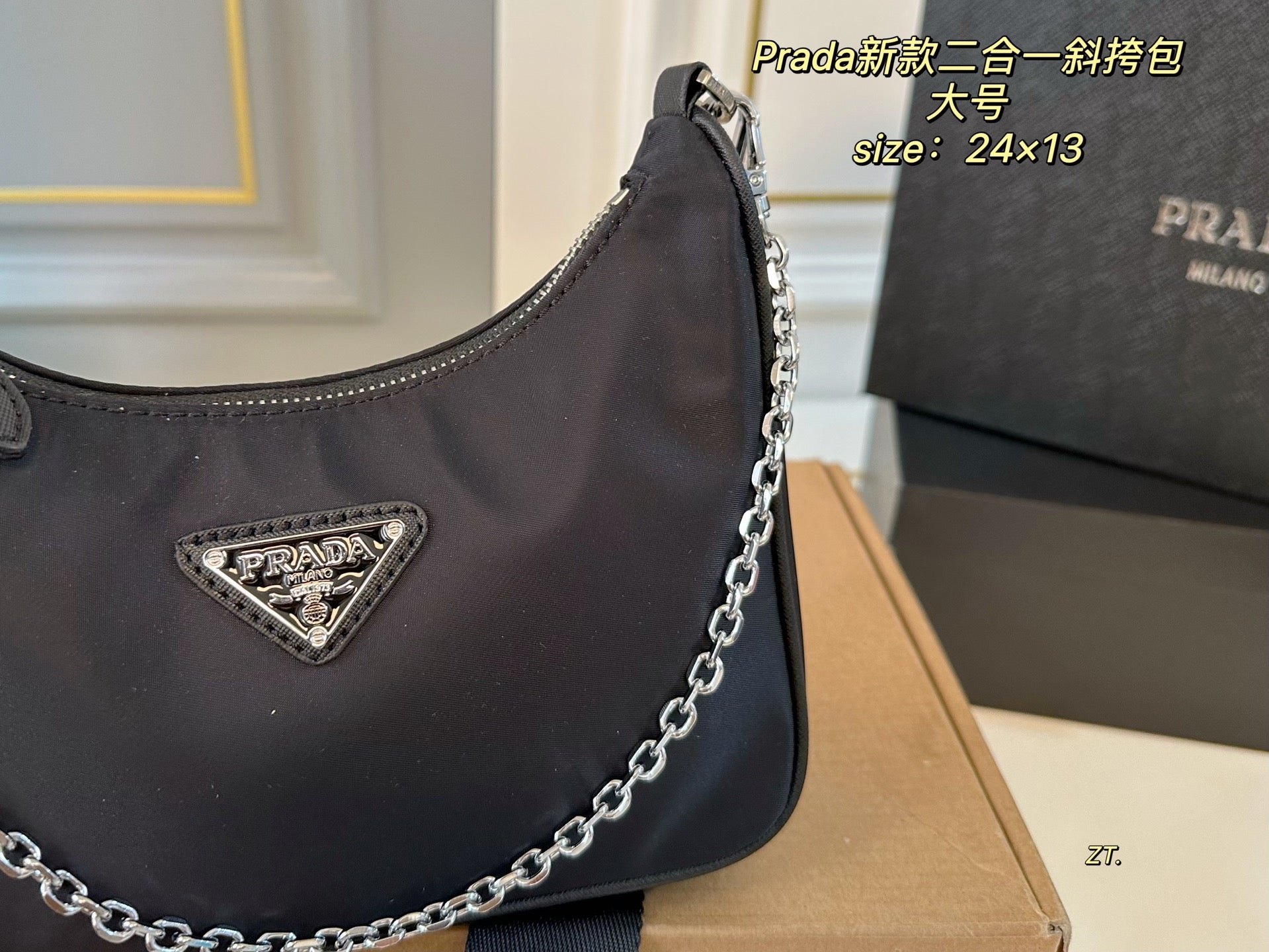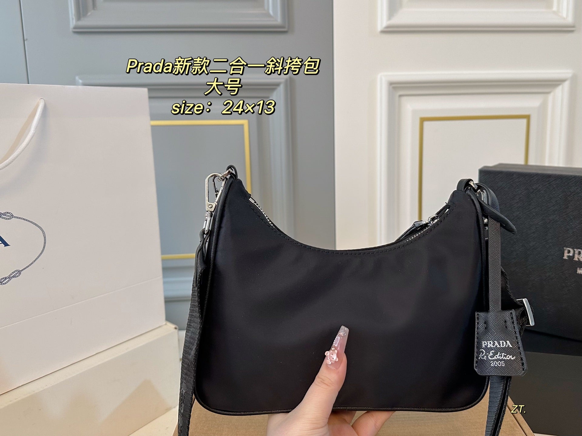 Elevate your style with the PRADA 2-in-1 Large Crossbody Bag, designed for versatility and sophistication. Measuring 24×13 cm, this exquisite bag features a convenient zipper opening and can be used as a crossbody or as an armpit bag. The detachable shoulder strap allows for effortless transition between styles, making it the perfect accessory for any occasion. Complete with a matching coin purse, this bag combines functionality with luxury, ensuring you travel with ease and elegance.