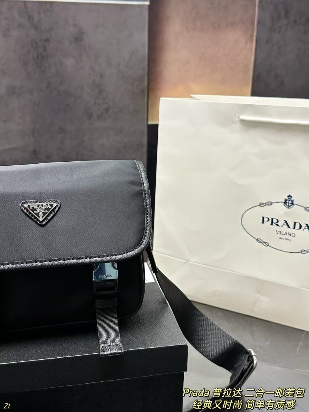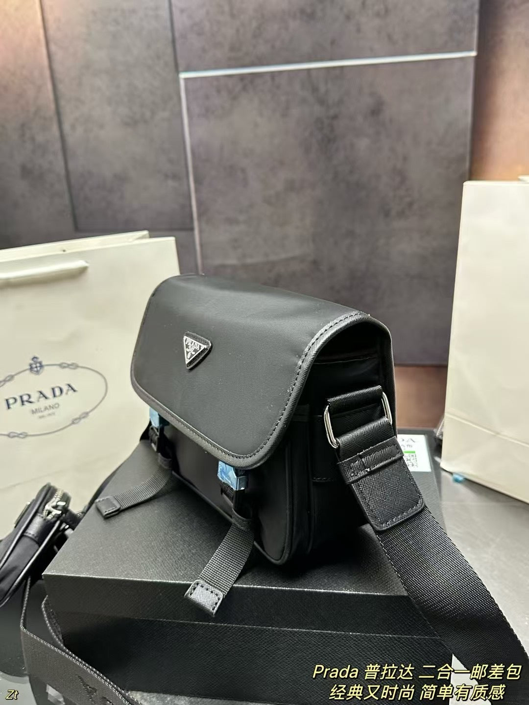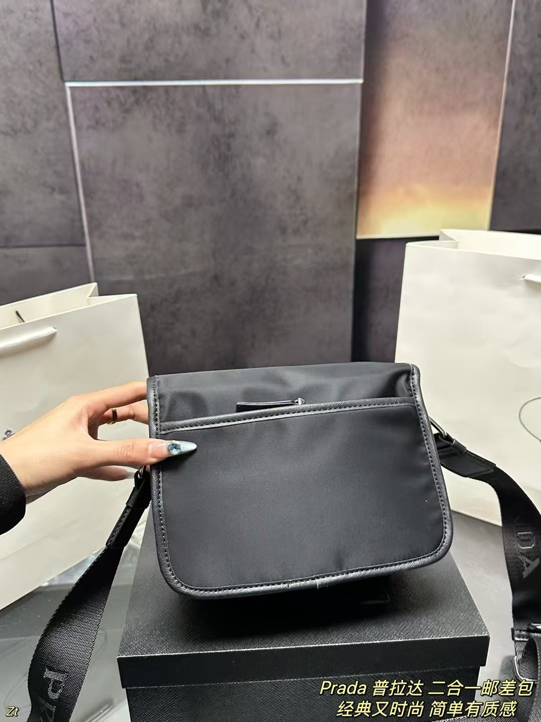 Elevate your style with the Prada 2-in-1 Messenger Bag, a perfect blend of functionality and elegance. Crafted from high-quality imported nylon and adorned with classic Saffiano leather trim, this messenger bag is designed for those who appreciate timeless fashion.