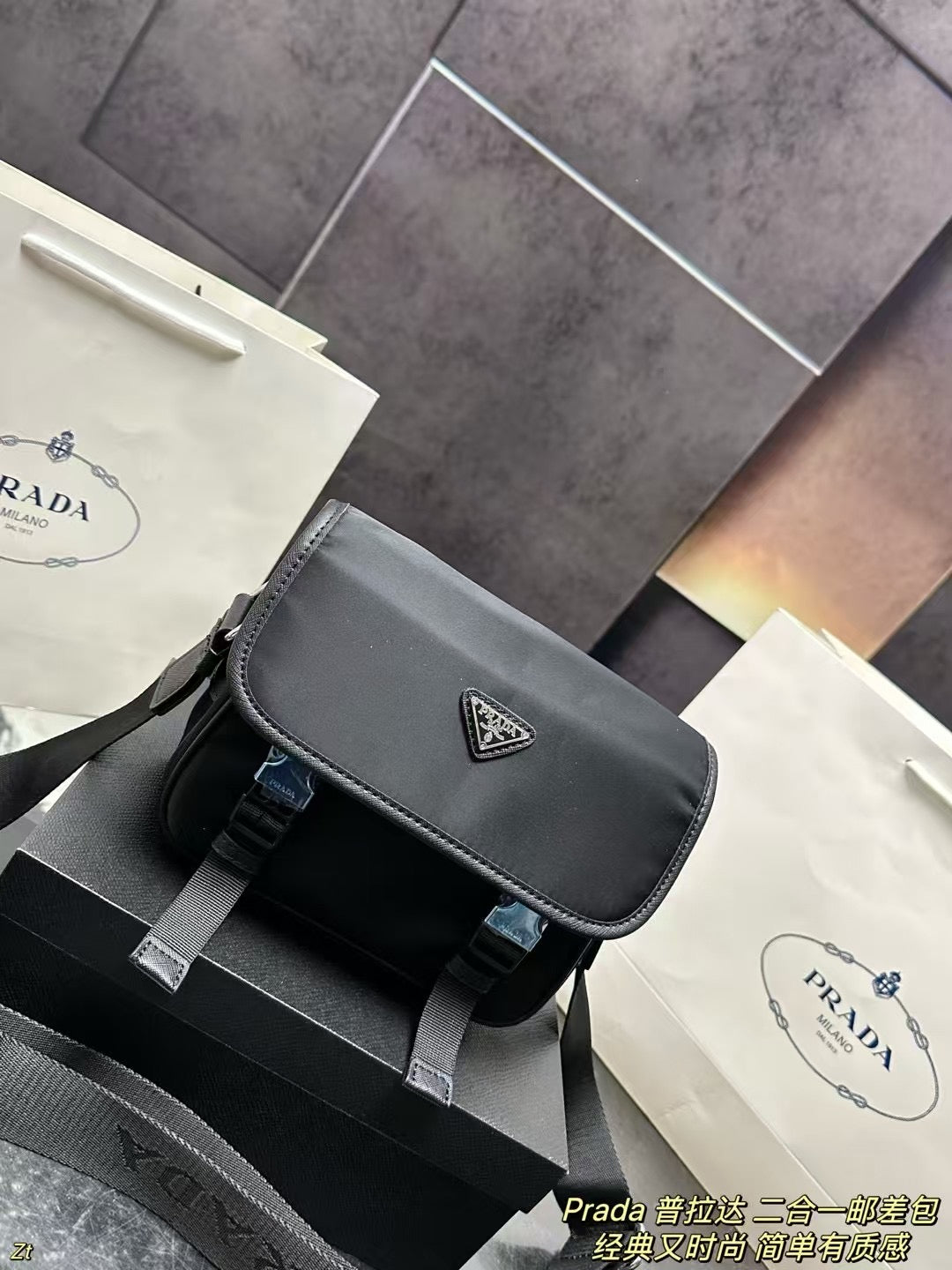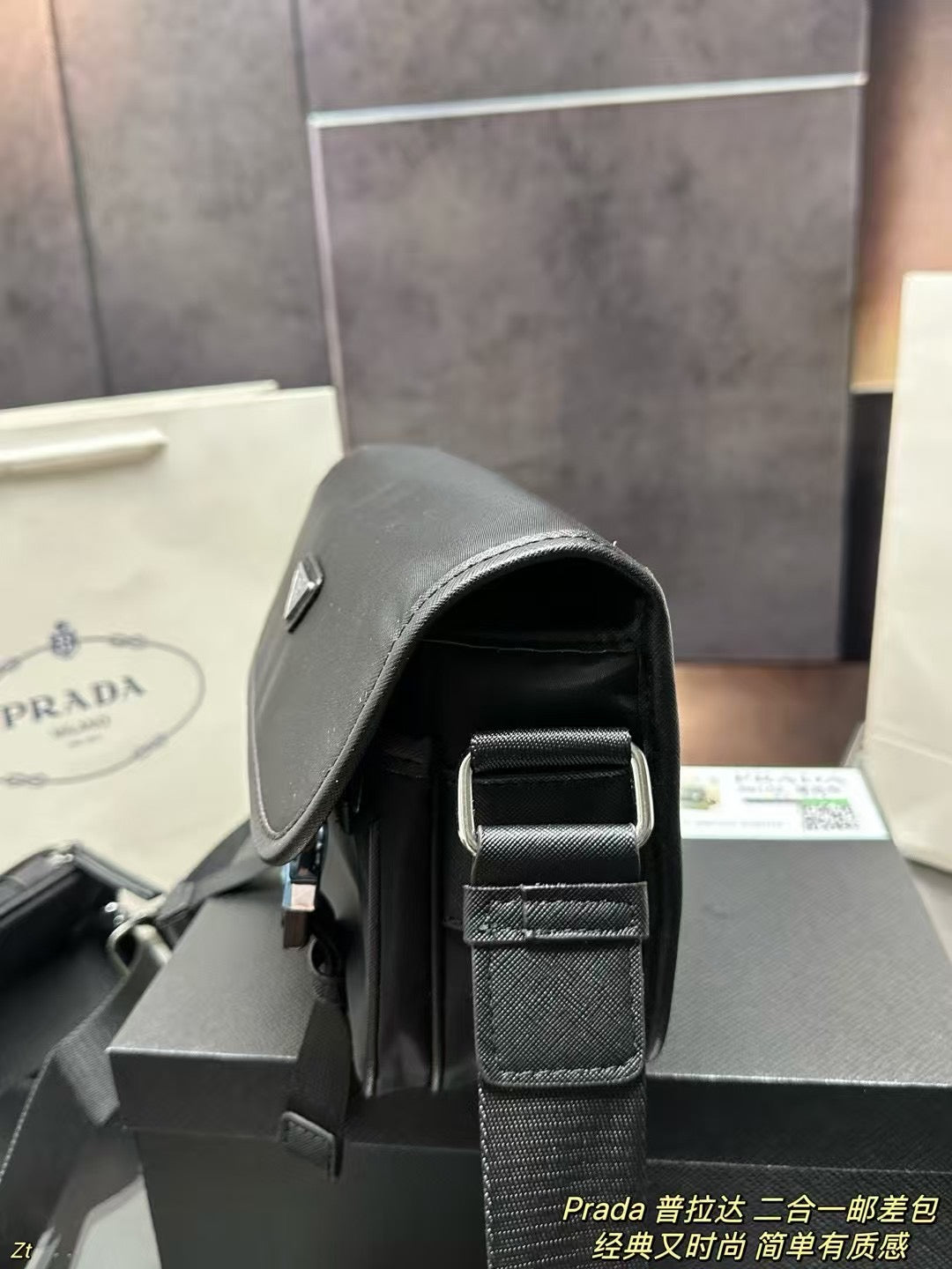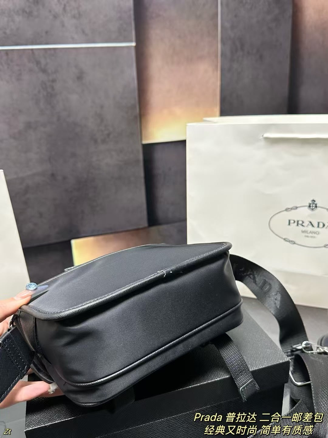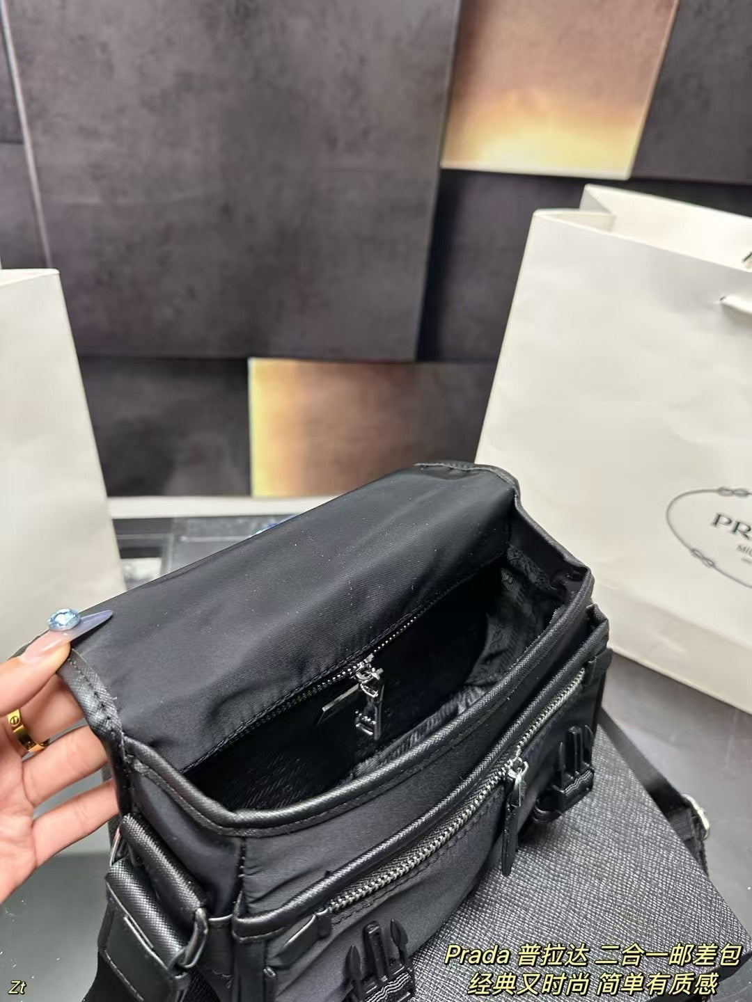 Elevate your style with the Prada 2-in-1 Messenger Bag, a perfect blend of functionality and elegance. Crafted from high-quality imported nylon and adorned with classic Saffiano leather trim, this messenger bag is designed for those who appreciate timeless fashion.