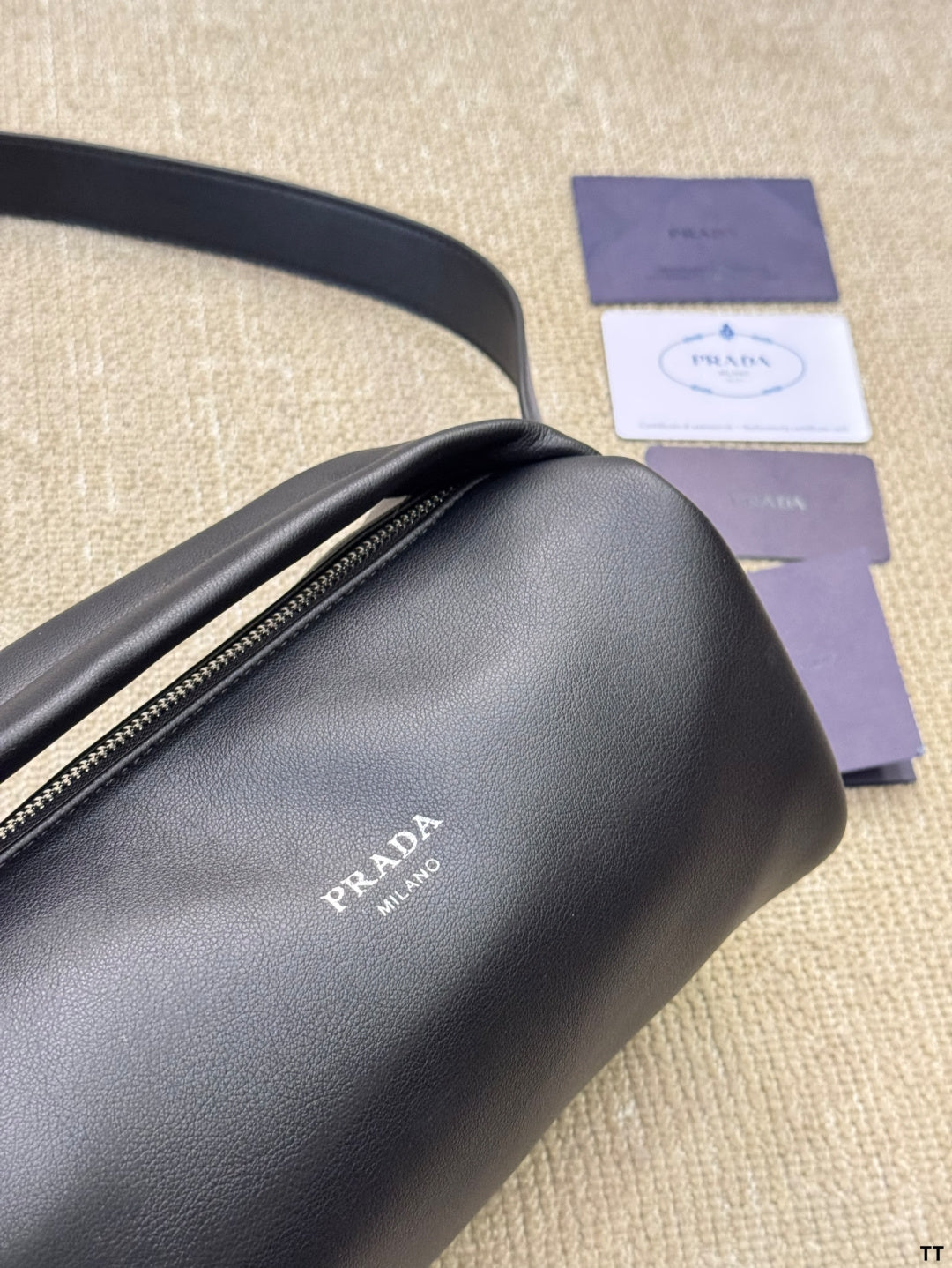 Discover the elegance of the Prada 2025 Portable Sheepskin Pen Holder Bag. Crafted from luxurious Nappa oil-waxed sheepskin, this stylish shoulder clutch is designed for both functionality and sophistication. Perfect for organizing your essentials, its compact size of 23 cm x 13 cm makes it ideal for on-the-go lifestyles. Featuring the iconic Prada branding, this versatile bag is a must-have accessory for the modern man. Elevate your accessory collection with this timeless piece, perfect for both casual and formal occasions.