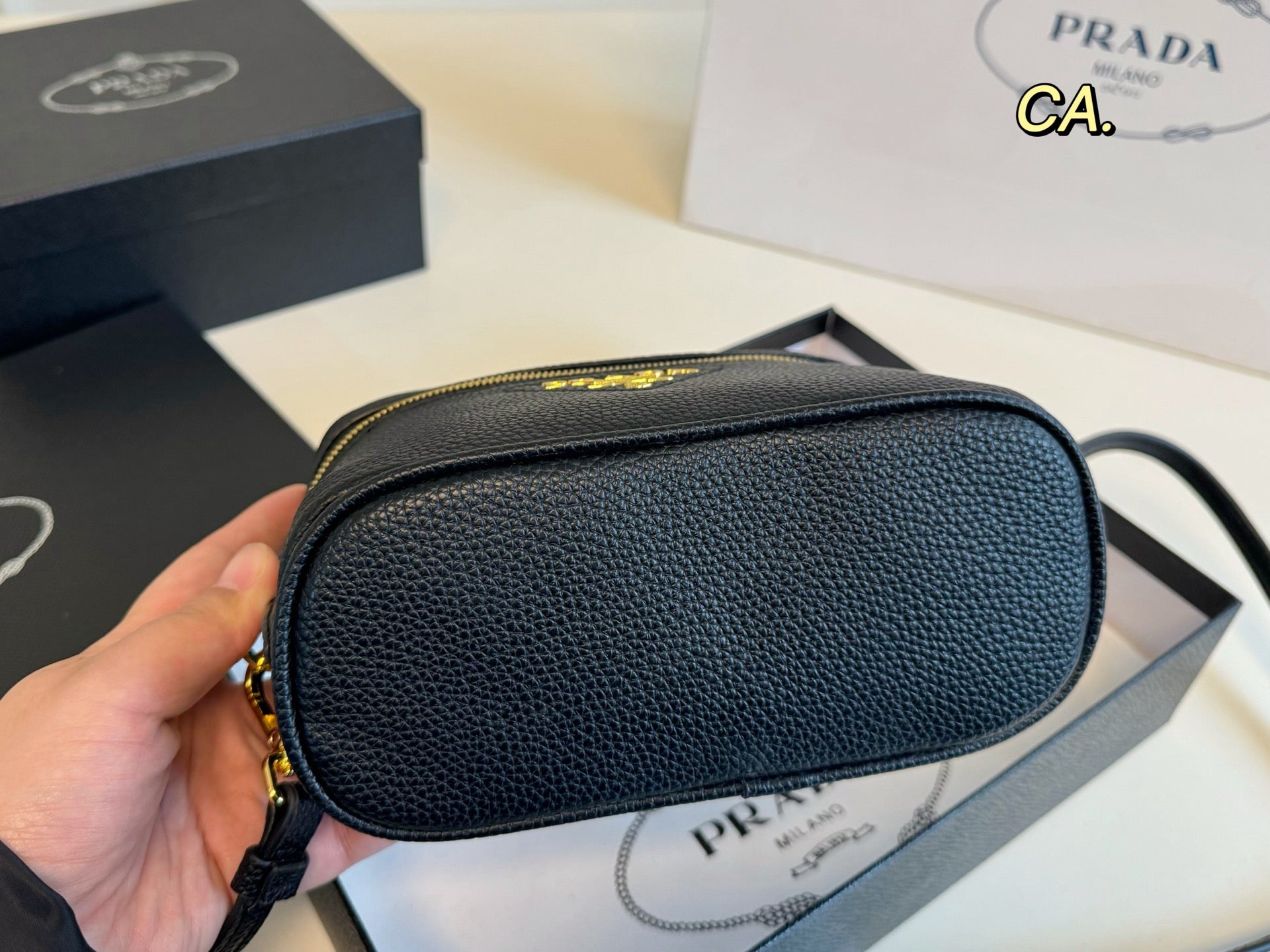 Introducing the PRADA Box Bag Cosmetic Case, elegantly designed with a size of 19×12 cm. This sophisticated bag features a minimalist style that embodies PRADA's commitment to quality and innovation. Enhanced with a metal badge on the front, the interior includes practical card slots and pockets, making it perfect for organizing your essentials. Experience a blend of style and functionality with this must-have accessory. Ideal for on-the-go use, it adds a cool and contemporary touch to any ensemble.