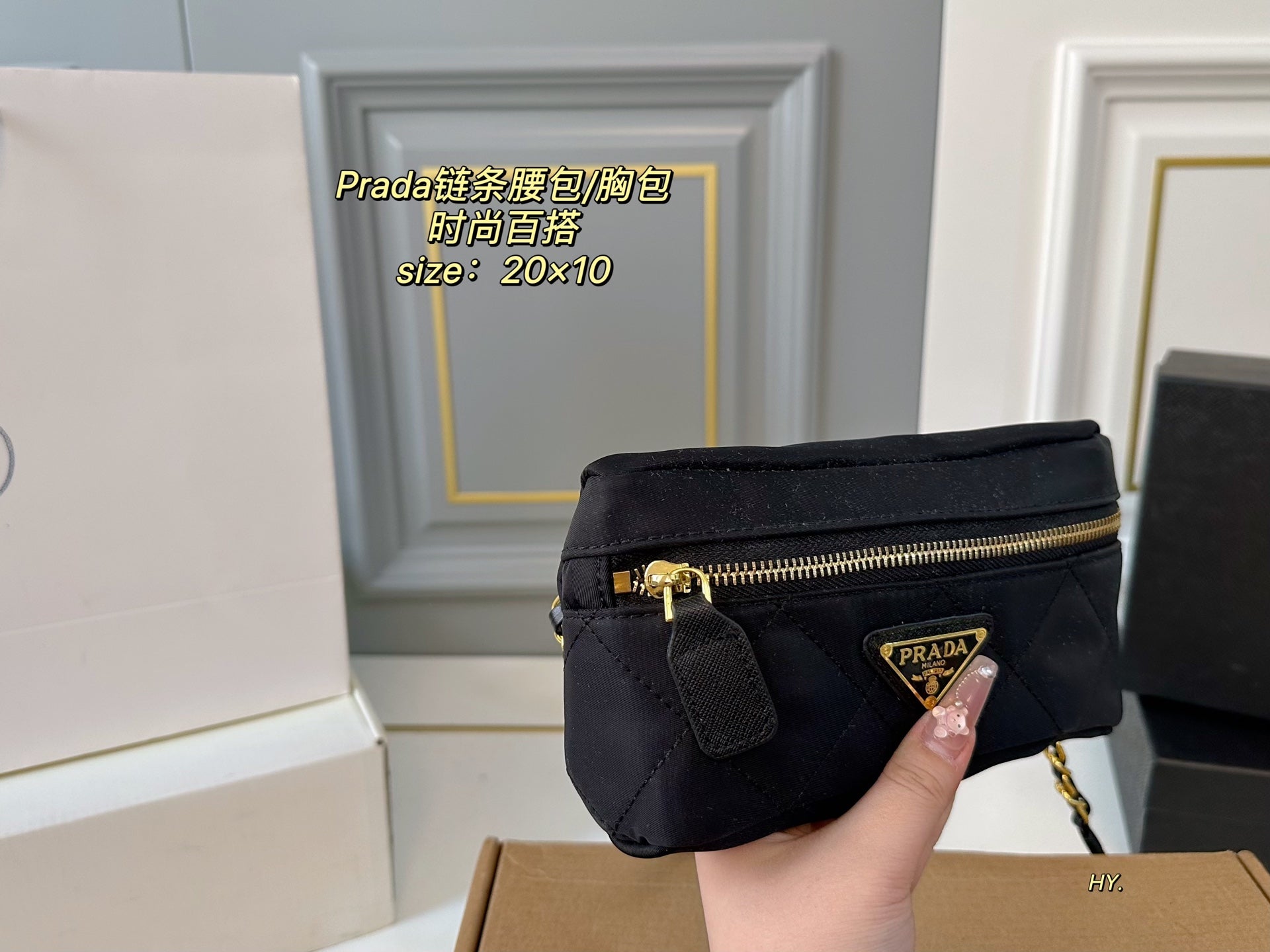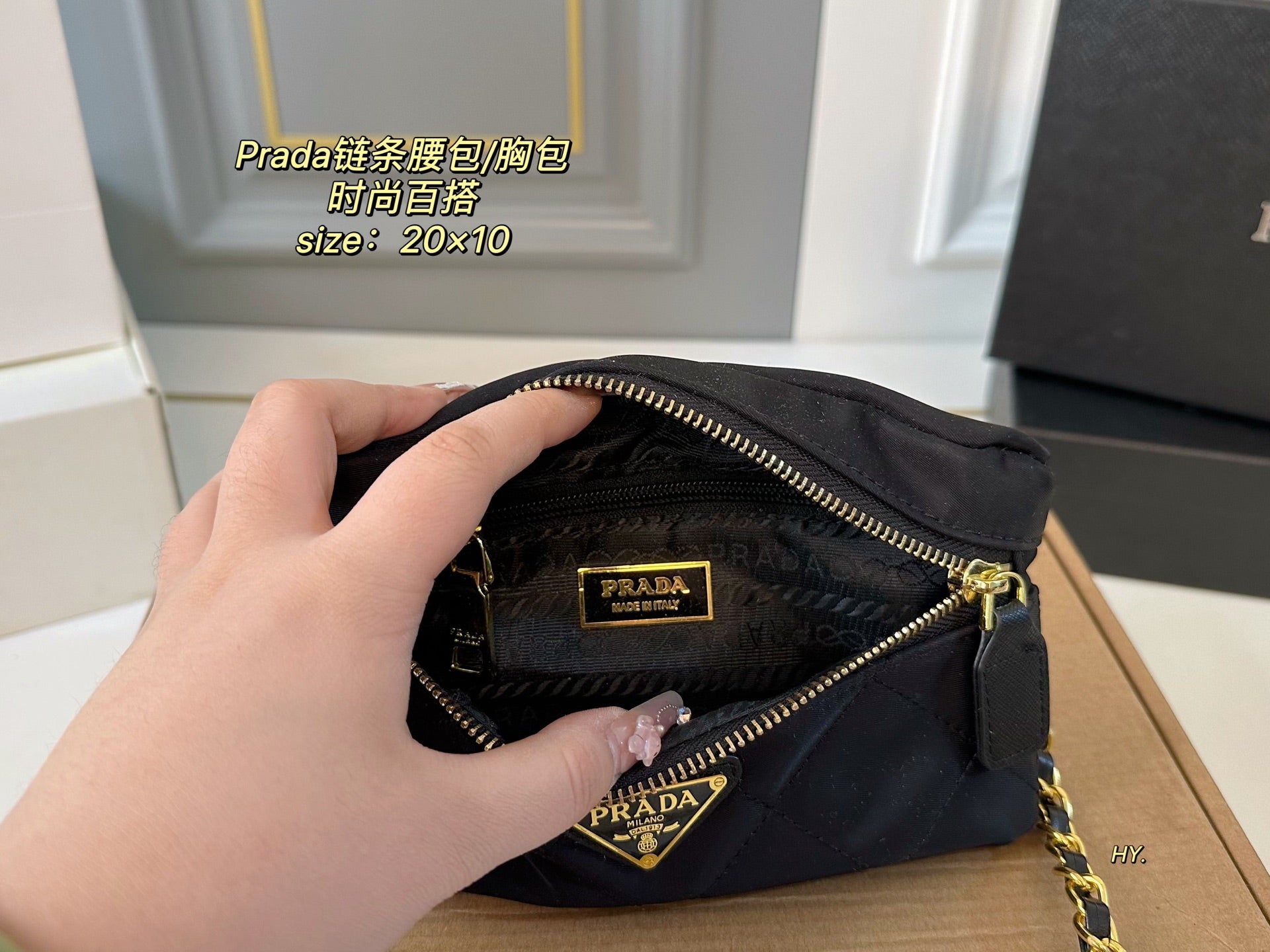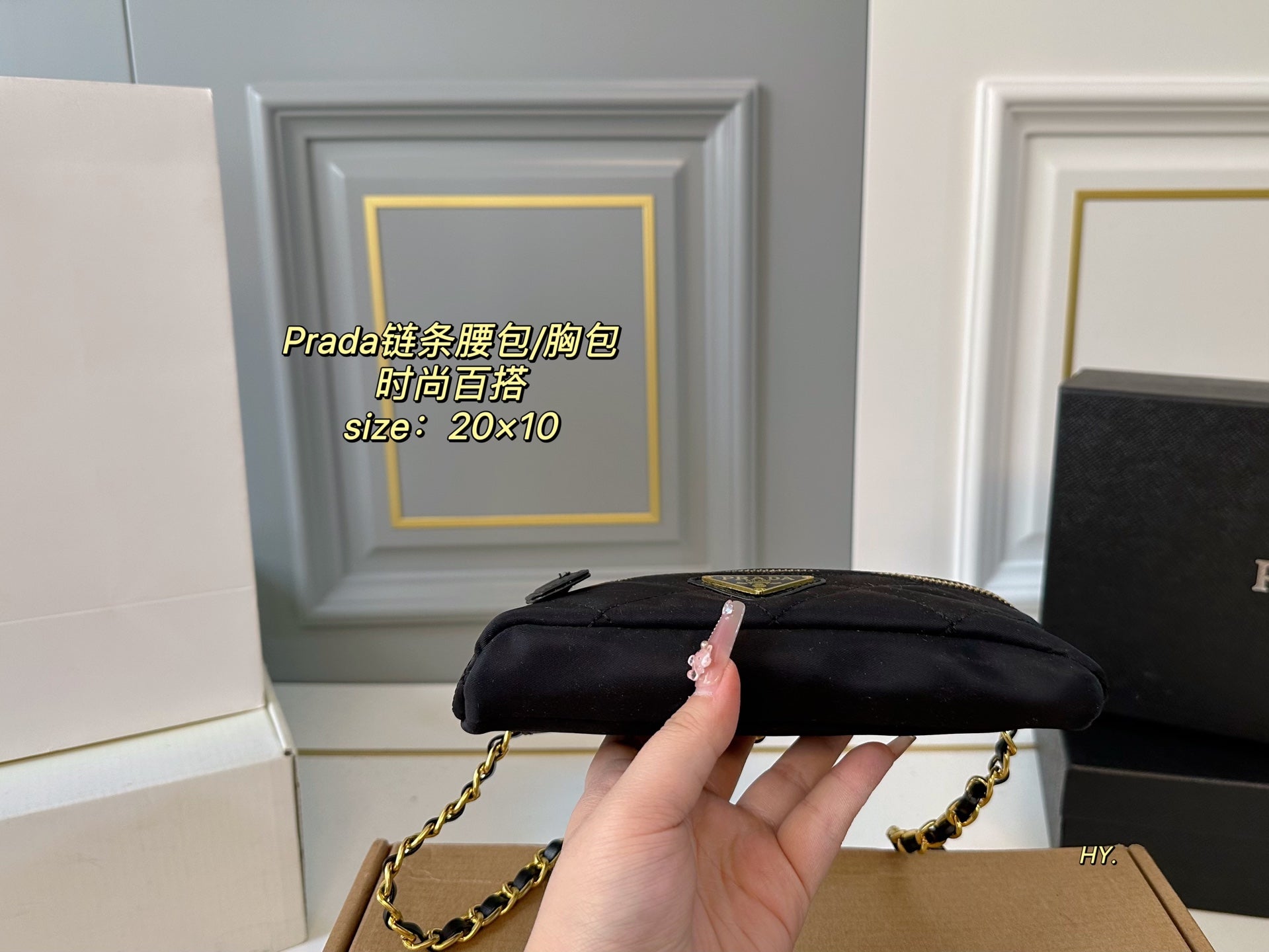 Introducing the PRADA Chain Belt Bag—a stylish and practical accessory that effortlessly elevates your outfit. Designed for versatility, this bag can be worn as a waist bag, chest bag, or crossbody, making it the perfect companion for daily wear. With its sleek silhouette and lightweight construction, it offers both functionality and fashion. Whether you're dressing up or down, this bag enhances your style while providing convenient storage. Upgrade your accessory game with the PRADA Chain Belt Bag and experience the perfect blend of chic design and everyday practicality.