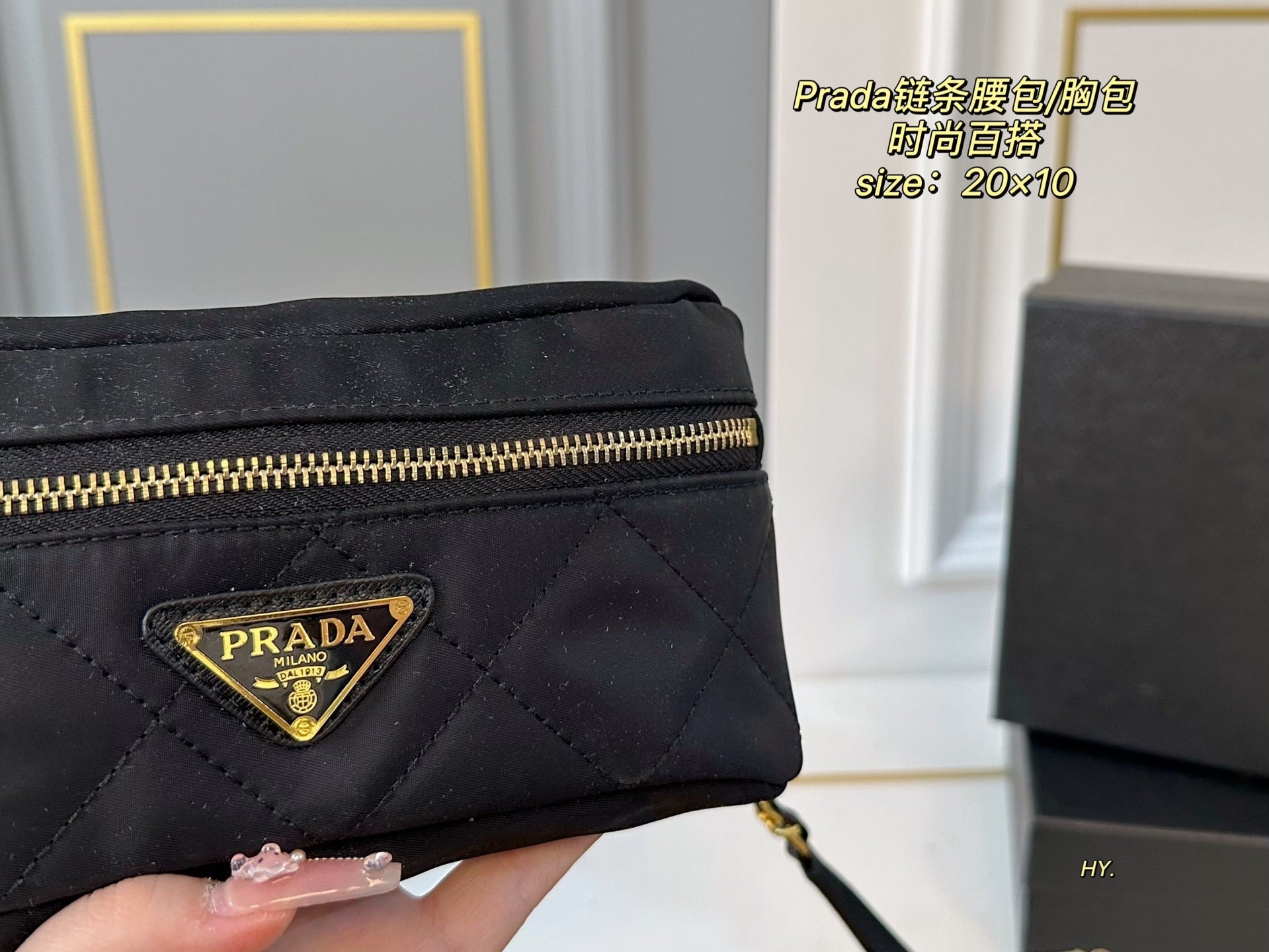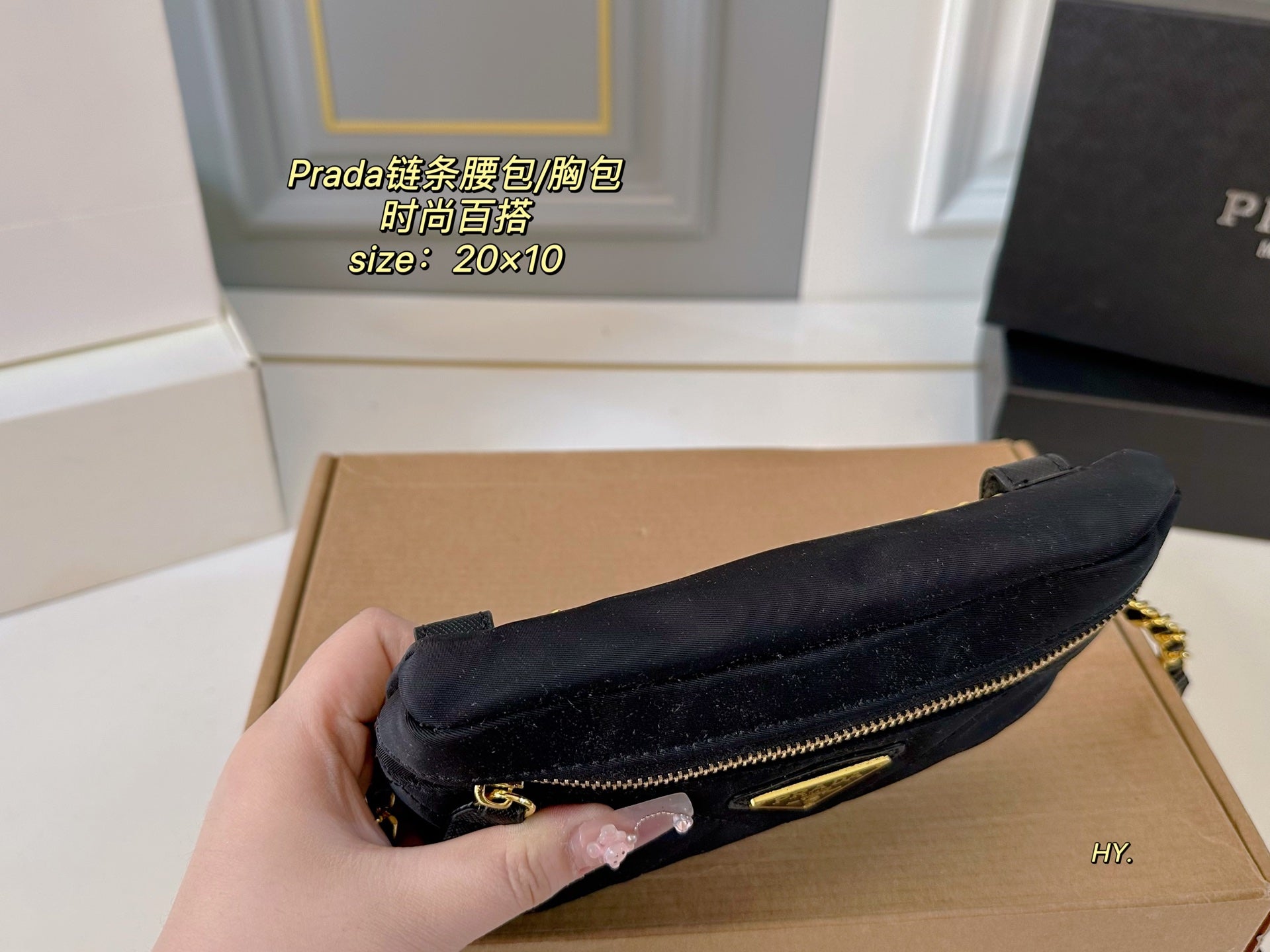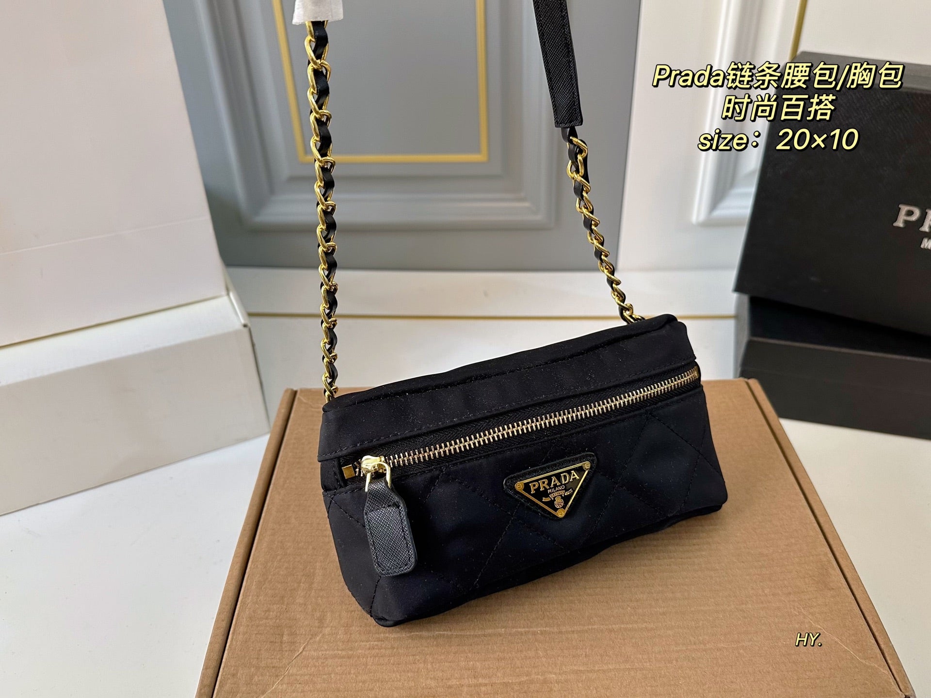 Introducing the PRADA Chain Belt Bag—a stylish and practical accessory that effortlessly elevates your outfit. Designed for versatility, this bag can be worn as a waist bag, chest bag, or crossbody, making it the perfect companion for daily wear. With its sleek silhouette and lightweight construction, it offers both functionality and fashion. Whether you're dressing up or down, this bag enhances your style while providing convenient storage. Upgrade your accessory game with the PRADA Chain Belt Bag and experience the perfect blend of chic design and everyday practicality.