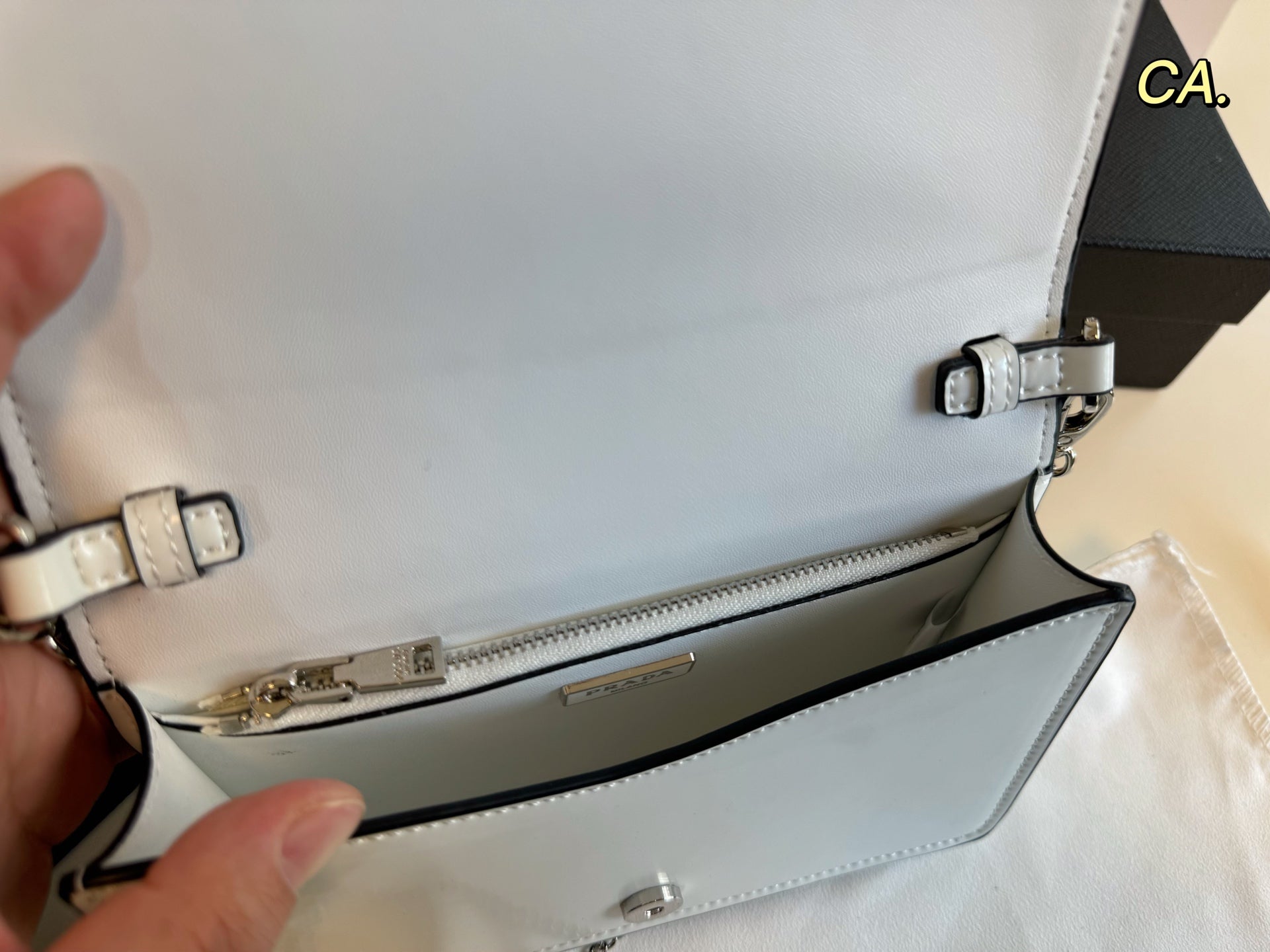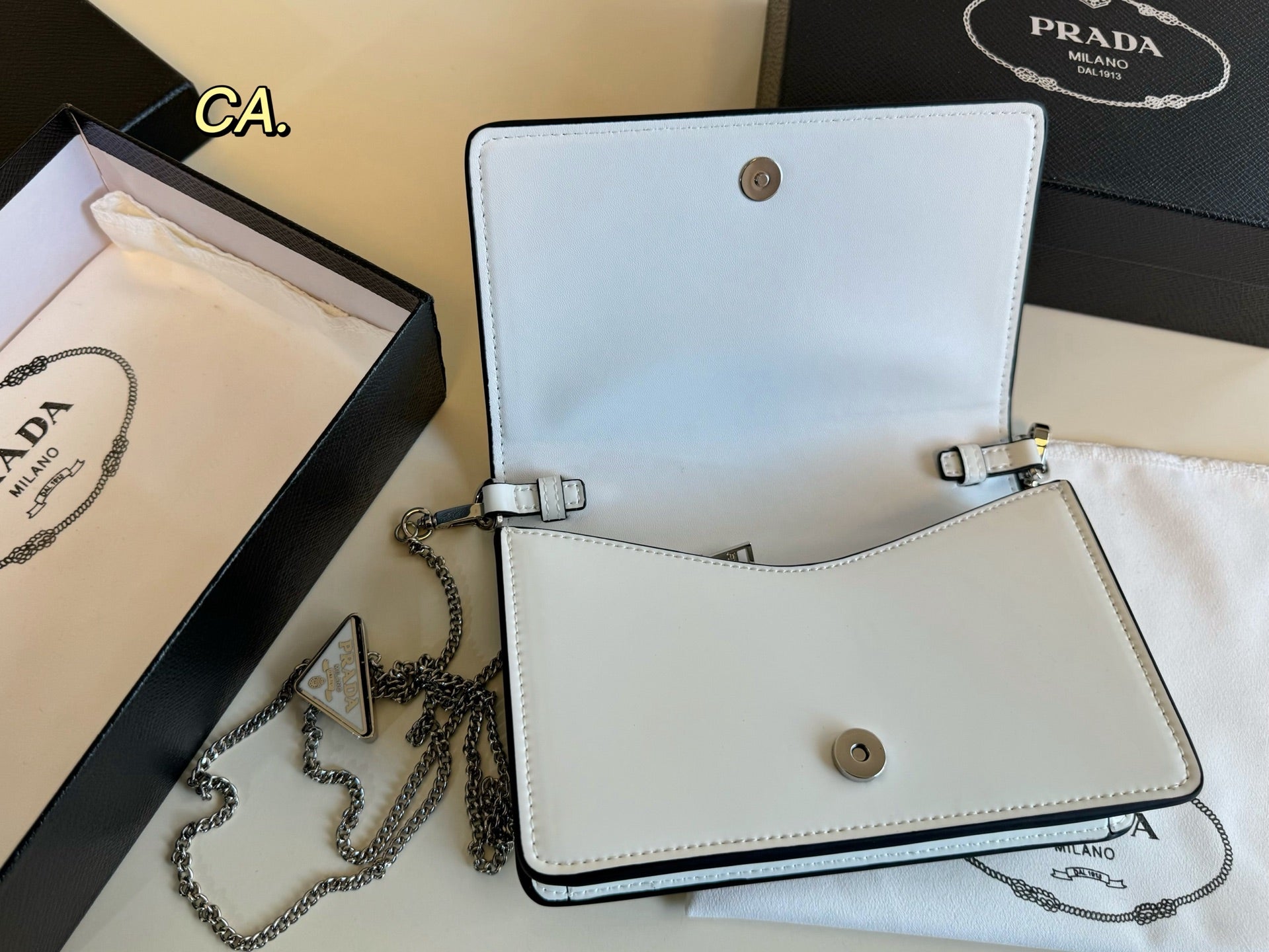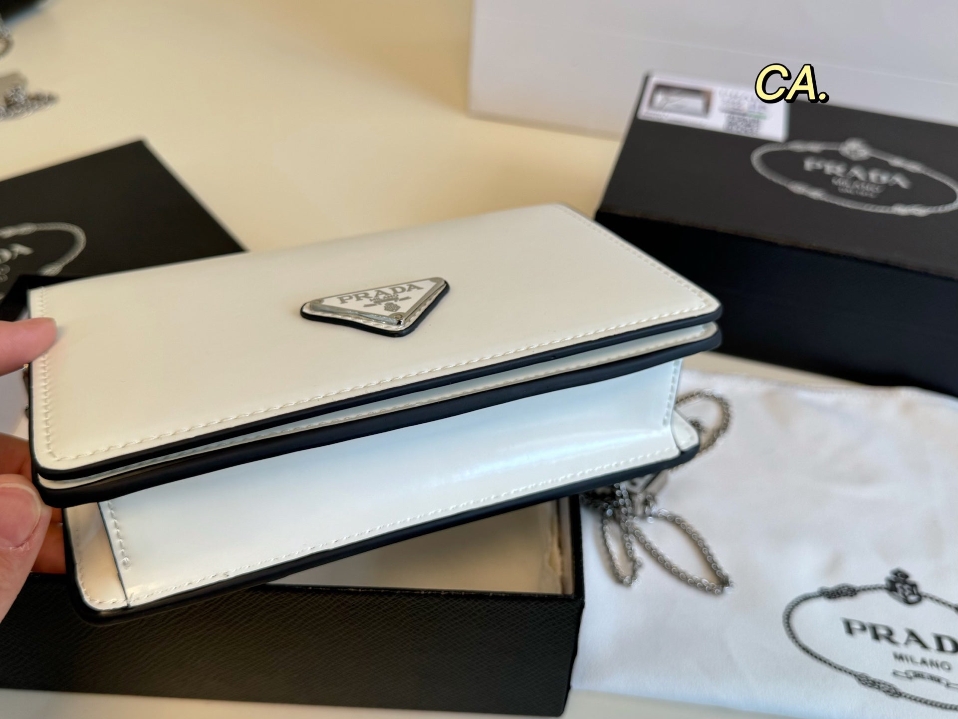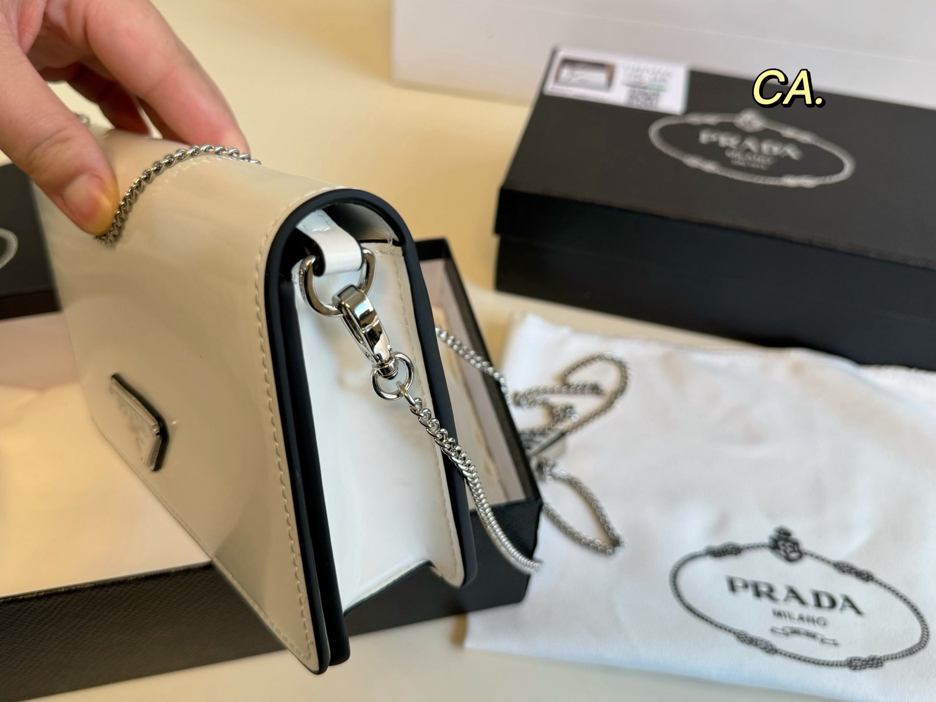 Introducing the PRADA Chain Single Shoulder Crossbody Bag, a chic and stylish addition to your wardrobe. Crafted from premium glossy leather, this bag features the iconic triangle logo and a distinctive shrink chain design, offering both elegance and functionality. With dimensions of 19×12 cm, it strikes the perfect balance between fashion and versatility. Lightweight and comfortable to wear, this exquisite bag enhances your outfit effortlessly, making it a must-have accessory for any occasion. Elevate your style with this beautiful piece that combines sophistication and practicality seamlessly.