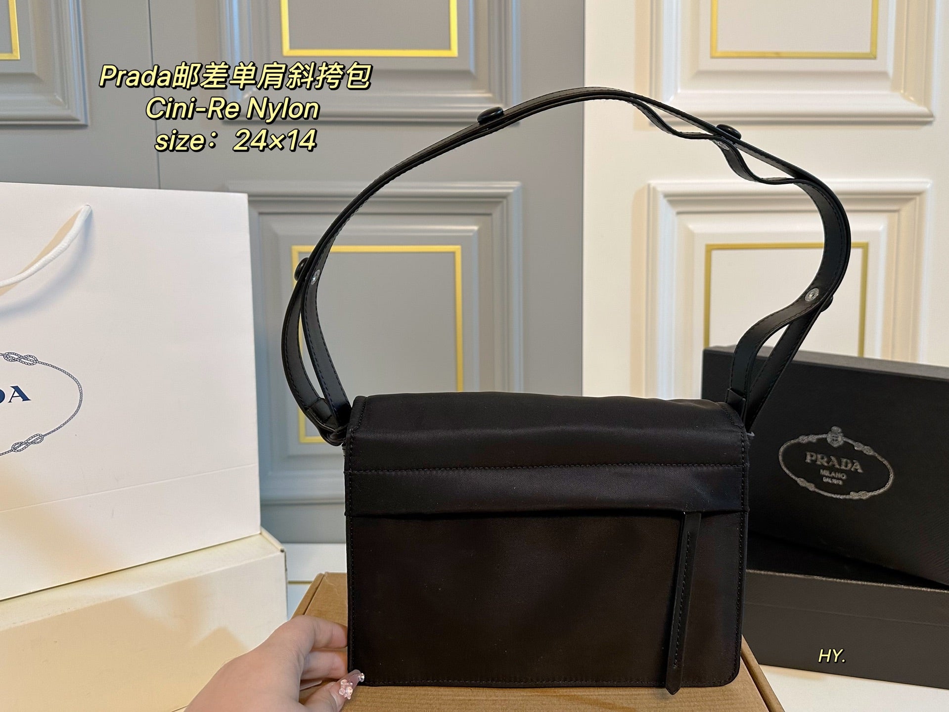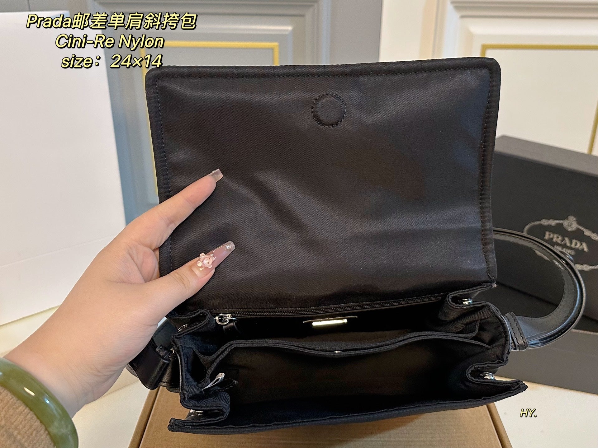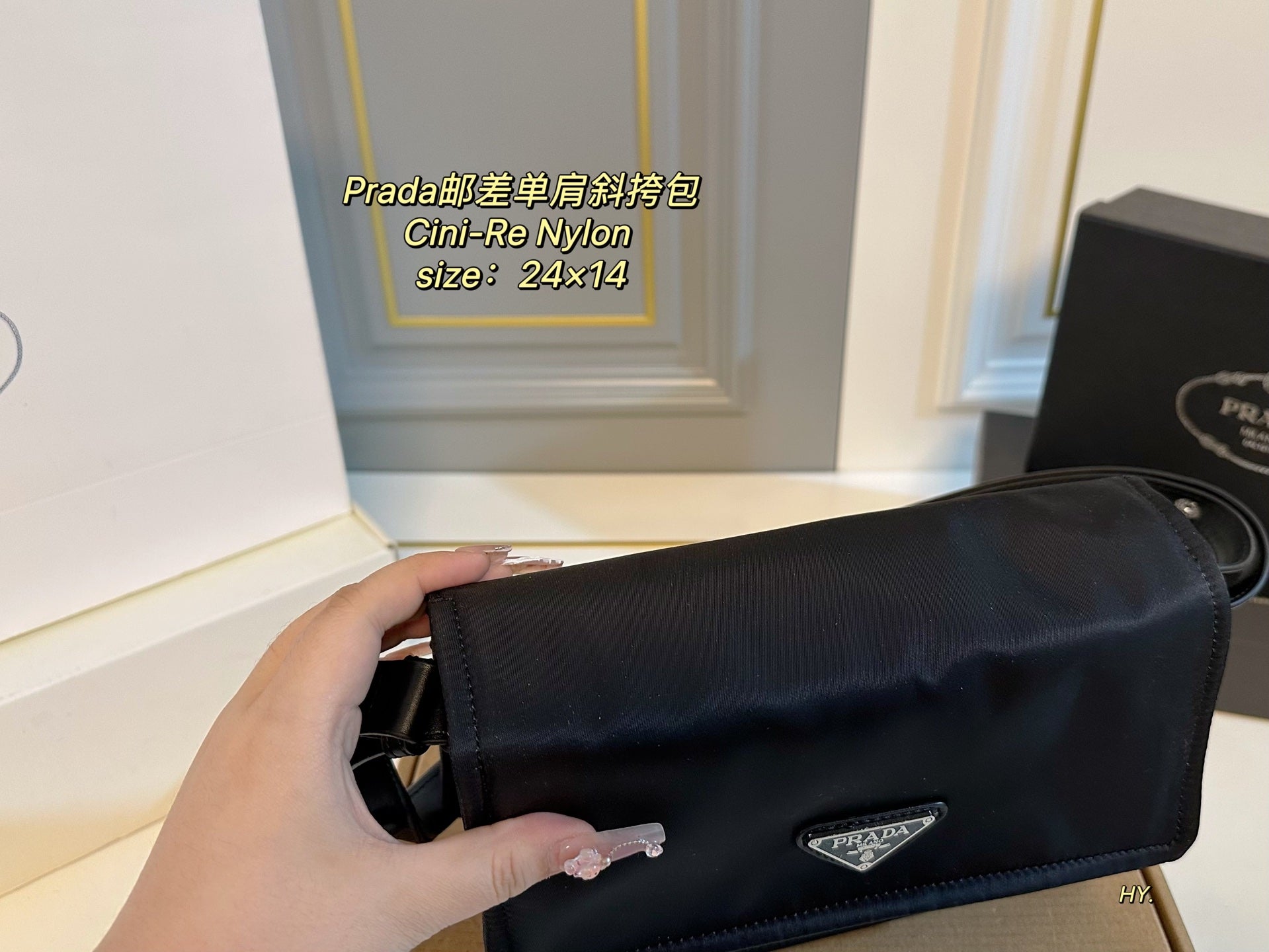 Discover the Prada Cini-Re Nylon Messenger Bag, a perfect blend of style and functionality. Measuring 24×14 cm, this compact yet spacious crossbody bag is crafted from imported nylon fabric that is both wear-resistant and durable.
