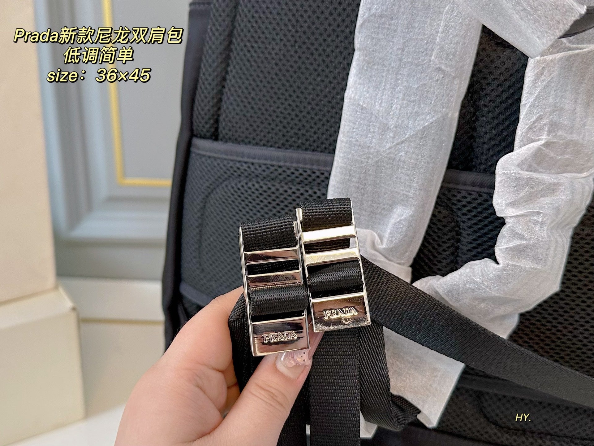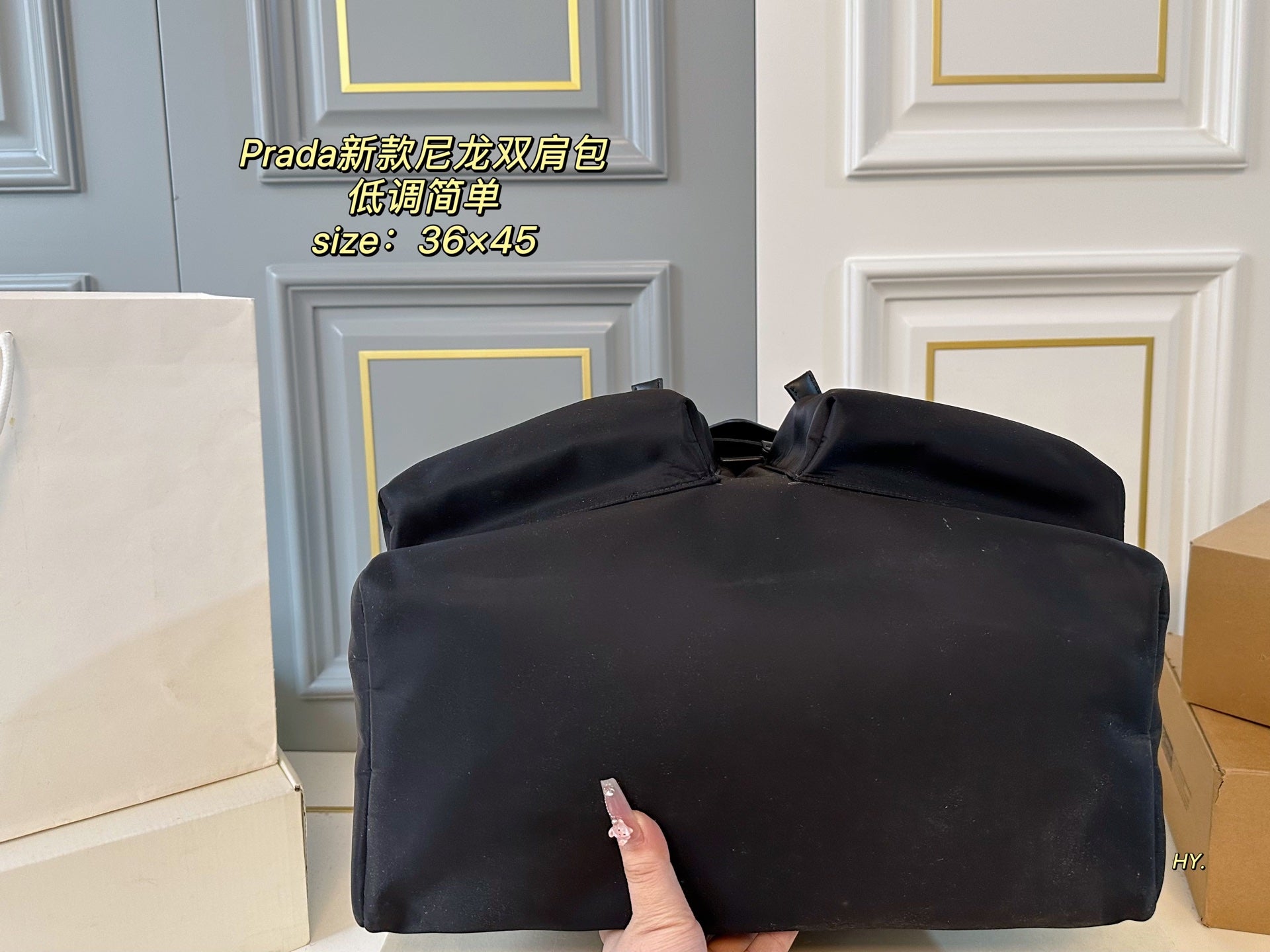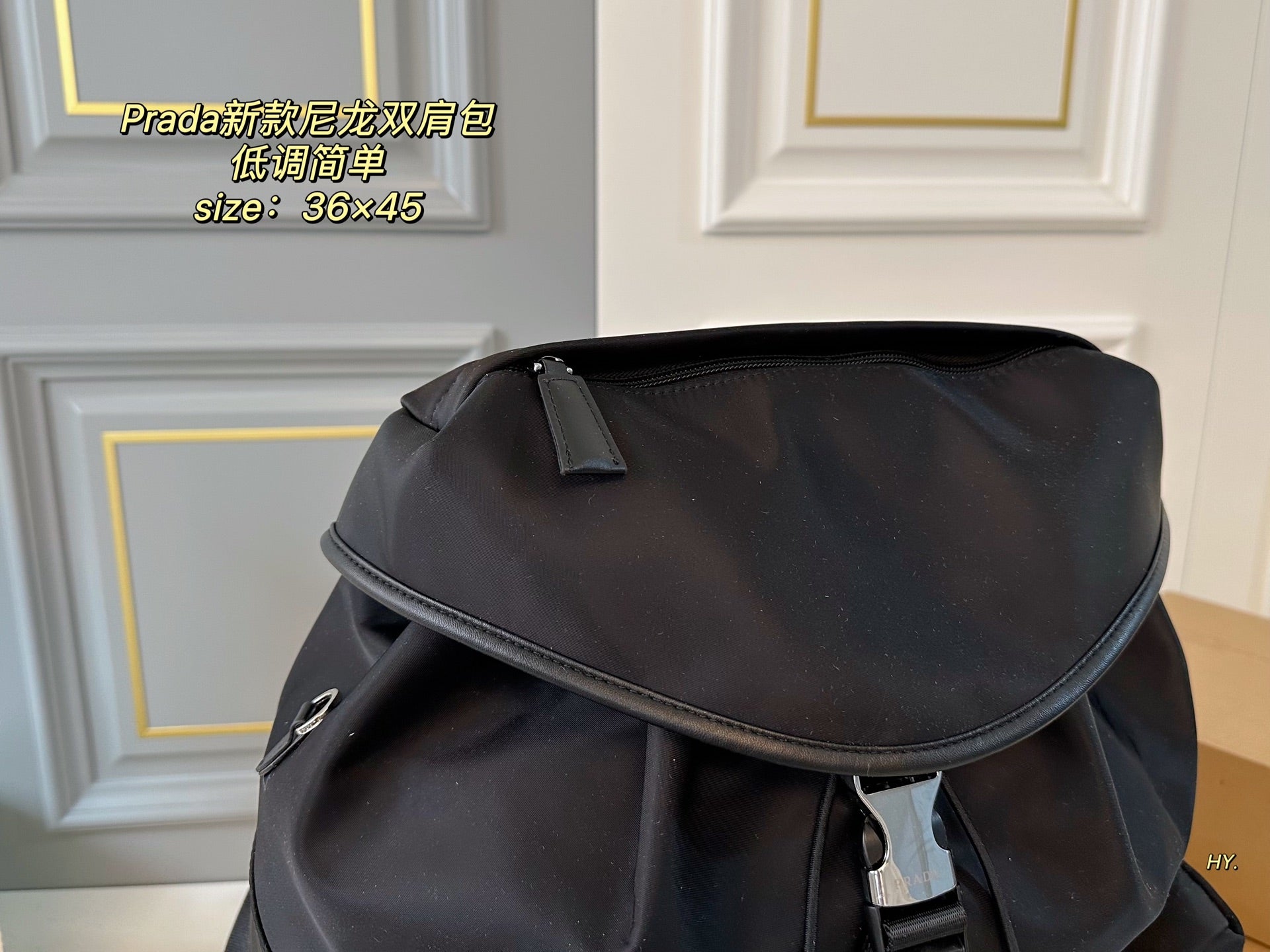 Introducing the PRADA Nylon Backpack, designed to seamlessly meet your daily needs while keeping your hands free. This versatile backpack, measuring 36×45 cm, features a classic black design that exudes understated elegance. Made from durable materials, the bag maintains its shape and remains lightweight, making it the perfect companion for any occasion. Elevate your style with this essential accessory that effortlessly combines functionality and sophistication.