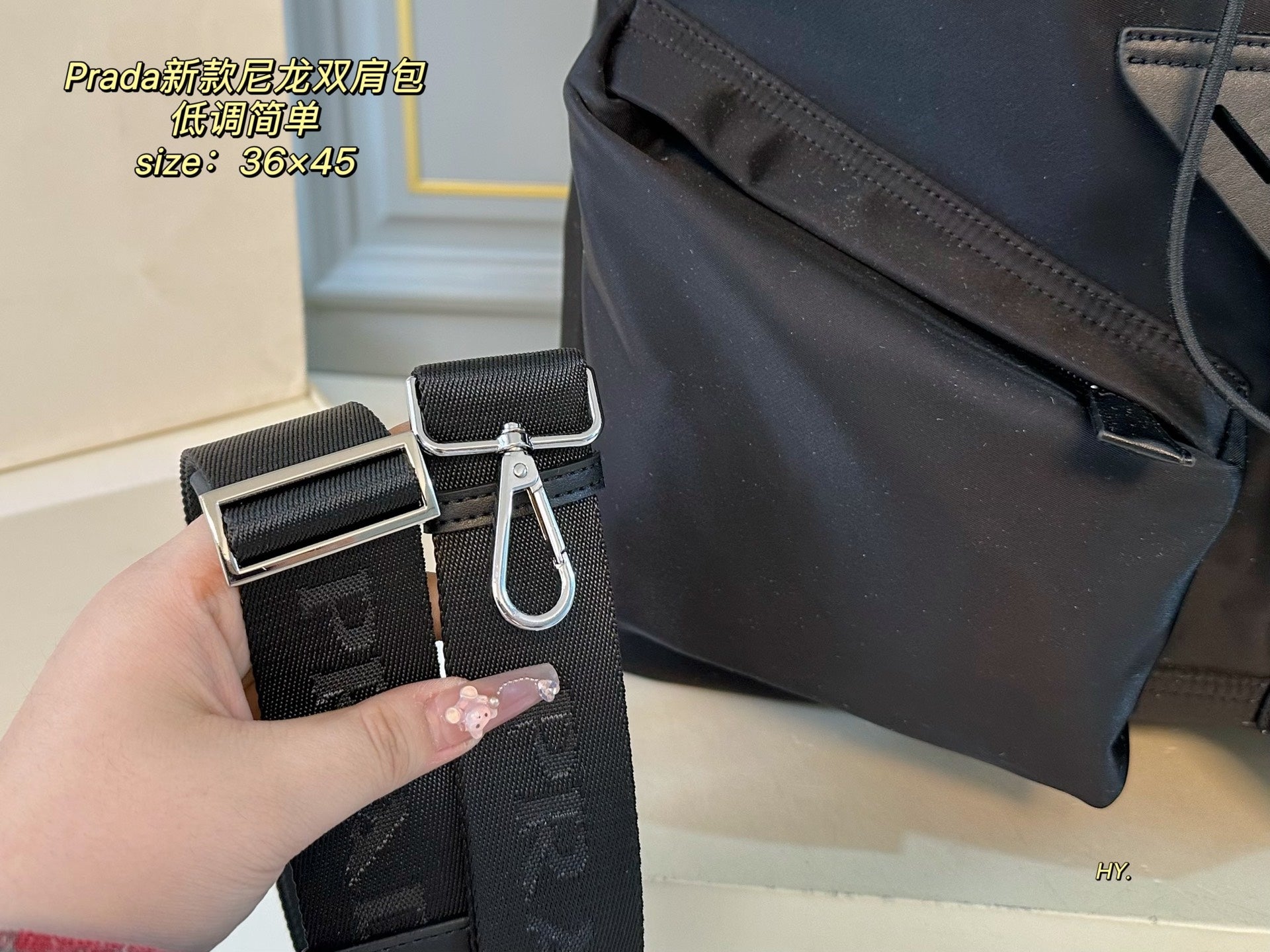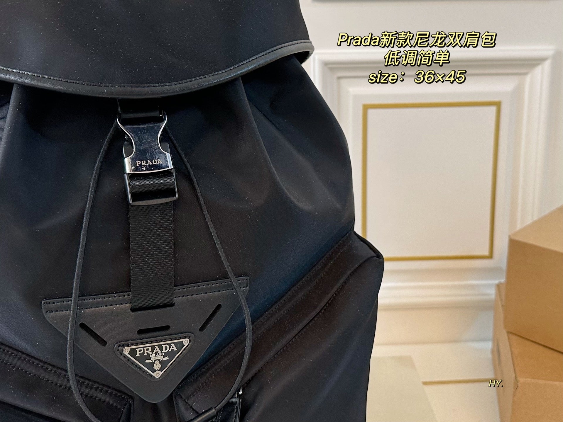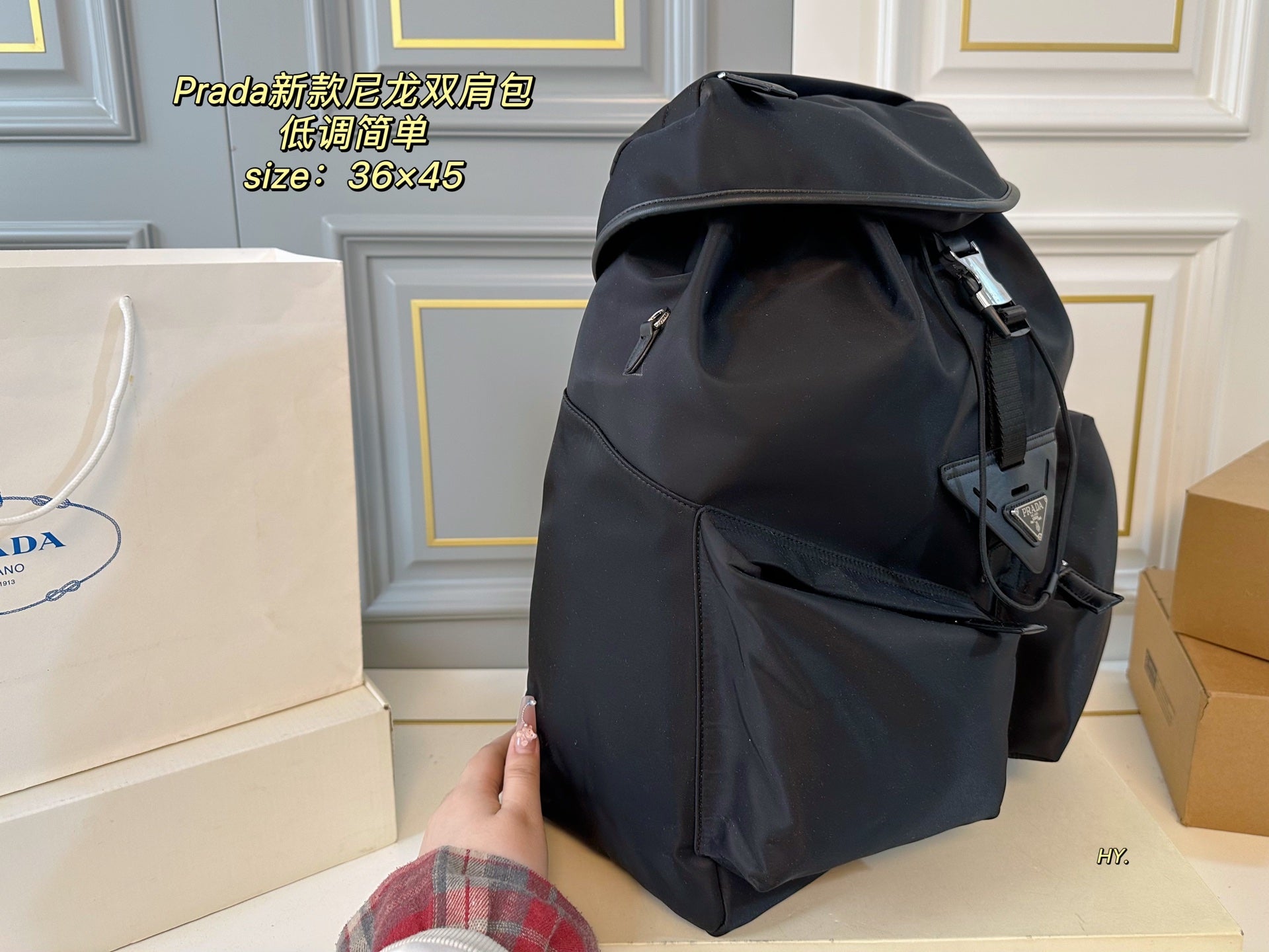 Introducing the PRADA Nylon Backpack, designed to seamlessly meet your daily needs while keeping your hands free. This versatile backpack, measuring 36×45 cm, features a classic black design that exudes understated elegance. Made from durable materials, the bag maintains its shape and remains lightweight, making it the perfect companion for any occasion. Elevate your style with this essential accessory that effortlessly combines functionality and sophistication.