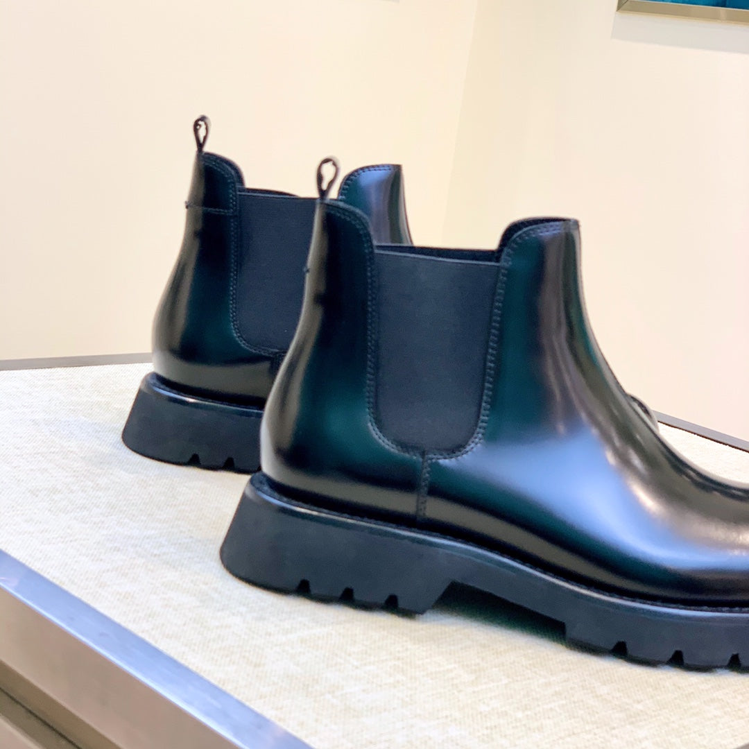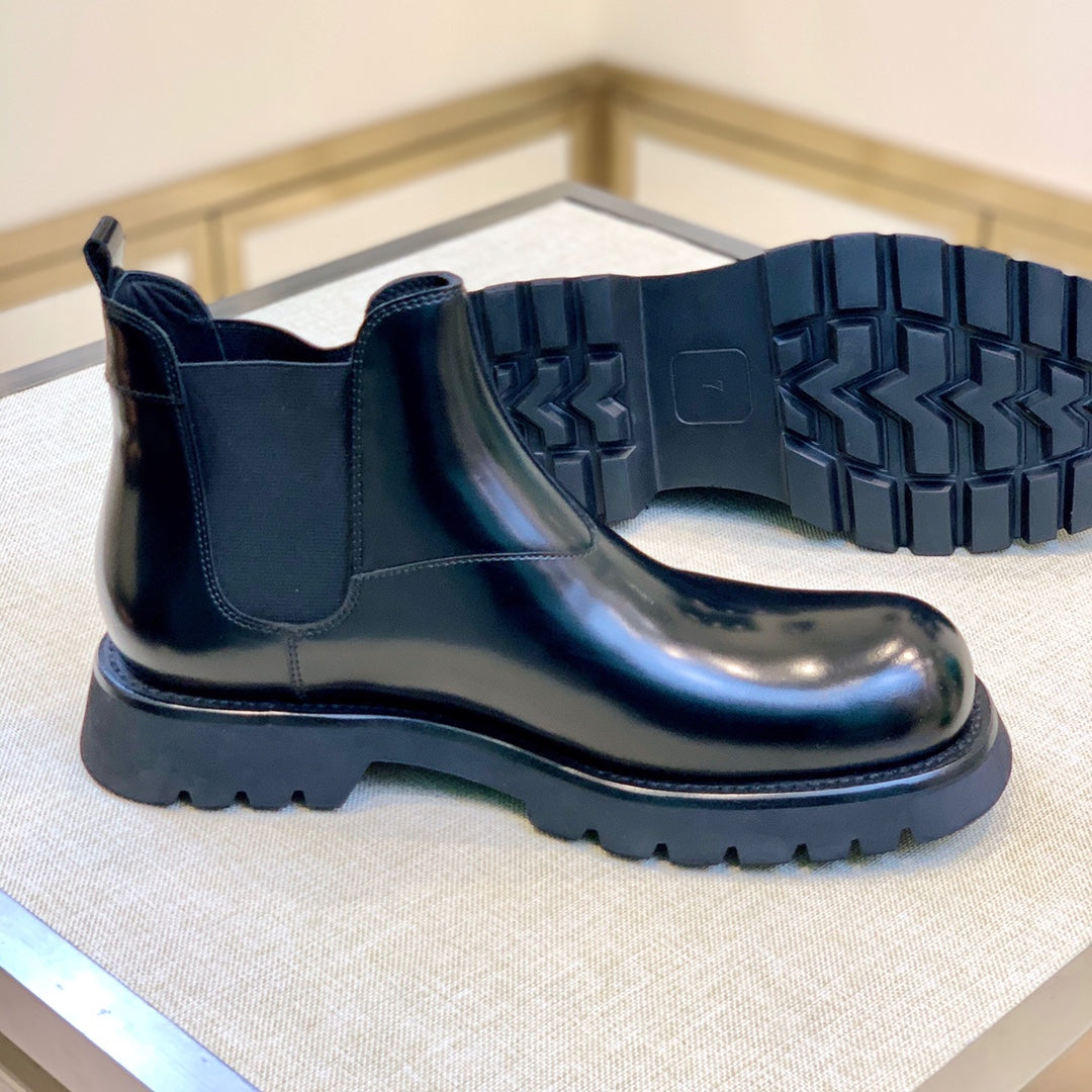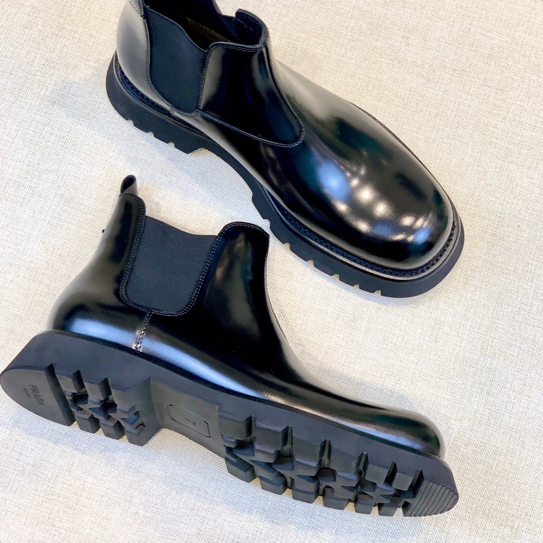 PRADA Classic Round Toe Men's Boots - High-Quality Leather