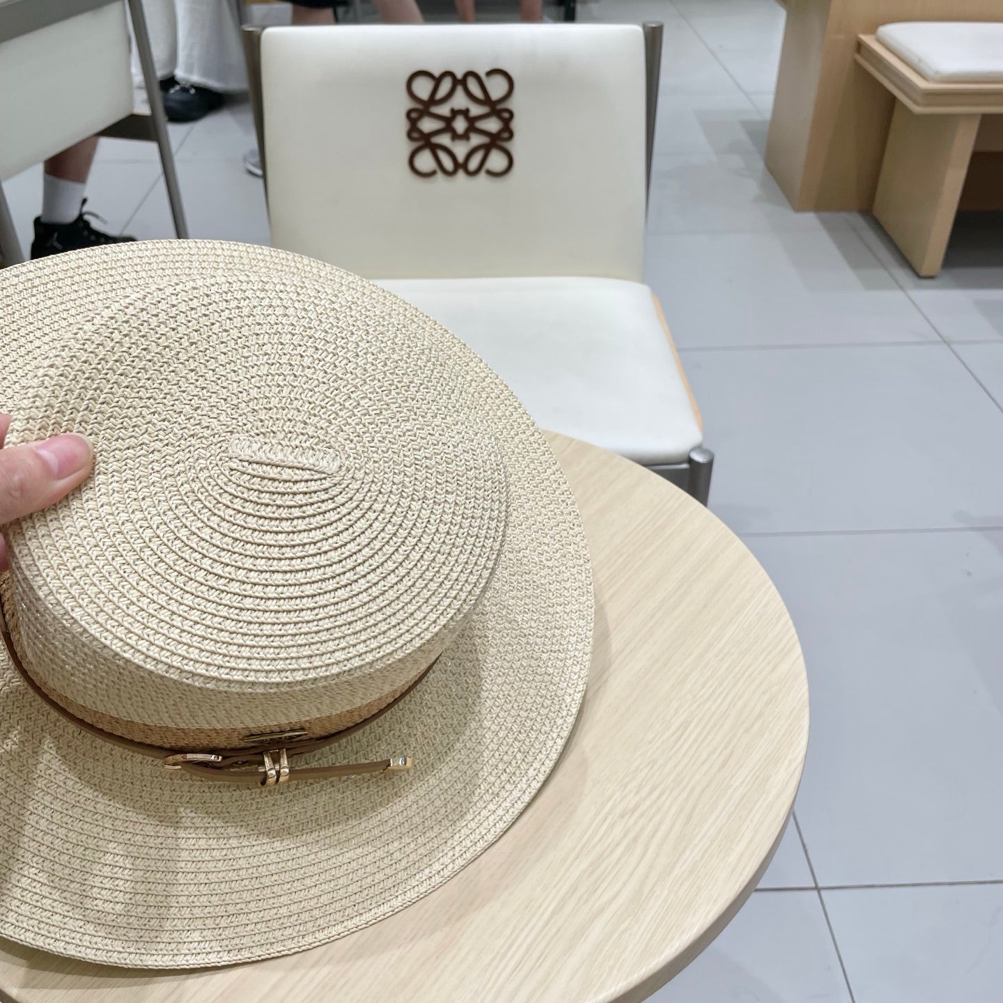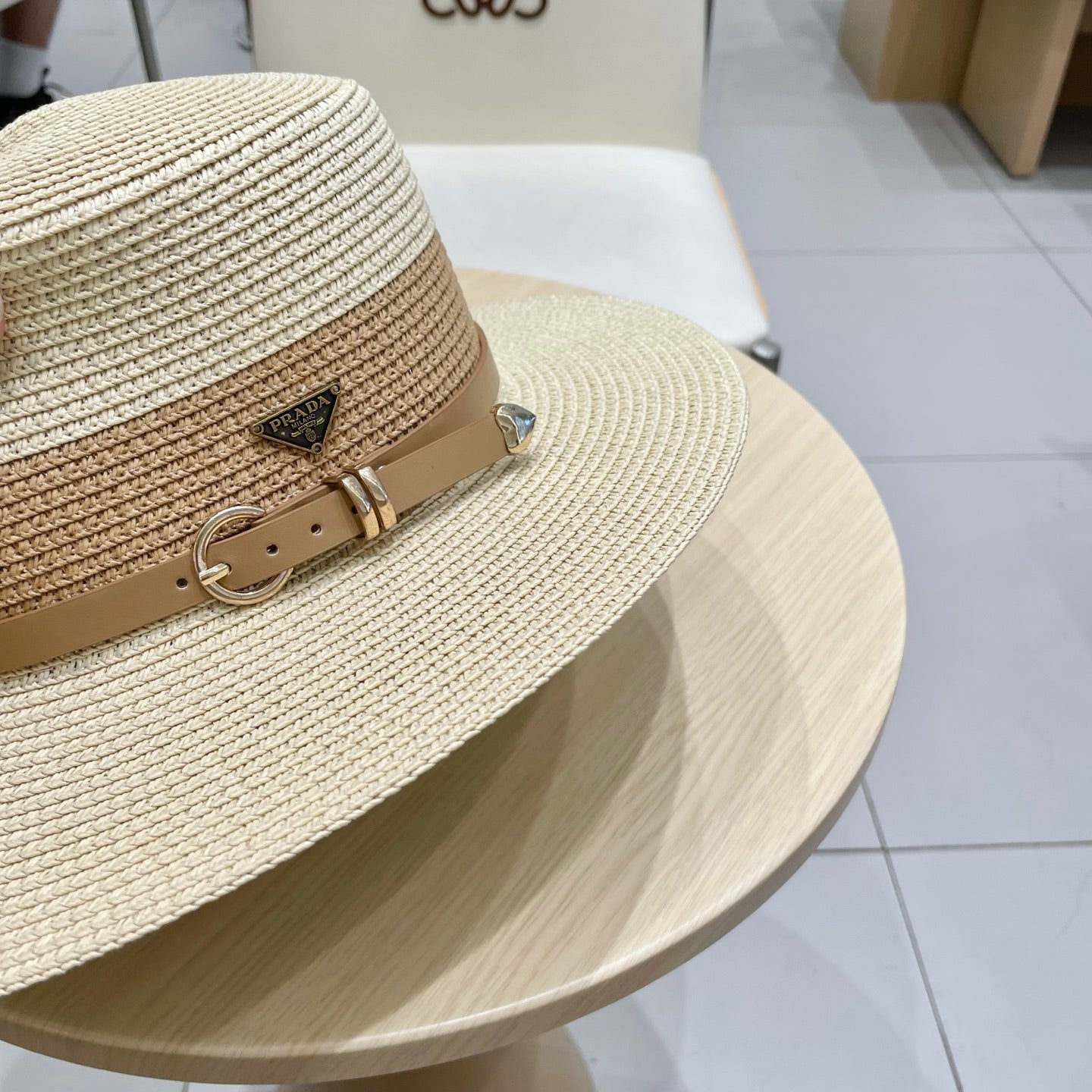 Elevate your summer style with the Prada Color Block Straw Hat. This chic flat hat, designed with an eye-catching color block pattern, effortlessly combines sophistication with a laid-back vibe. Crafted for comfort and breathability, it features a head circumference of 57cm, making it the perfect accessory for sunny days. Pair it with casual outfits or beachwear to complete your look. Embrace luxury and protection from the sun with this must-have accessory.