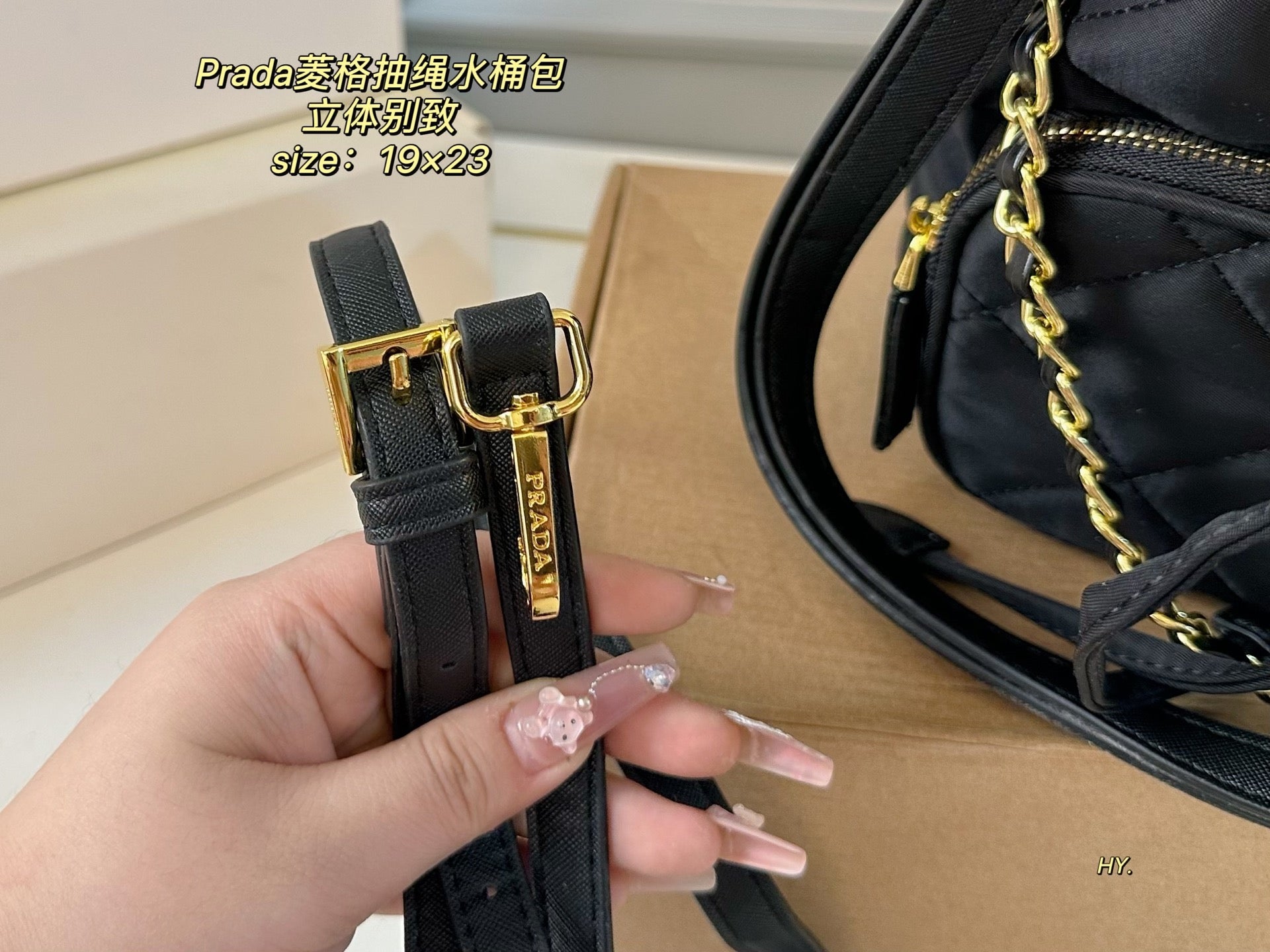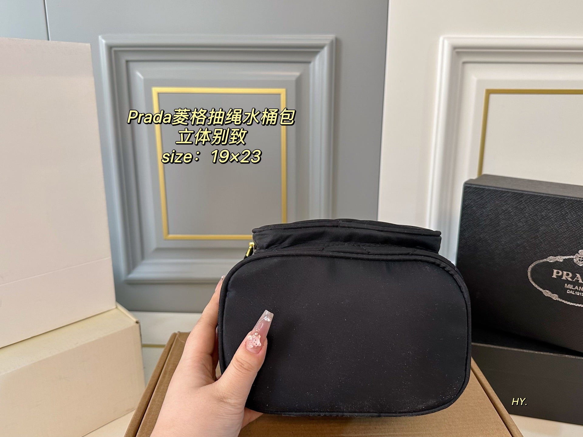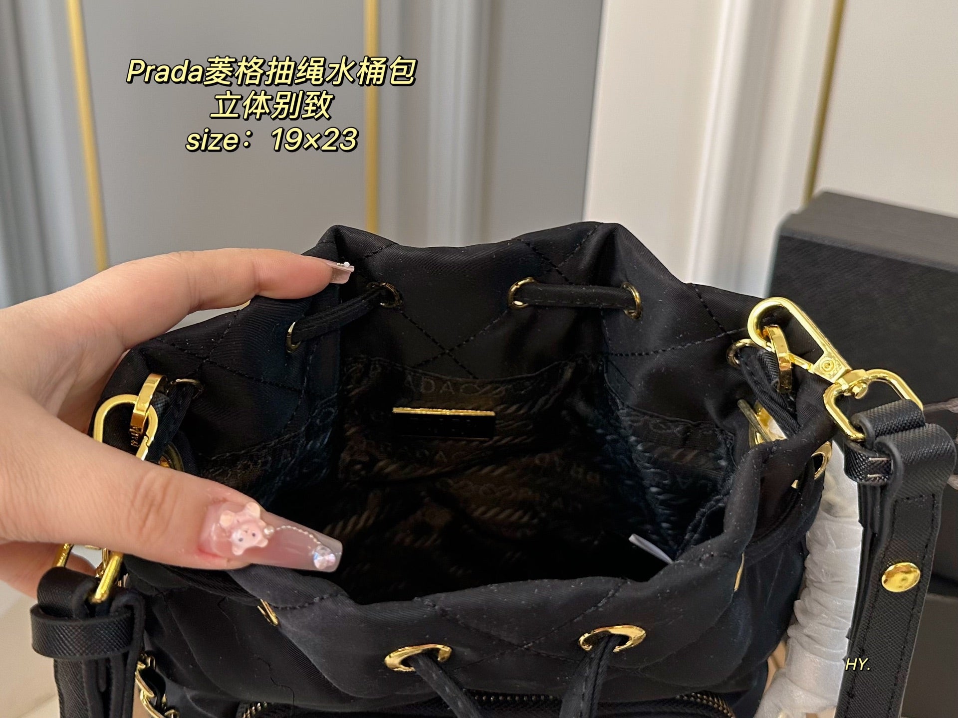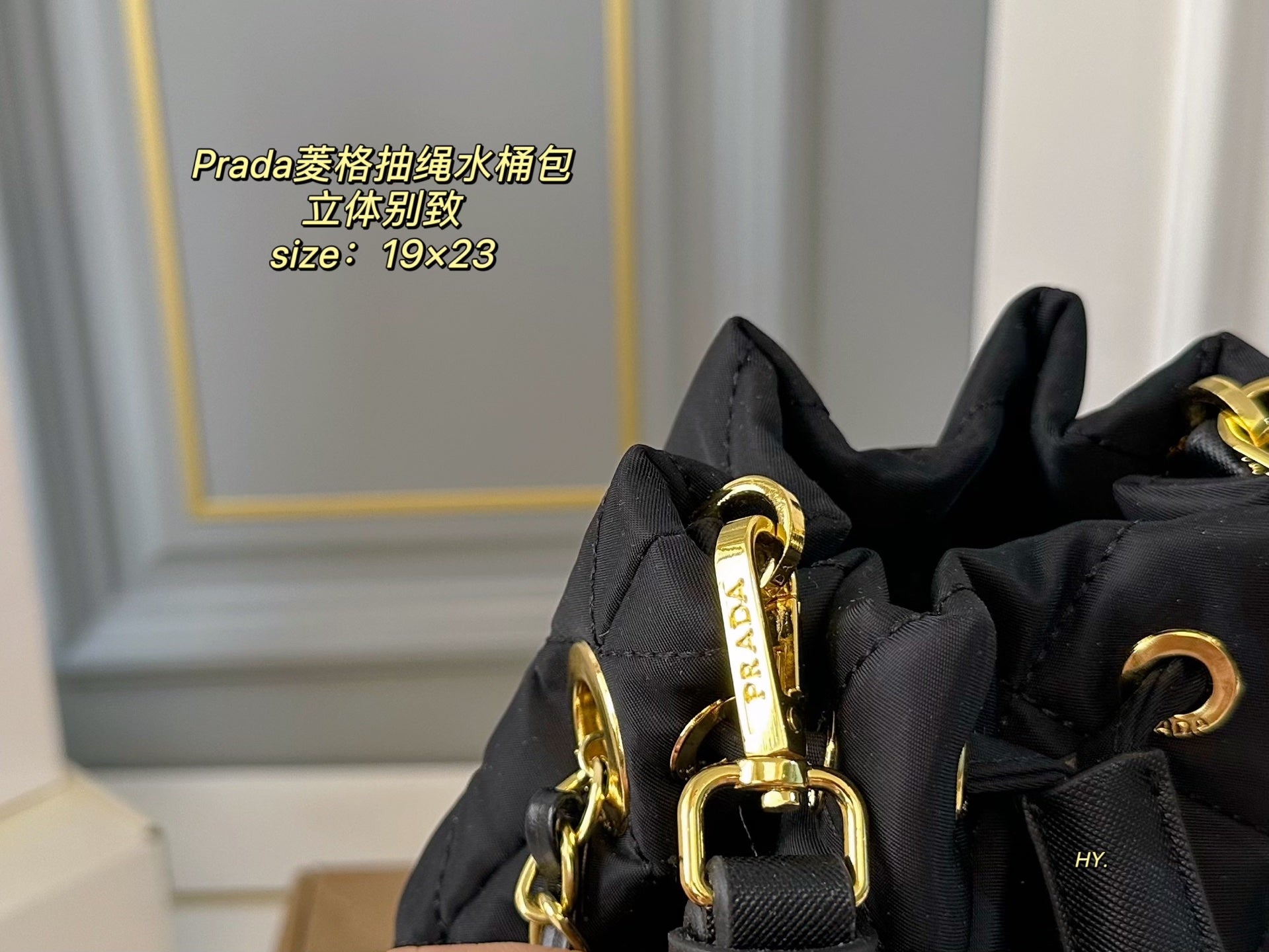 Elevate your style with the Prada Diamond Drawstring Bucket Bag, featuring a sophisticated 19x23 cm design. Crafted from premium imported nylon and leather, this bag showcases a unique diamond grid pattern that adds a modern touch. Its three-dimensional bucket shape offers ample capacity, making it the perfect accessory for work, commuting, or daily outings. Discover the perfect blend of functionality and high fashion with this exquisite piece from Prada.