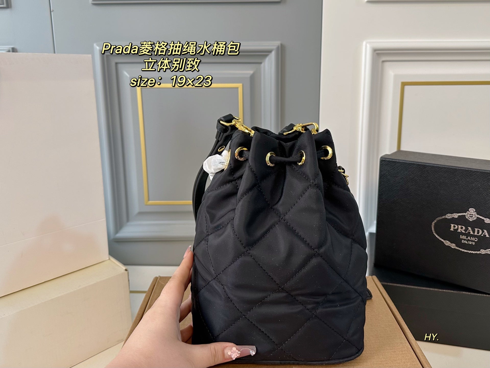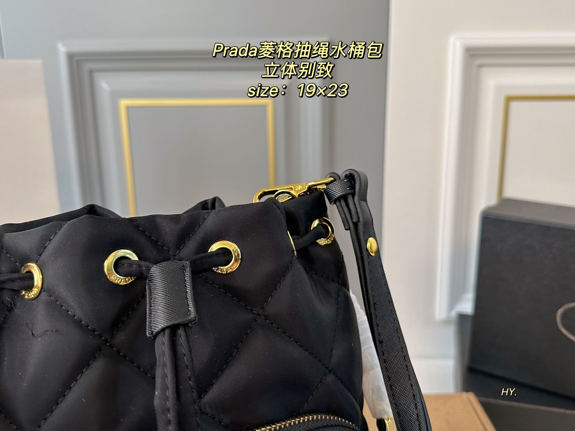 Prada Diamond Drawstring Bucket Bag - Chic Nylon and Leather
