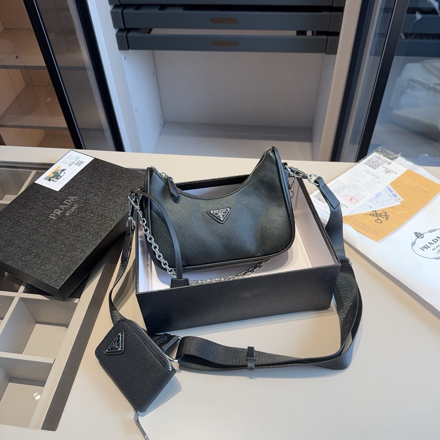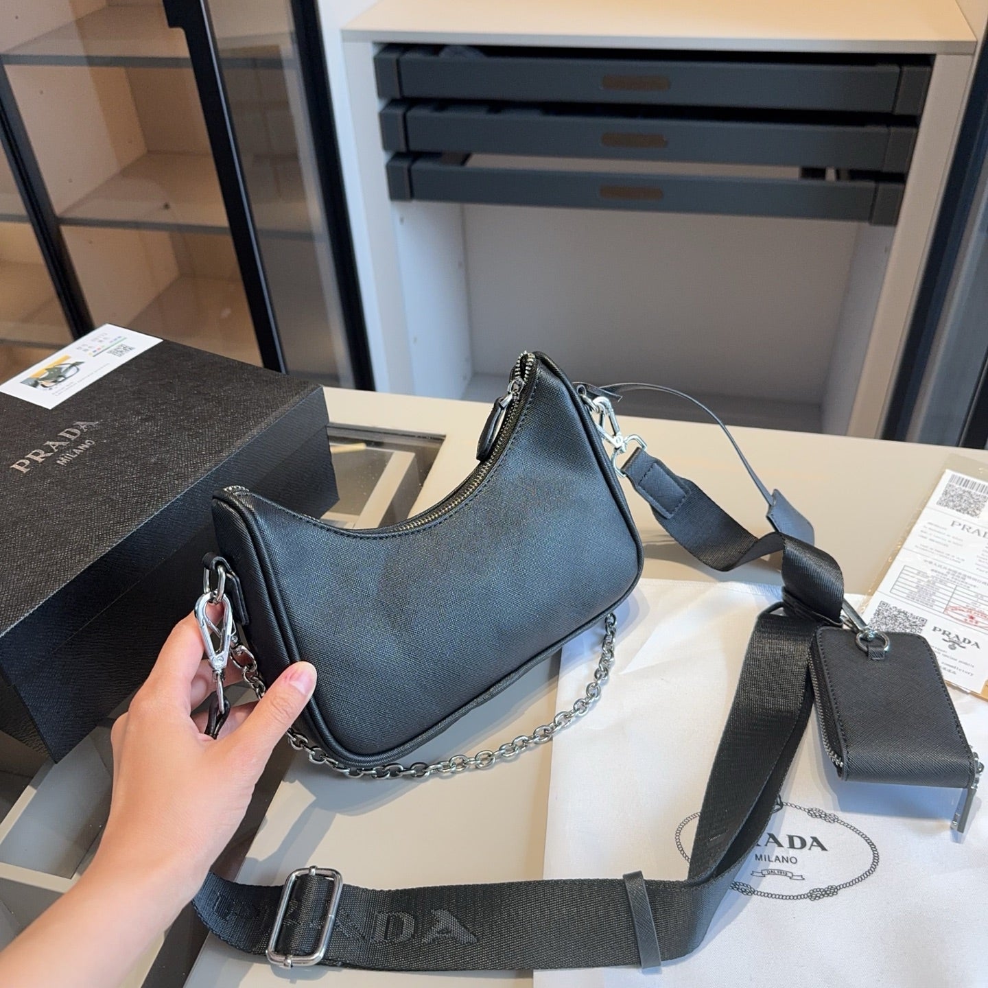Prada-Inspired 3-in-1 Hobo Crossbody Bag with Coin Purse Pendant