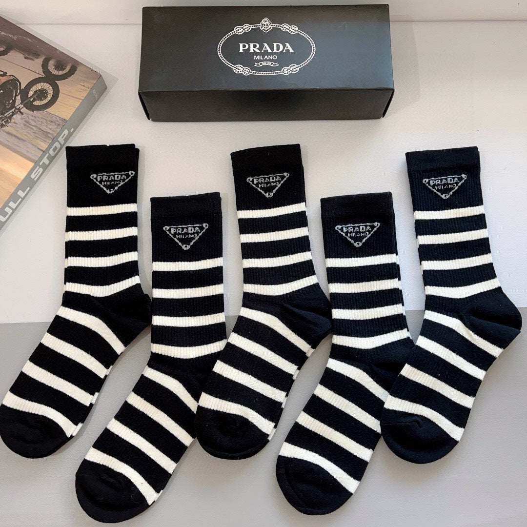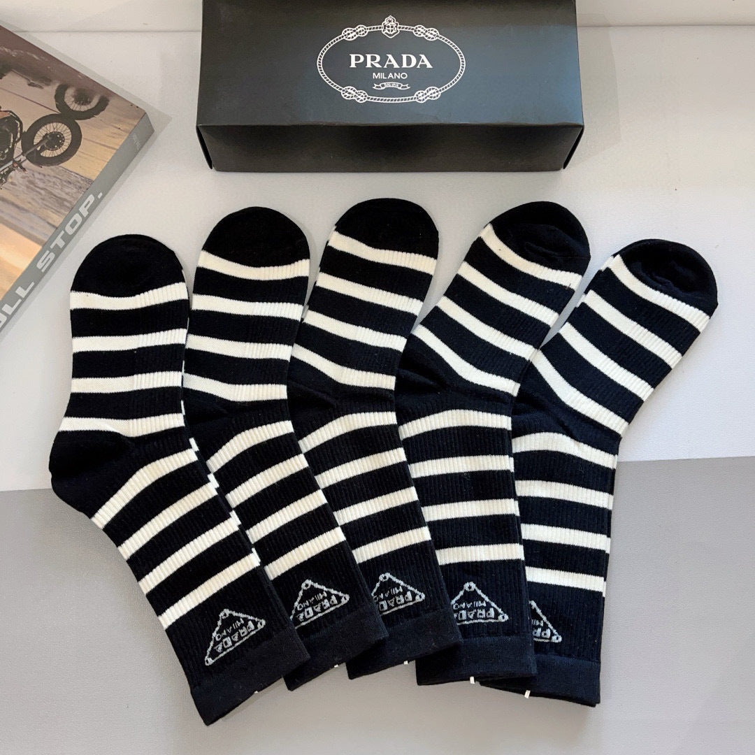 PRADA Inverted Triangle Logo Calf Socks - Luxury Stockings (5 Pairs)