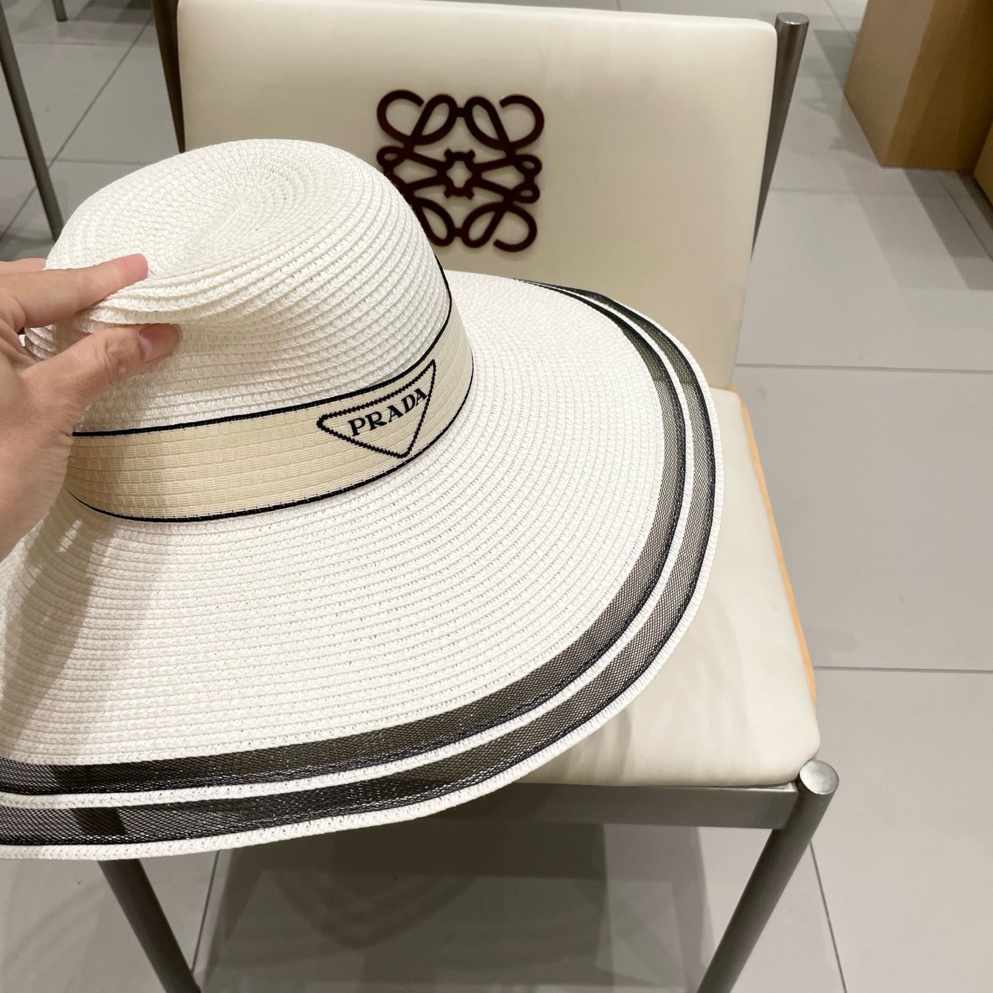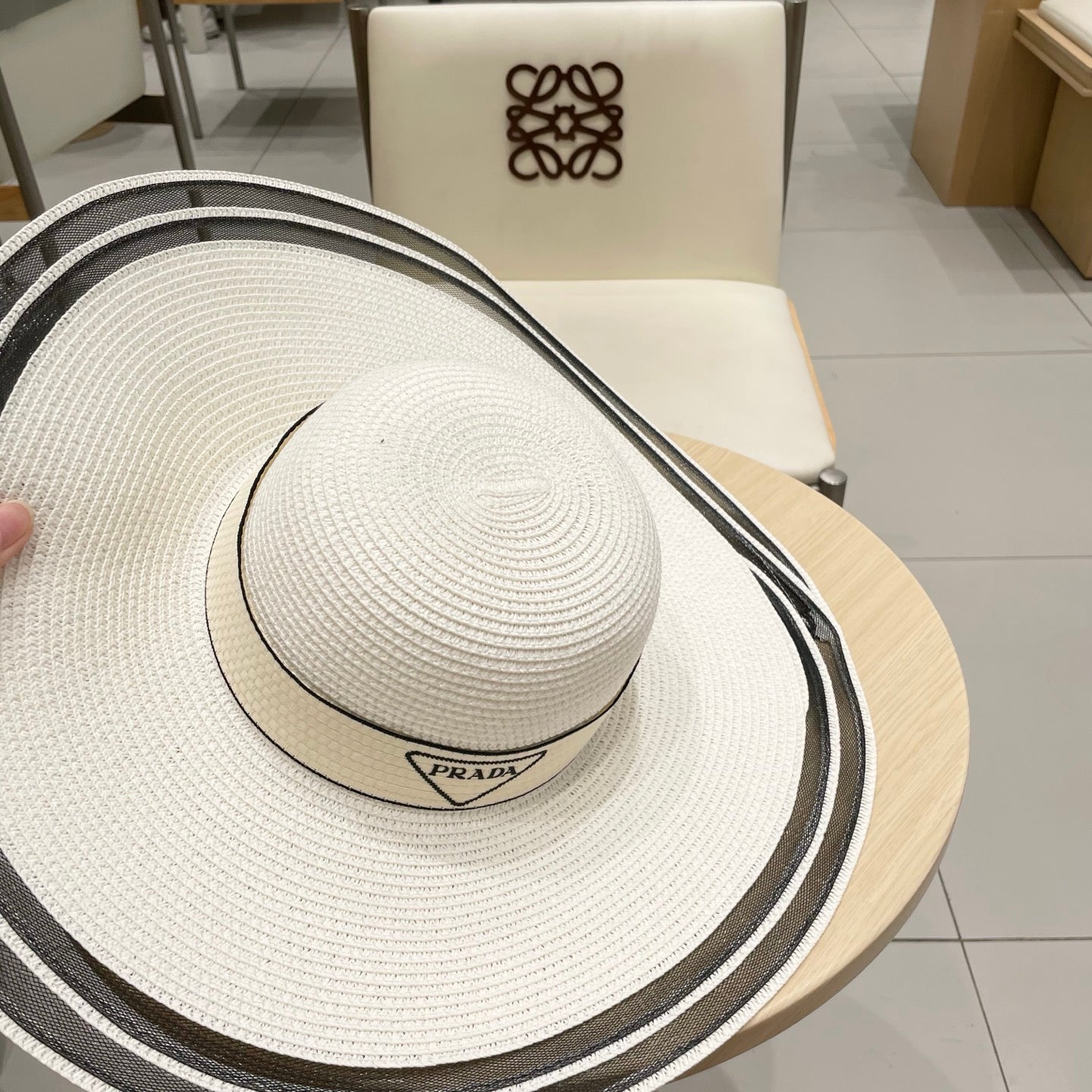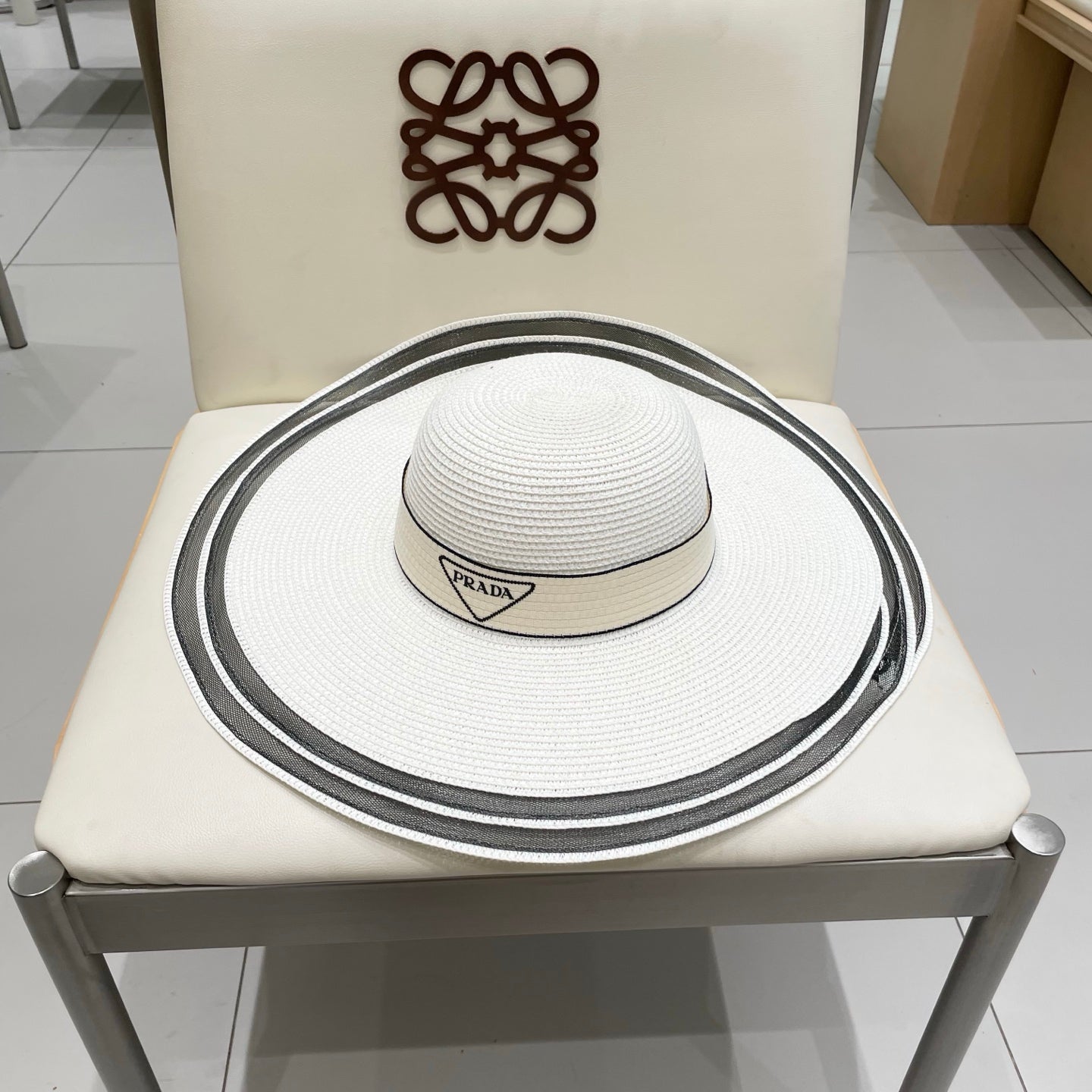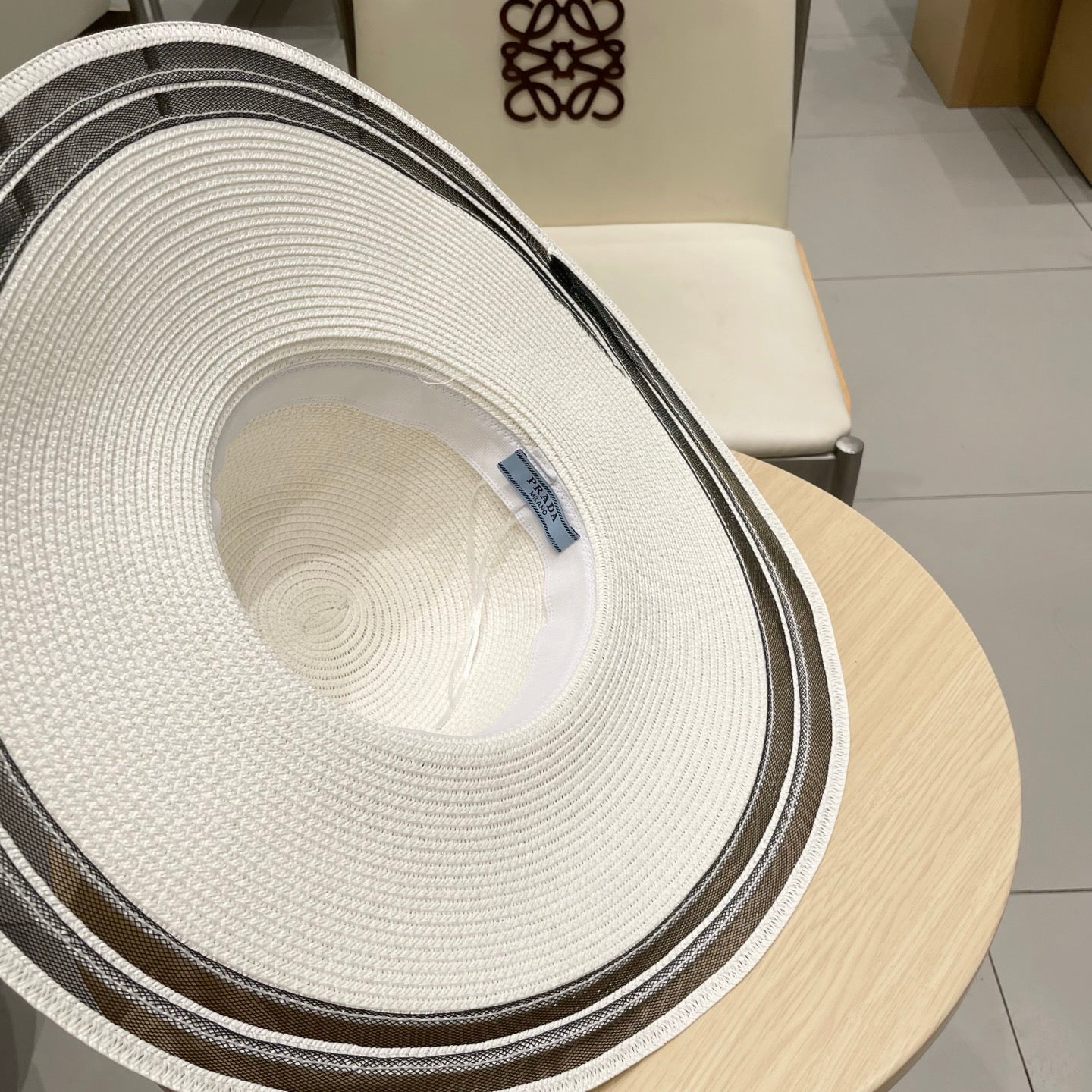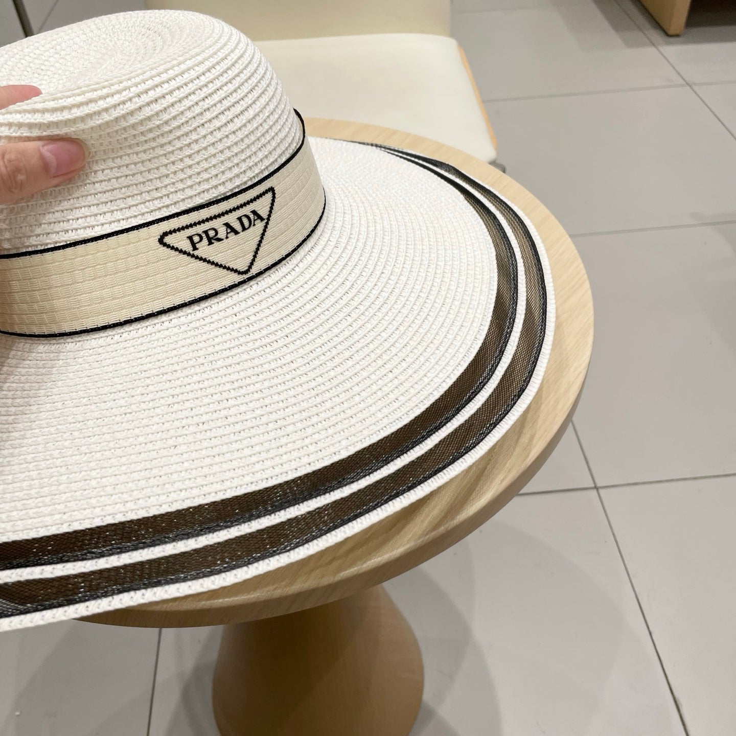 Prada Large Brim Flat Top Straw Hat - Size 57cm