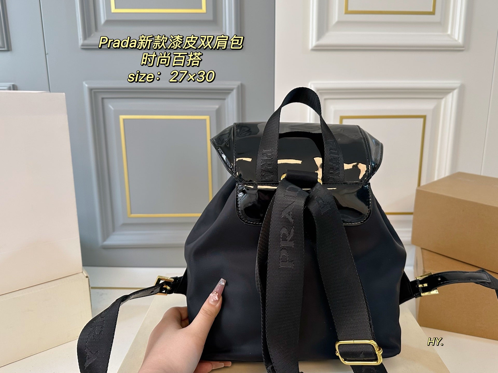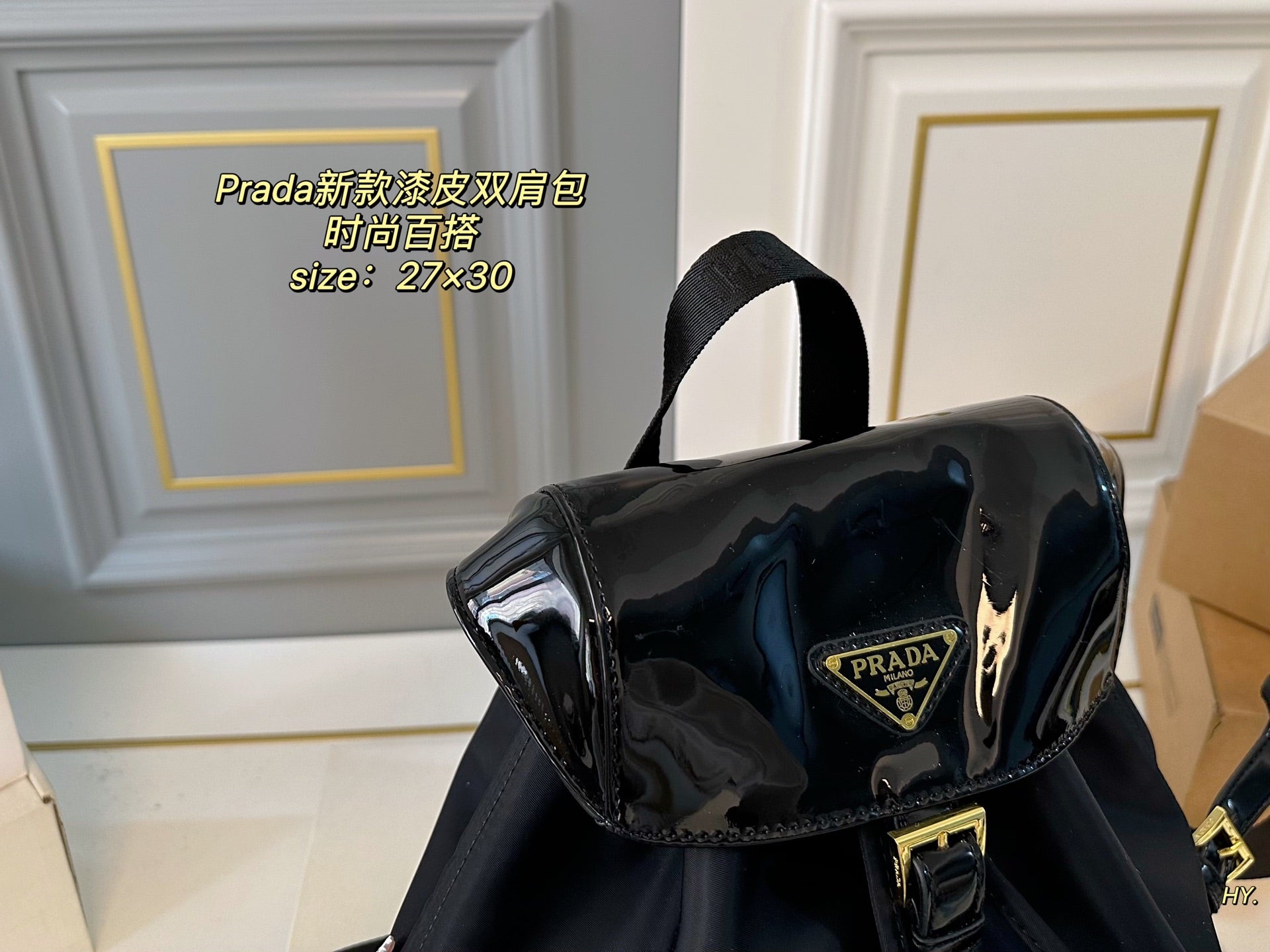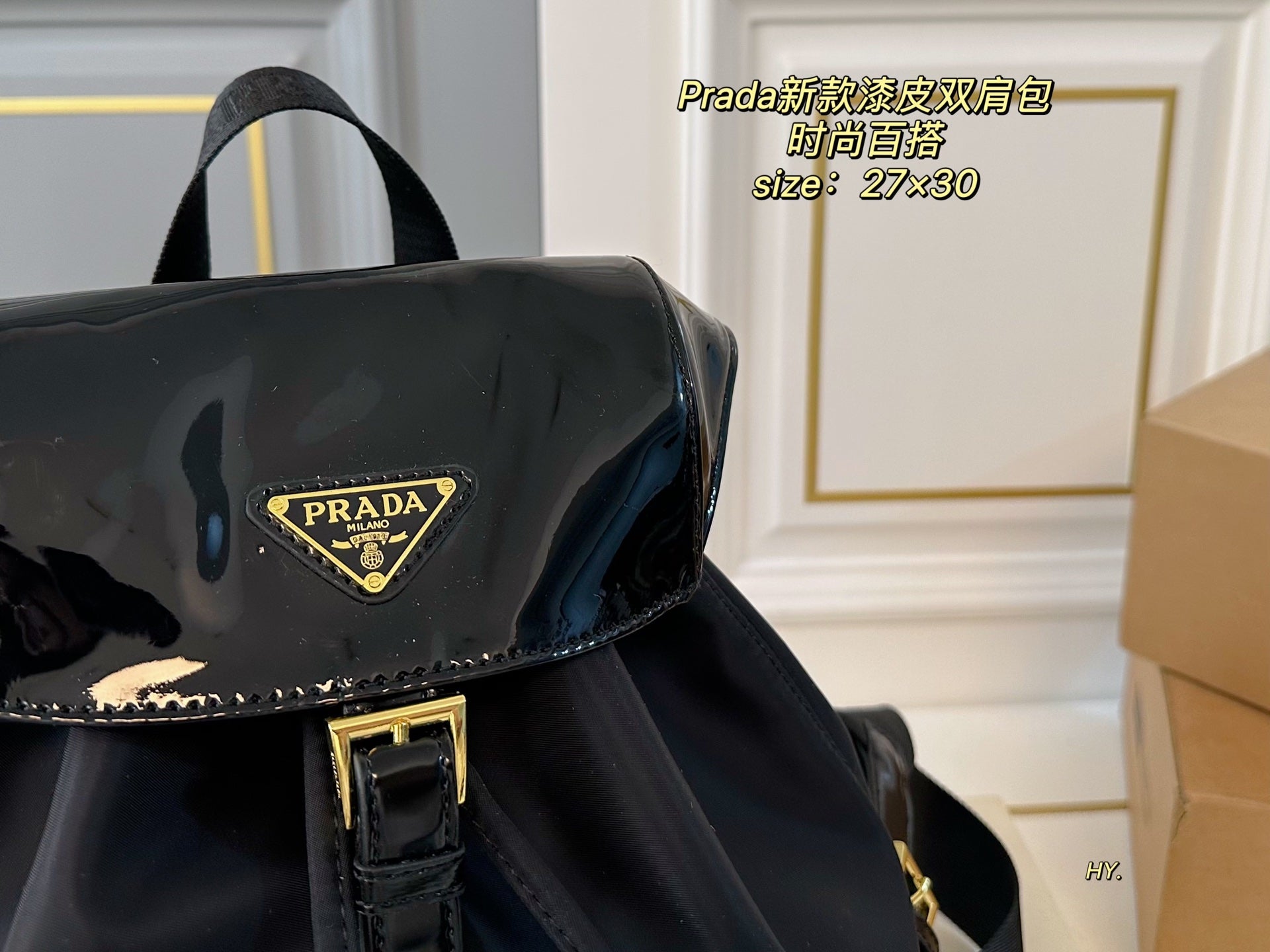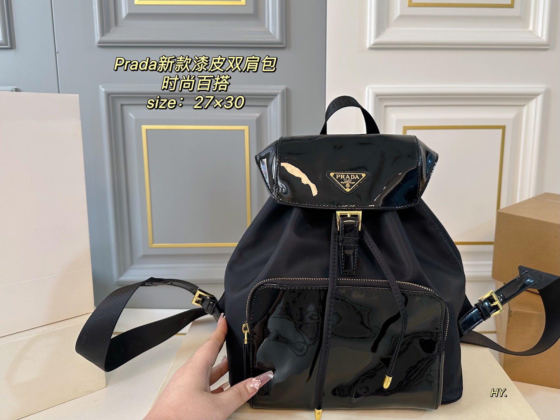Discover the elegance of the PRADA Large Patent Leather and Nylon Backpack. Measuring 27×30, this stylish backpack offers ample space for all your essentials while ensuring practicality and comfort. Crafted with high-quality patent leather and durable nylon fabric, it boasts exceptional craftsmanship and a luxurious feel. The fashionable design makes it a versatile accessory for any occasion. Elevate your style with this must-have piece that combines sophistication and functionality.
