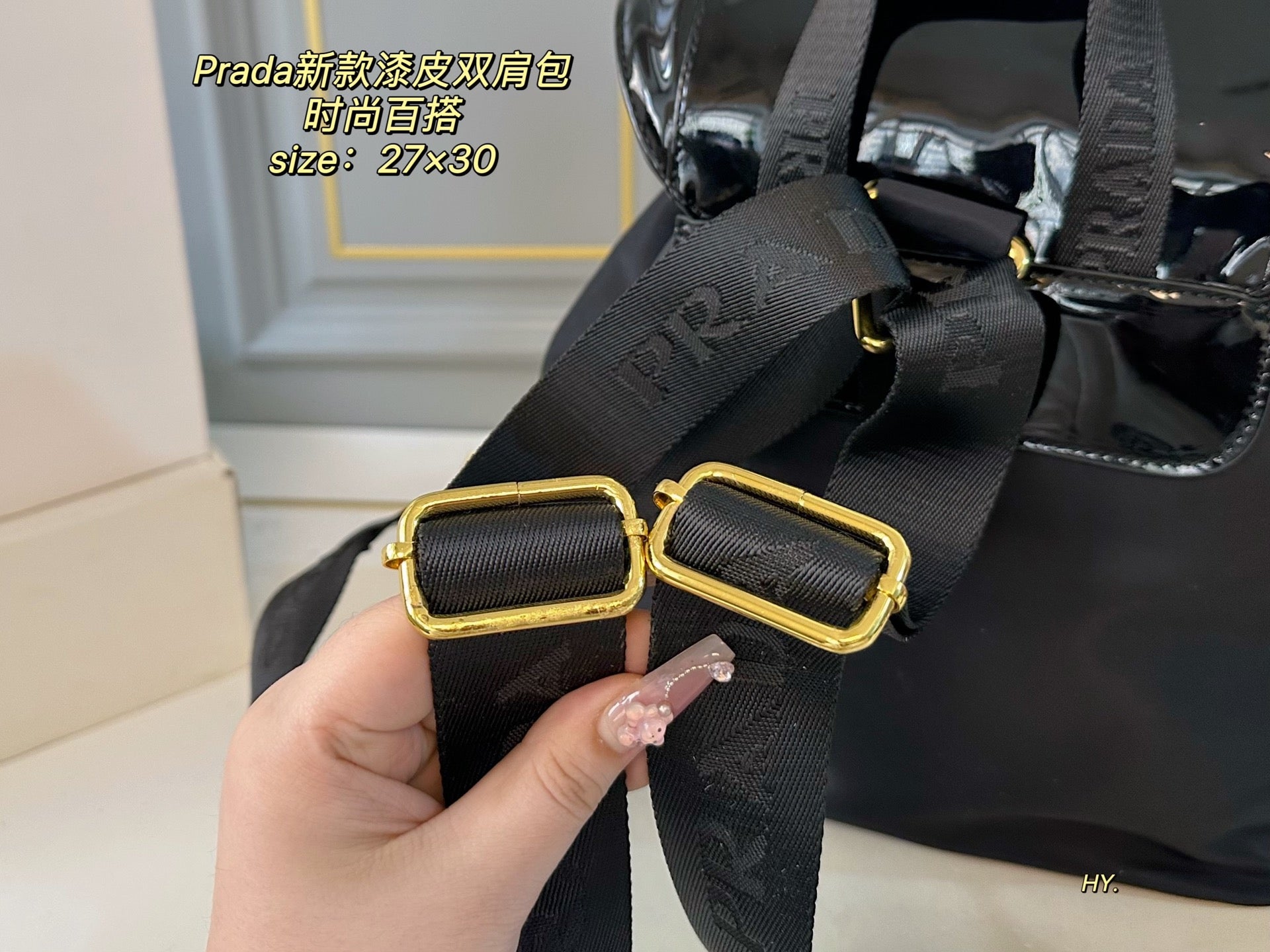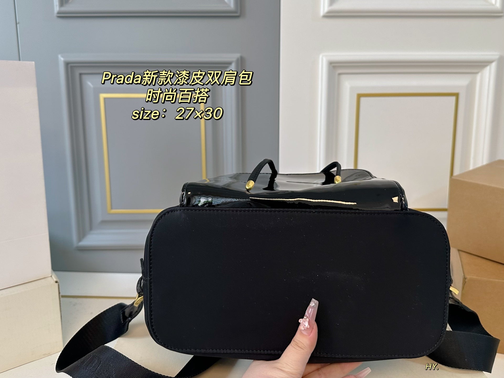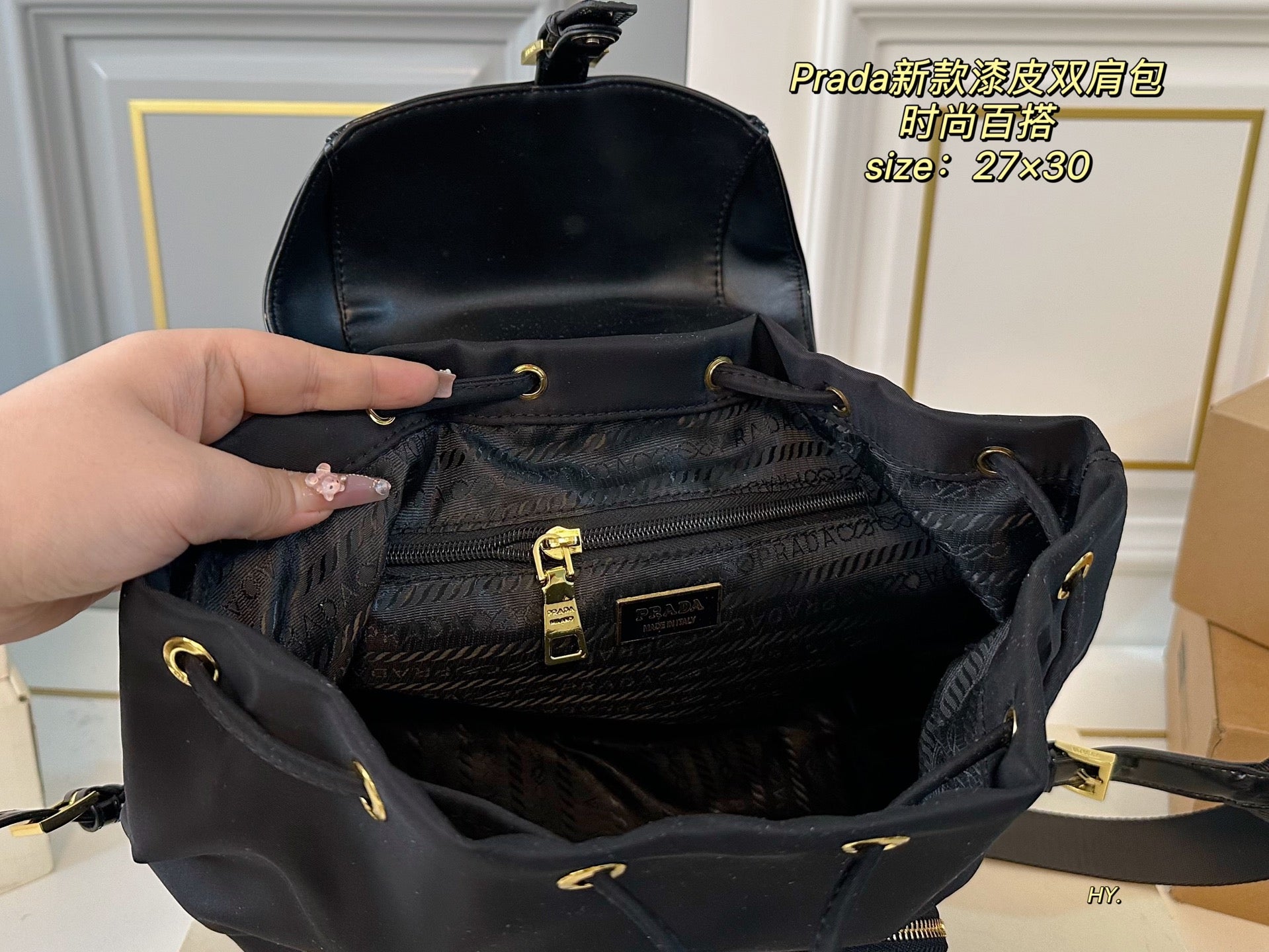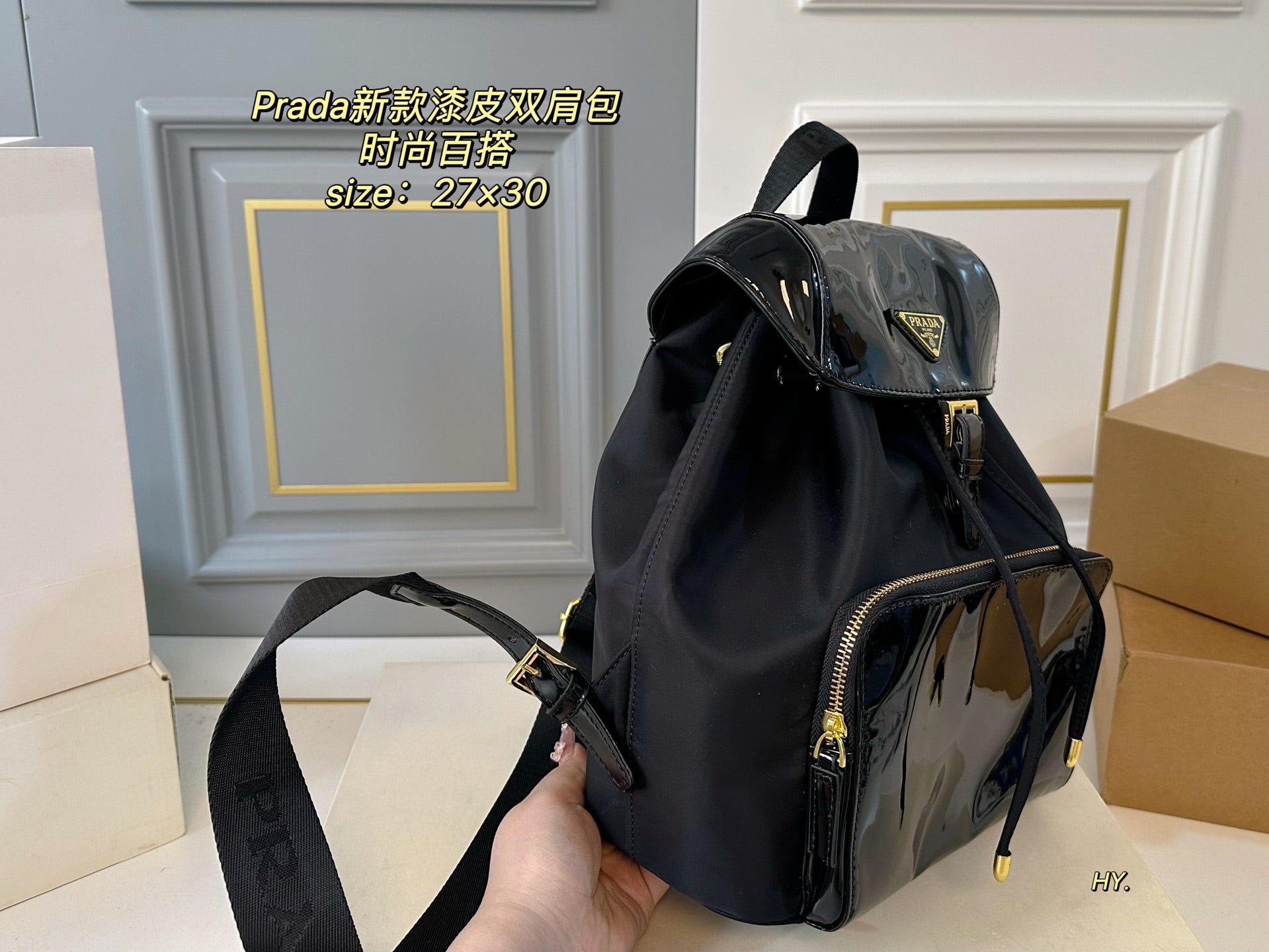 Discover the elegance of the PRADA Large Patent Leather and Nylon Backpack. Measuring 27×30, this stylish backpack offers ample space for all your essentials while ensuring practicality and comfort. Crafted with high-quality patent leather and durable nylon fabric, it boasts exceptional craftsmanship and a luxurious feel. The fashionable design makes it a versatile accessory for any occasion. Elevate your style with this must-have piece that combines sophistication and functionality.