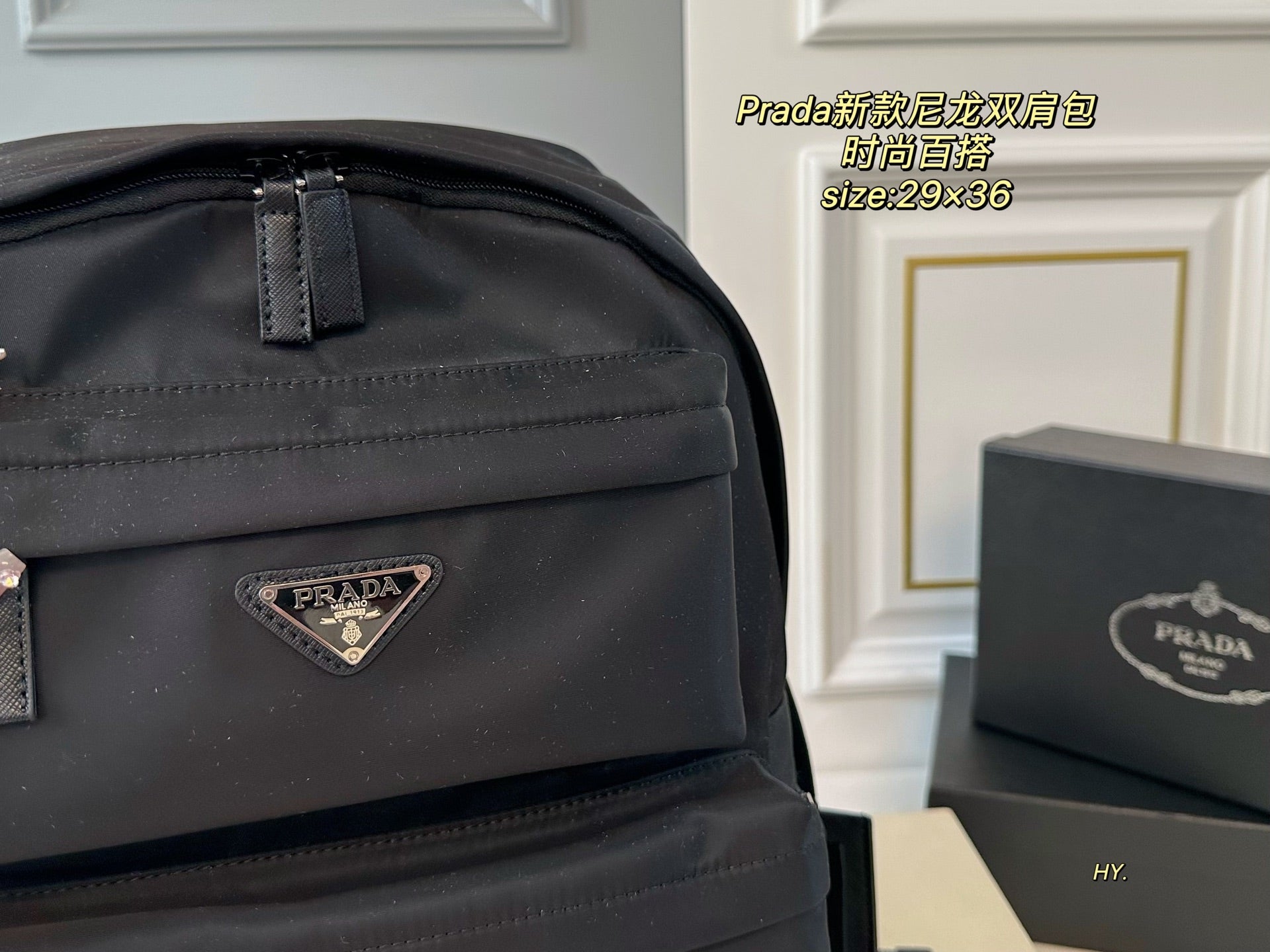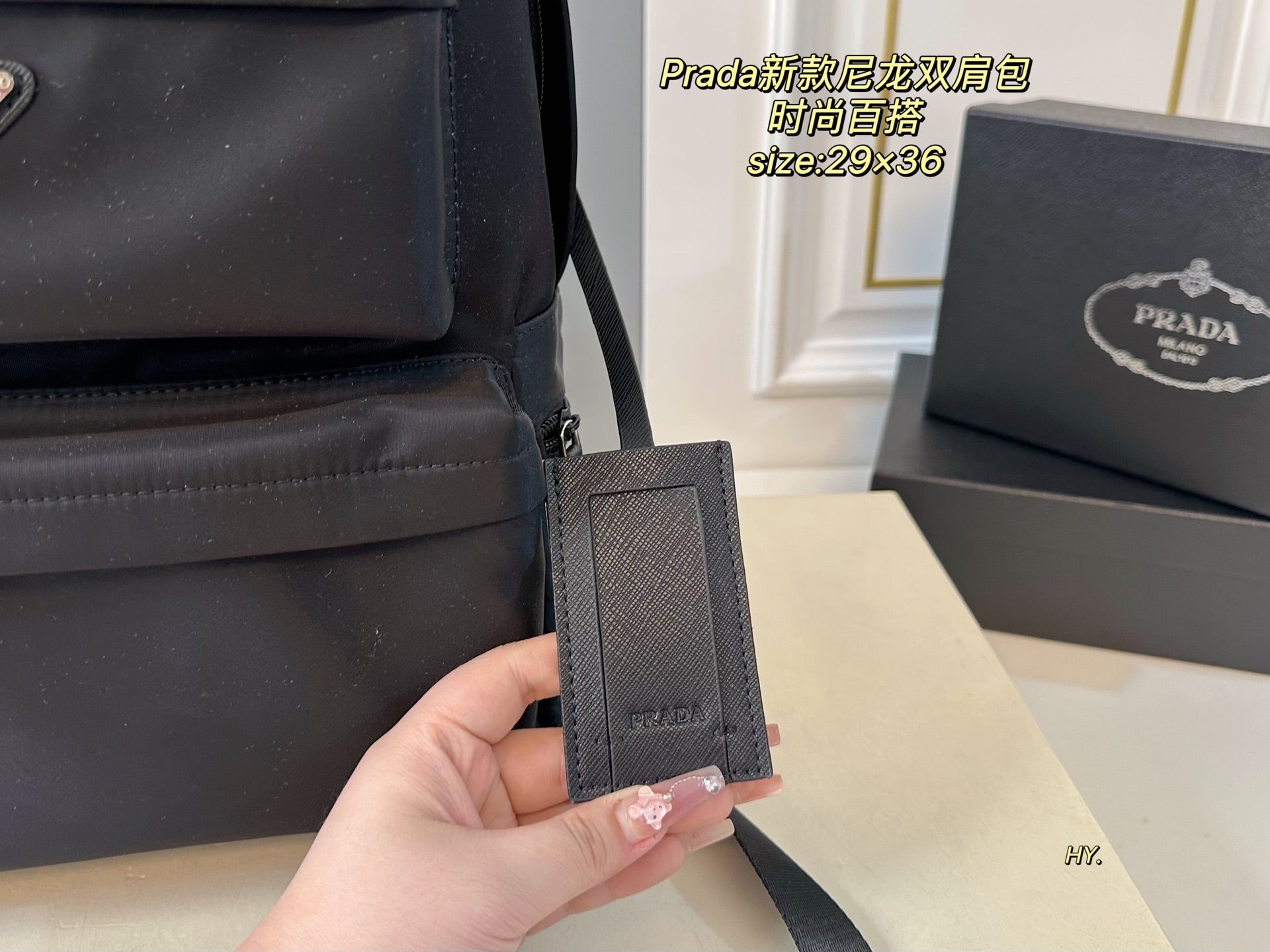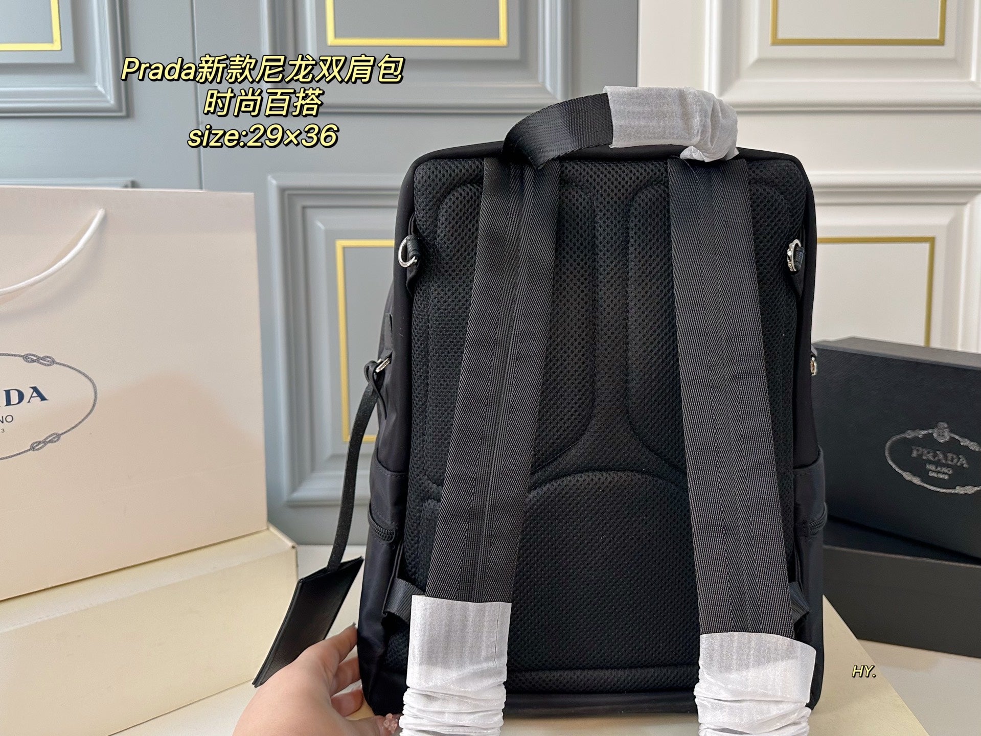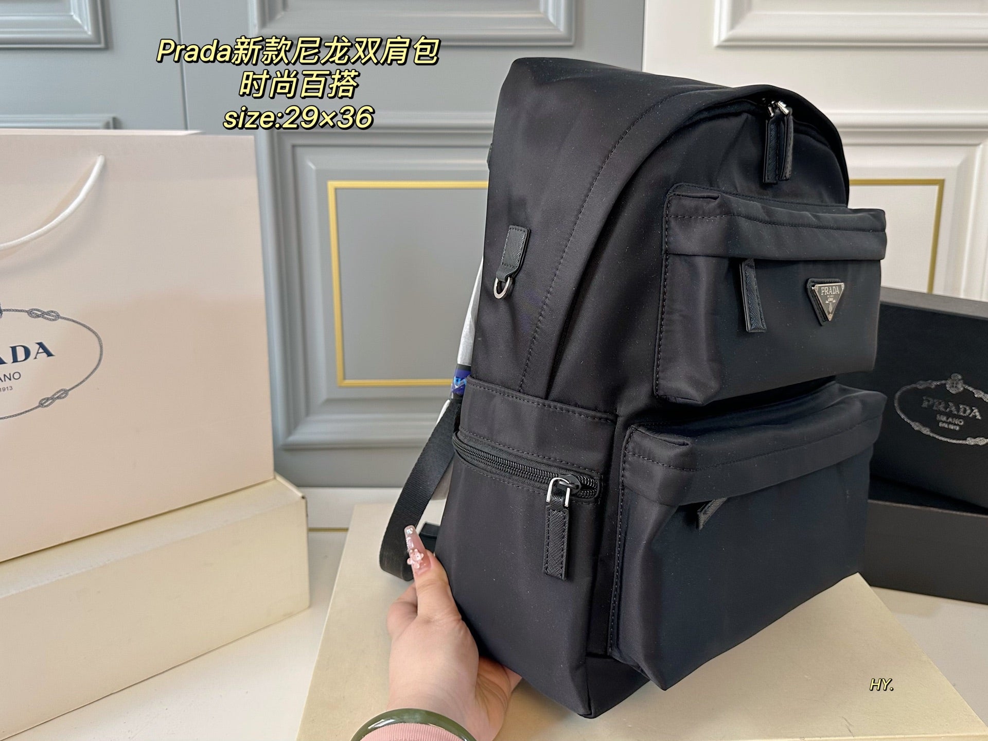 Discover the PRADA Large Backpack, designed for those who value both style and practicality. Measuring 29x36, this spacious backpack offers ample room for all your essentials. Crafted from high-quality materials, the superior workmanship ensures durability and a luxurious feel. Its fashionable appearance makes it a versatile accessory that complements any outfit, making it the perfect choice for everyday use or special occasions. Upgrade your accessory collection with this chic and functional PRADA backpack.