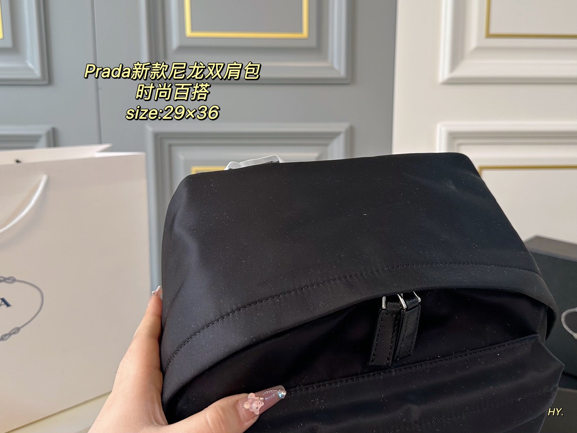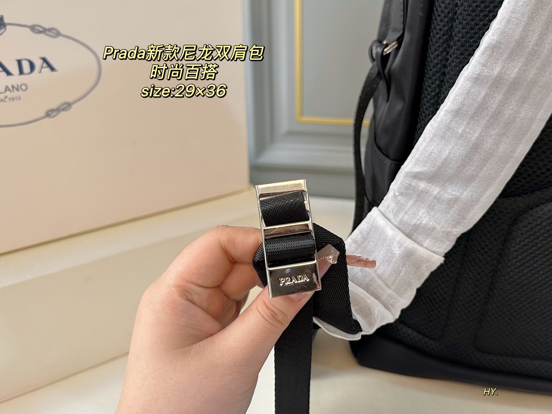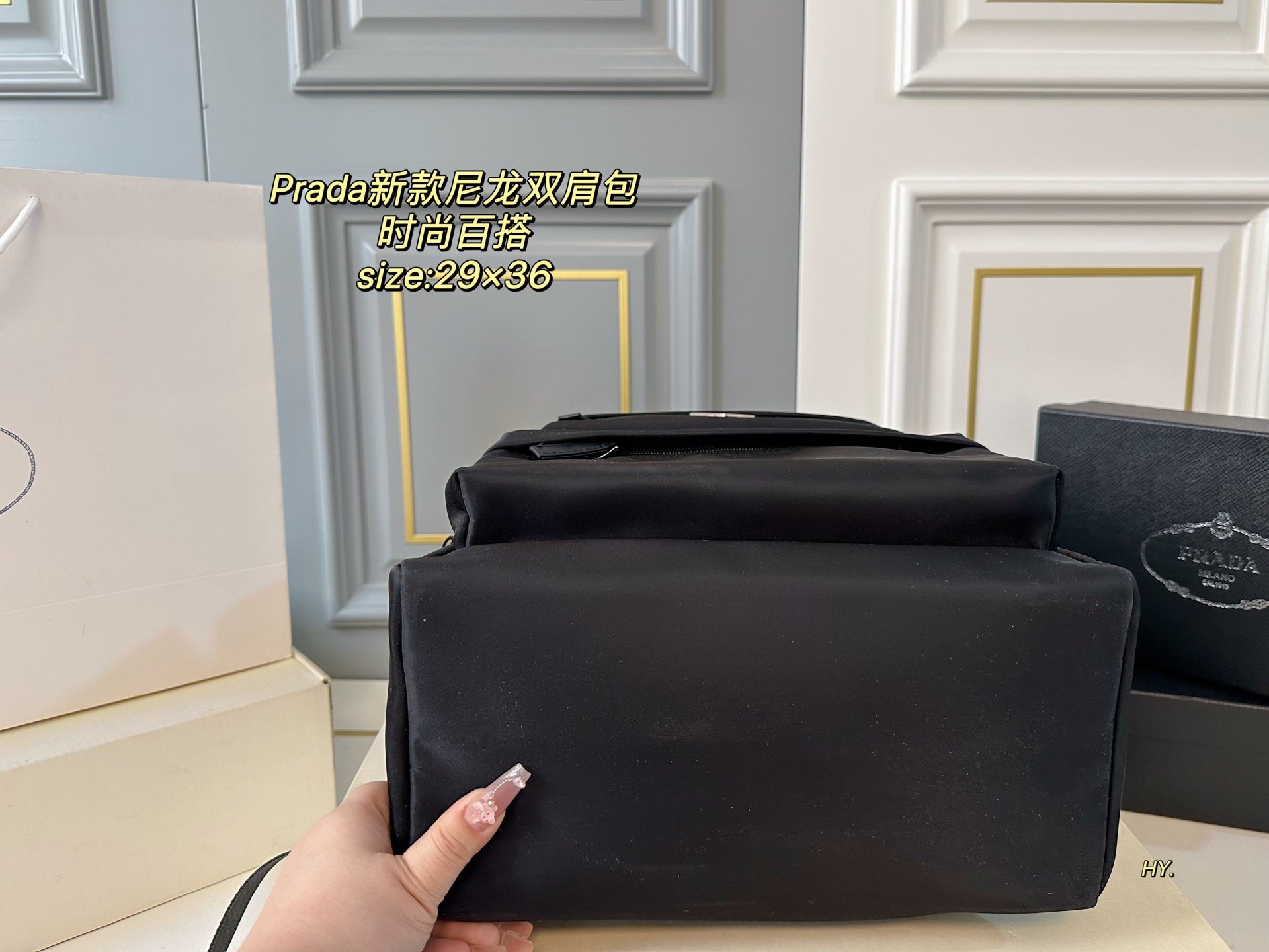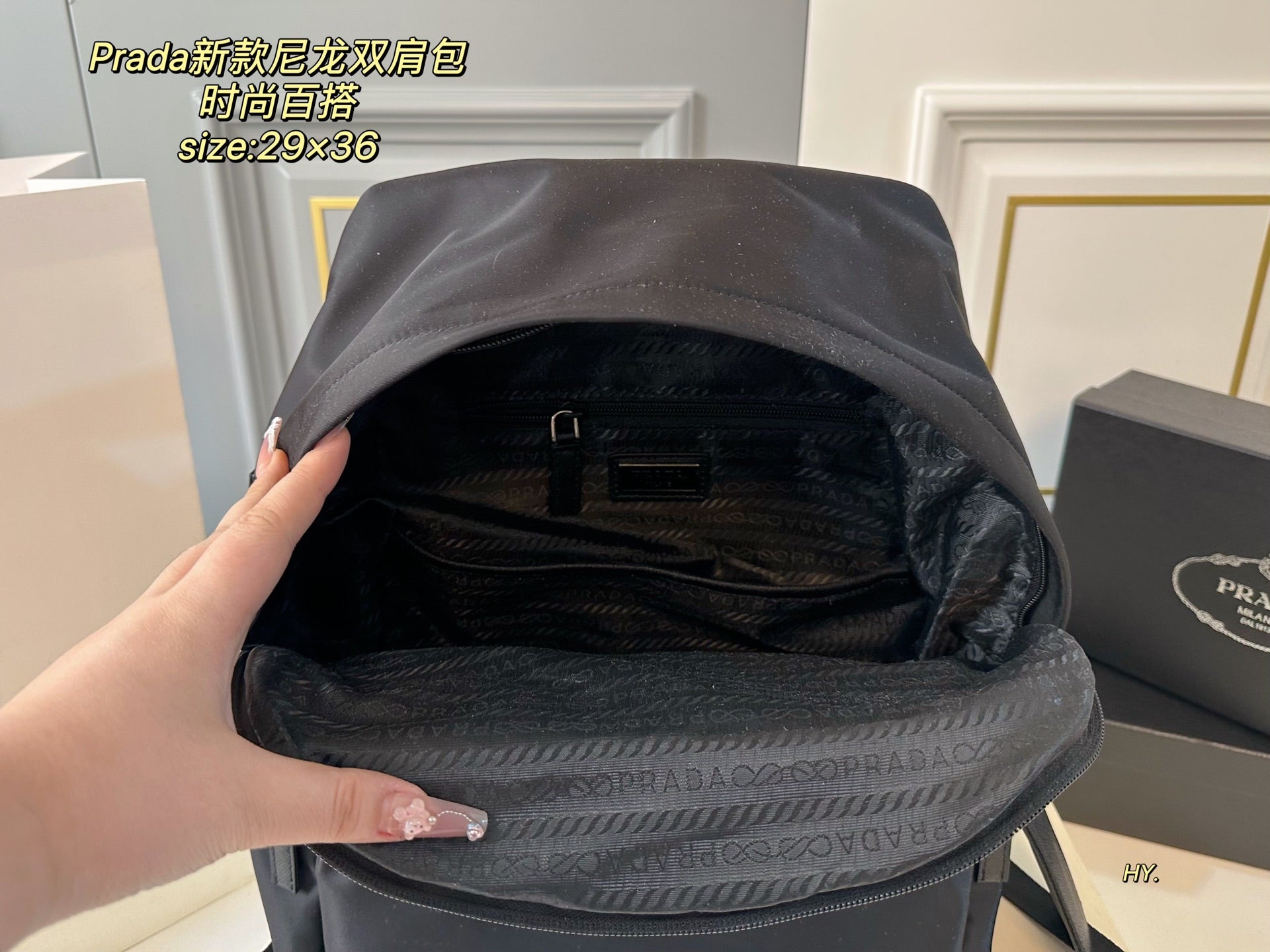 Discover the PRADA Large Backpack, designed for those who value both style and practicality. Measuring 29x36, this spacious backpack offers ample room for all your essentials. Crafted from high-quality materials, the superior workmanship ensures durability and a luxurious feel. Its fashionable appearance makes it a versatile accessory that complements any outfit, making it the perfect choice for everyday use or special occasions. Upgrade your accessory collection with this chic and functional PRADA backpack.