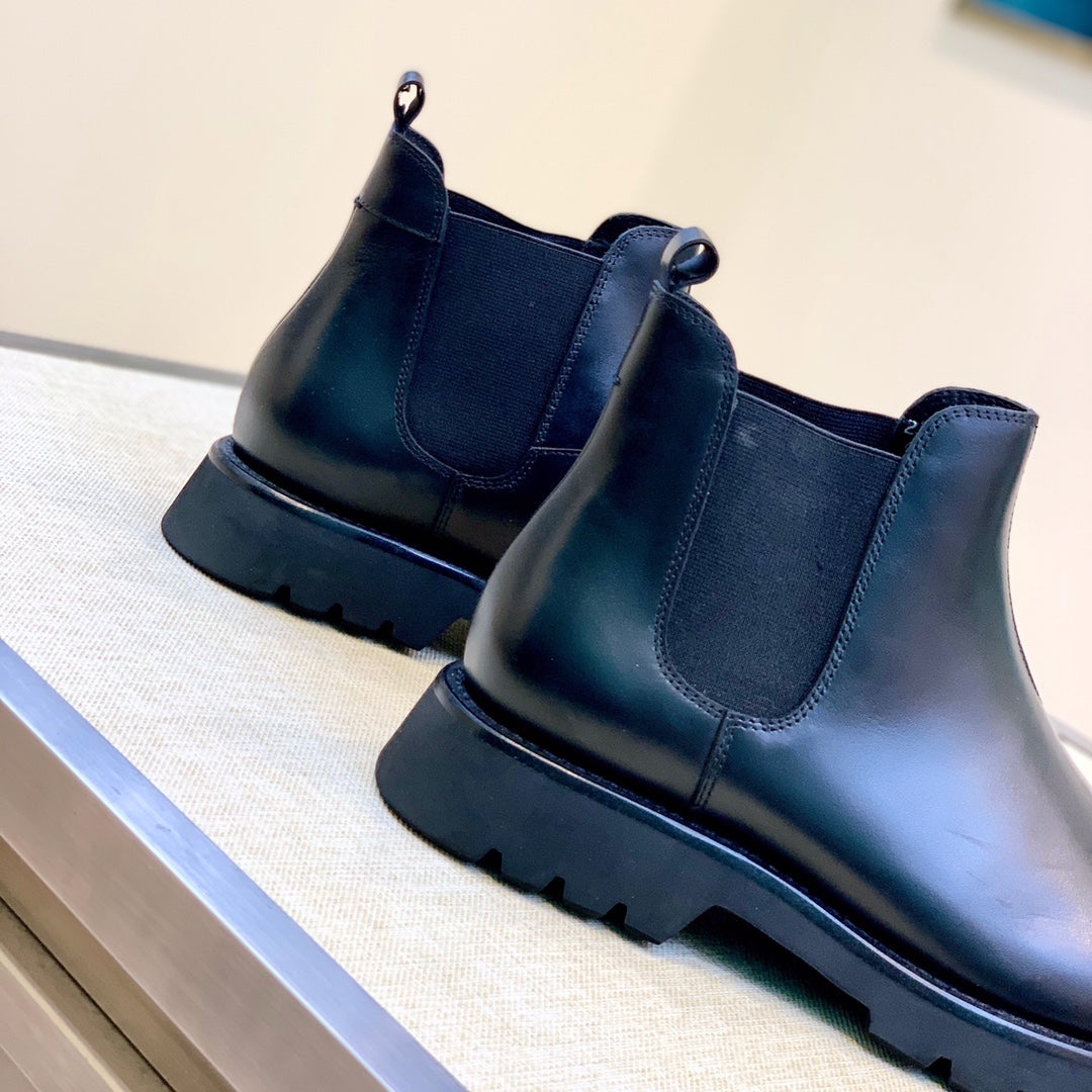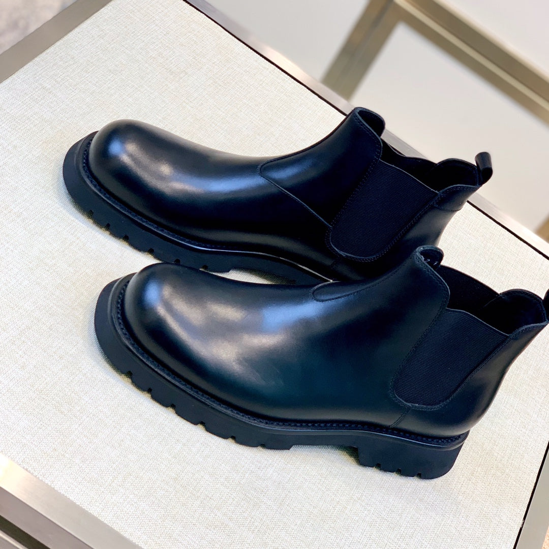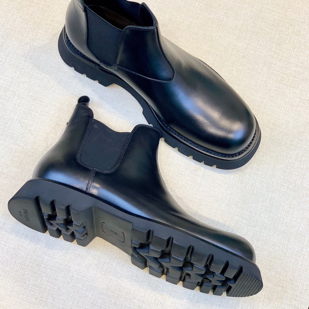 PRADA Men's Classic Round Toe Boots - Premium Cowhide Leather