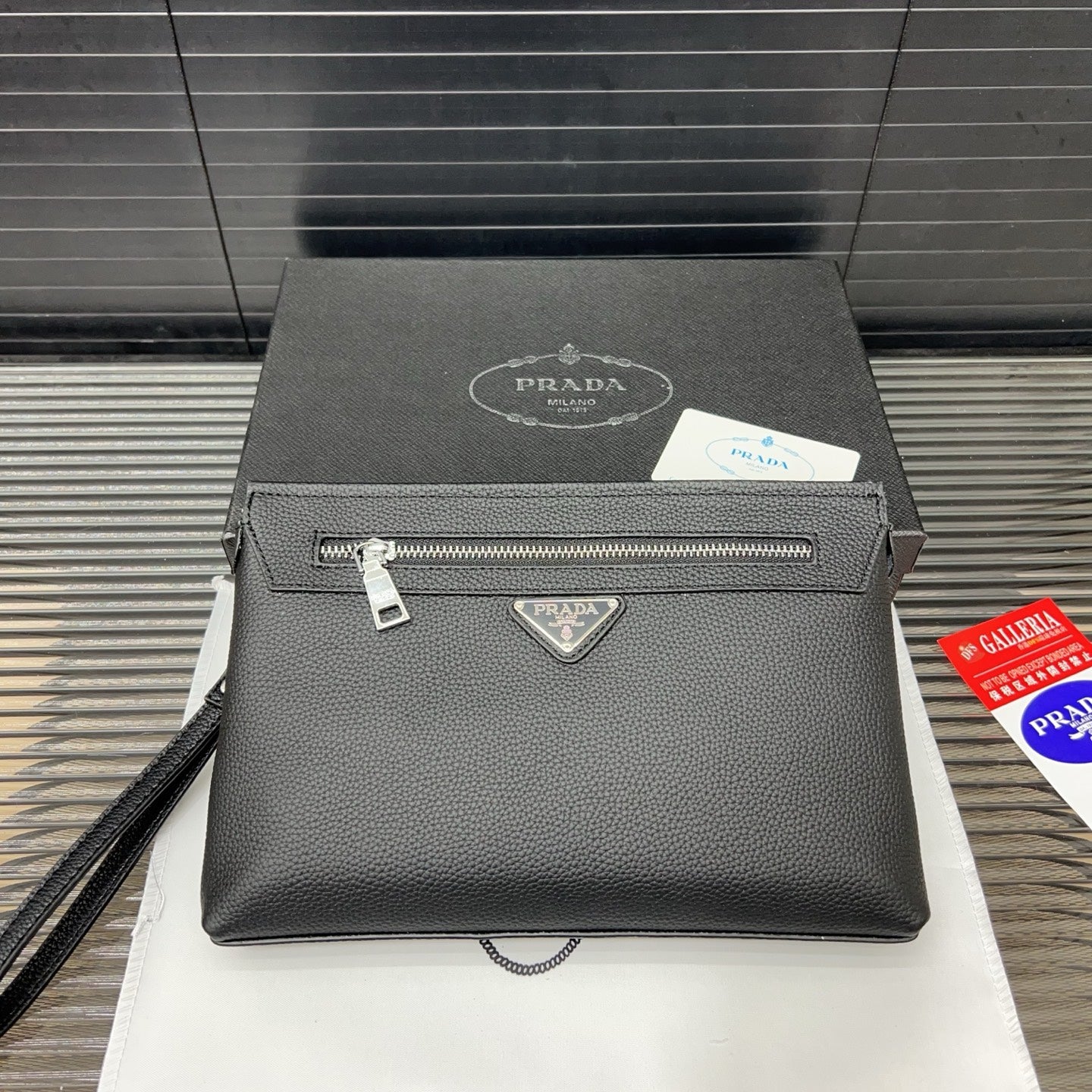 Prada Men’s First-Layer Cowhide Clutch - Classic and Versatile Design