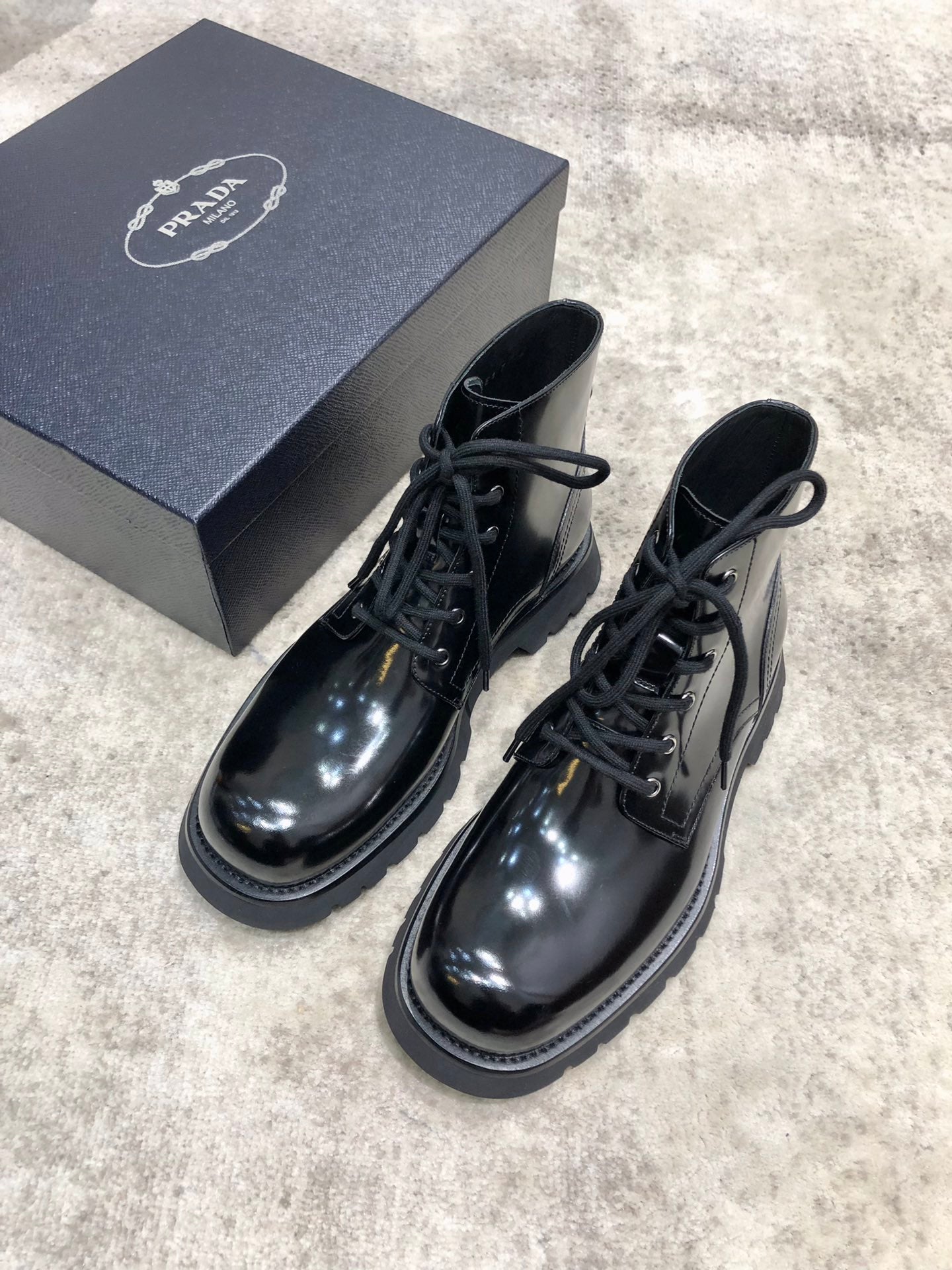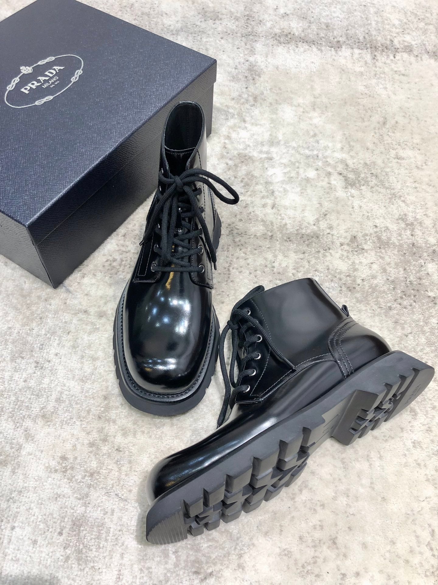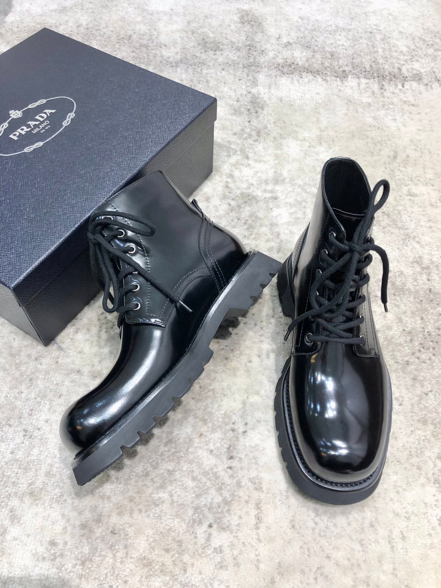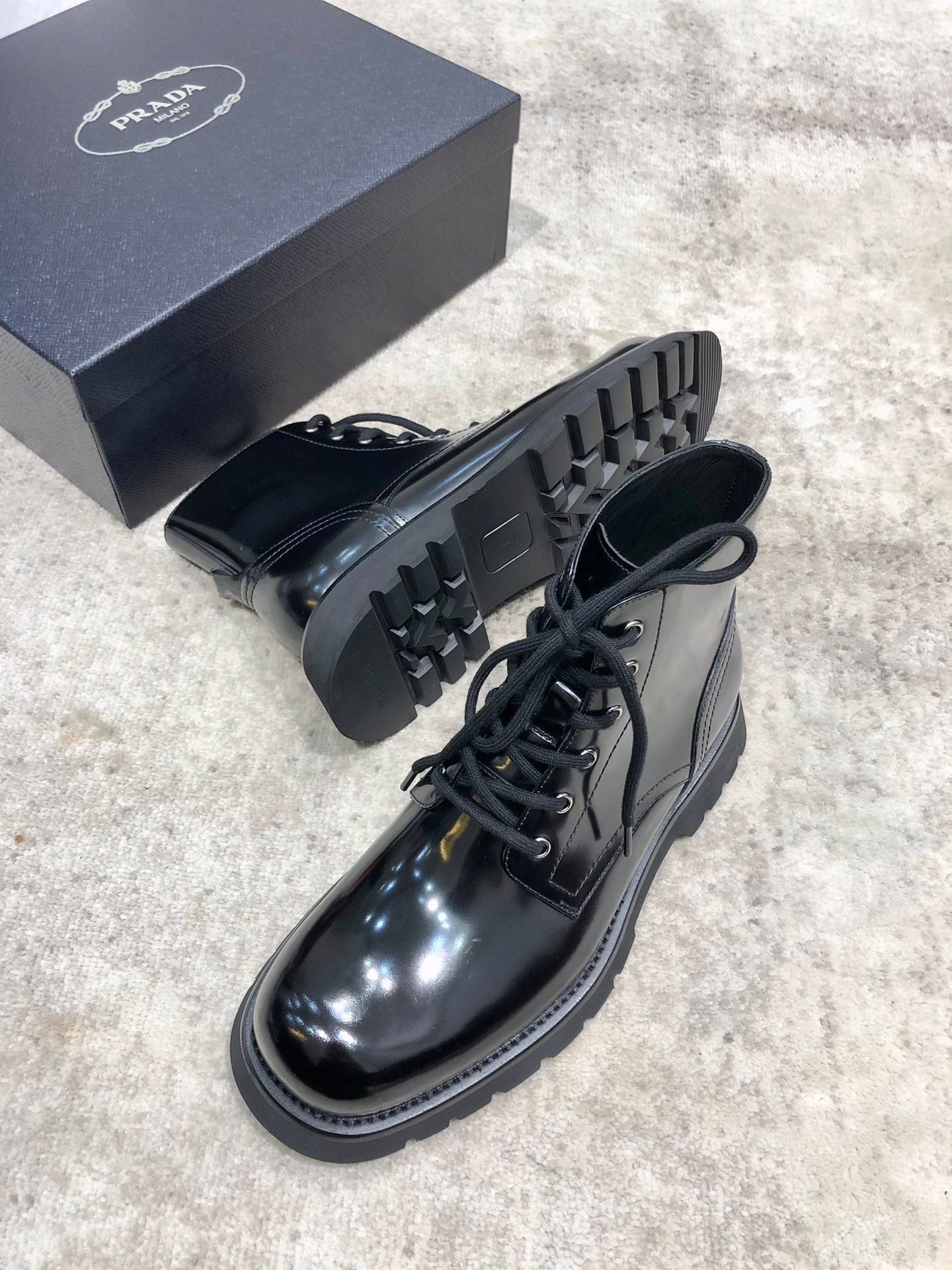 Prada Men's High-Top Short Boots - Premium Leather with Rubber Foam Outsole