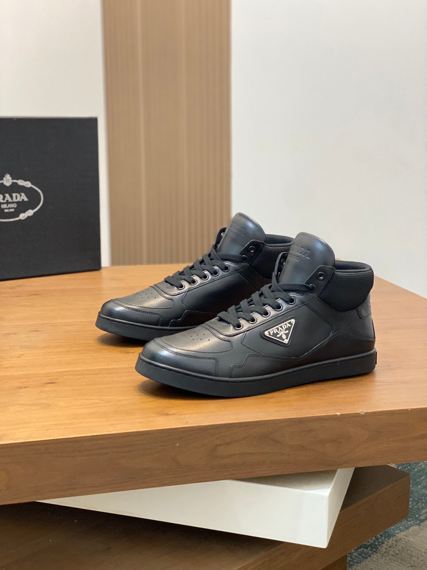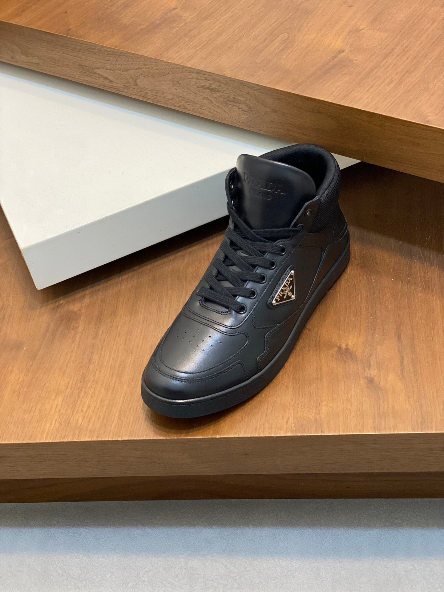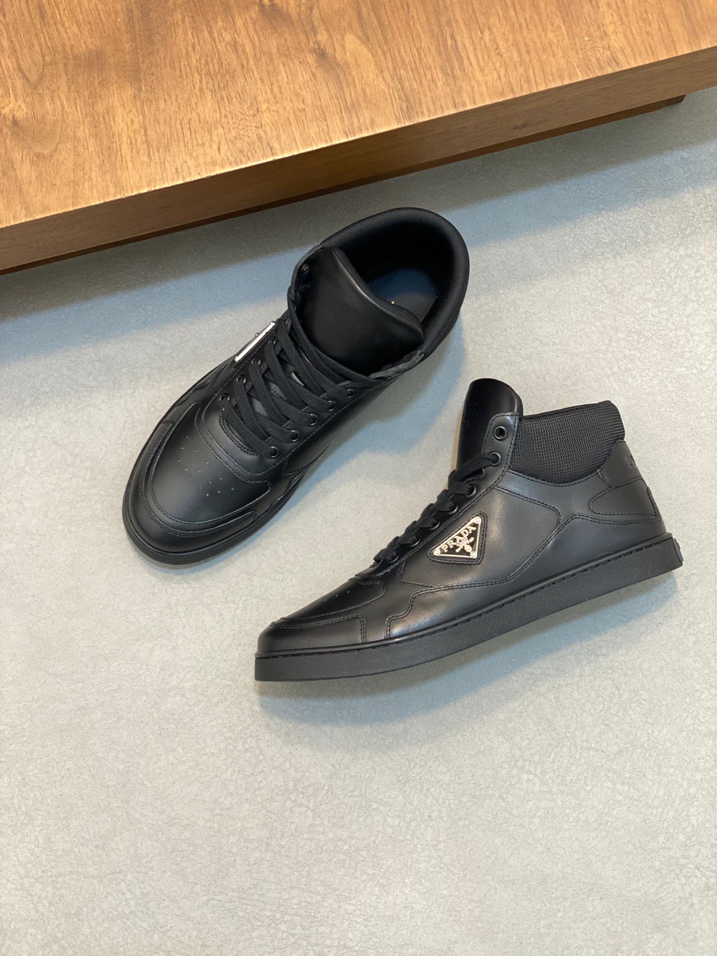 Elevate your footwear collection with the Prada Men's Sports Casual Boots, expertly crafted for both style and comfort. The upper features premium imported calfskin combined with exclusive mesh, providing a striking yet functional design. Adorned with the iconic P family's classic metal triangle enamel logo, these boots make a bold statement.