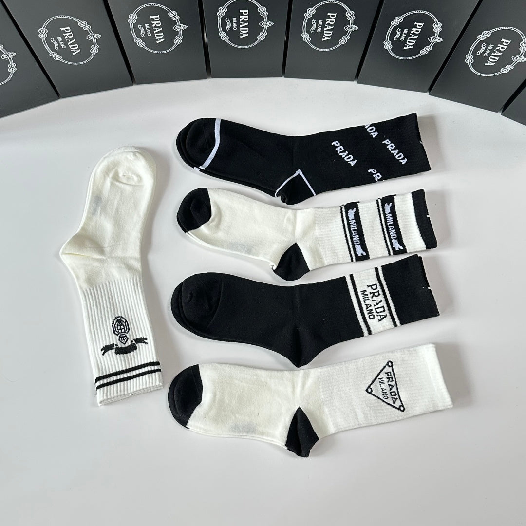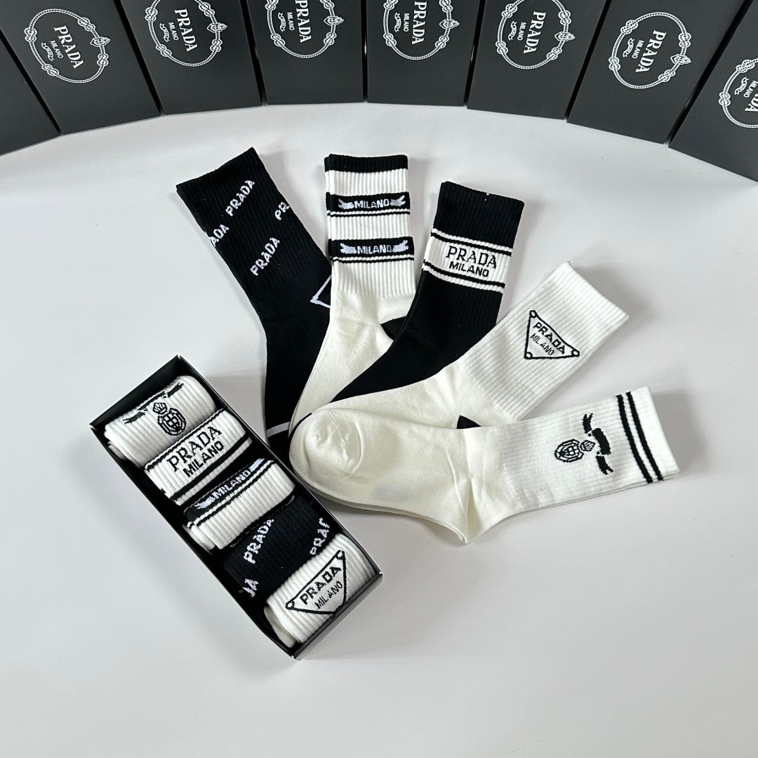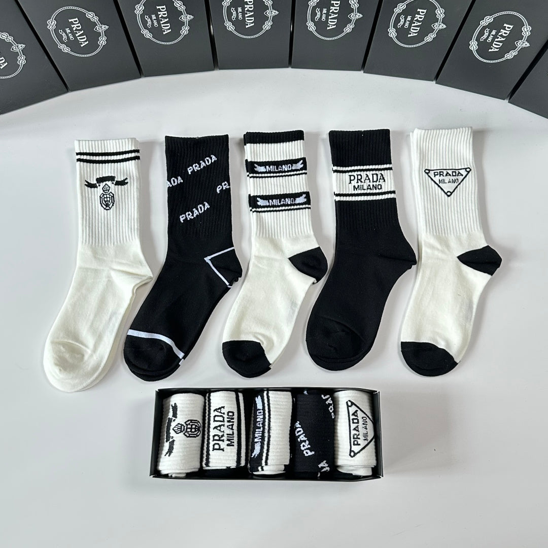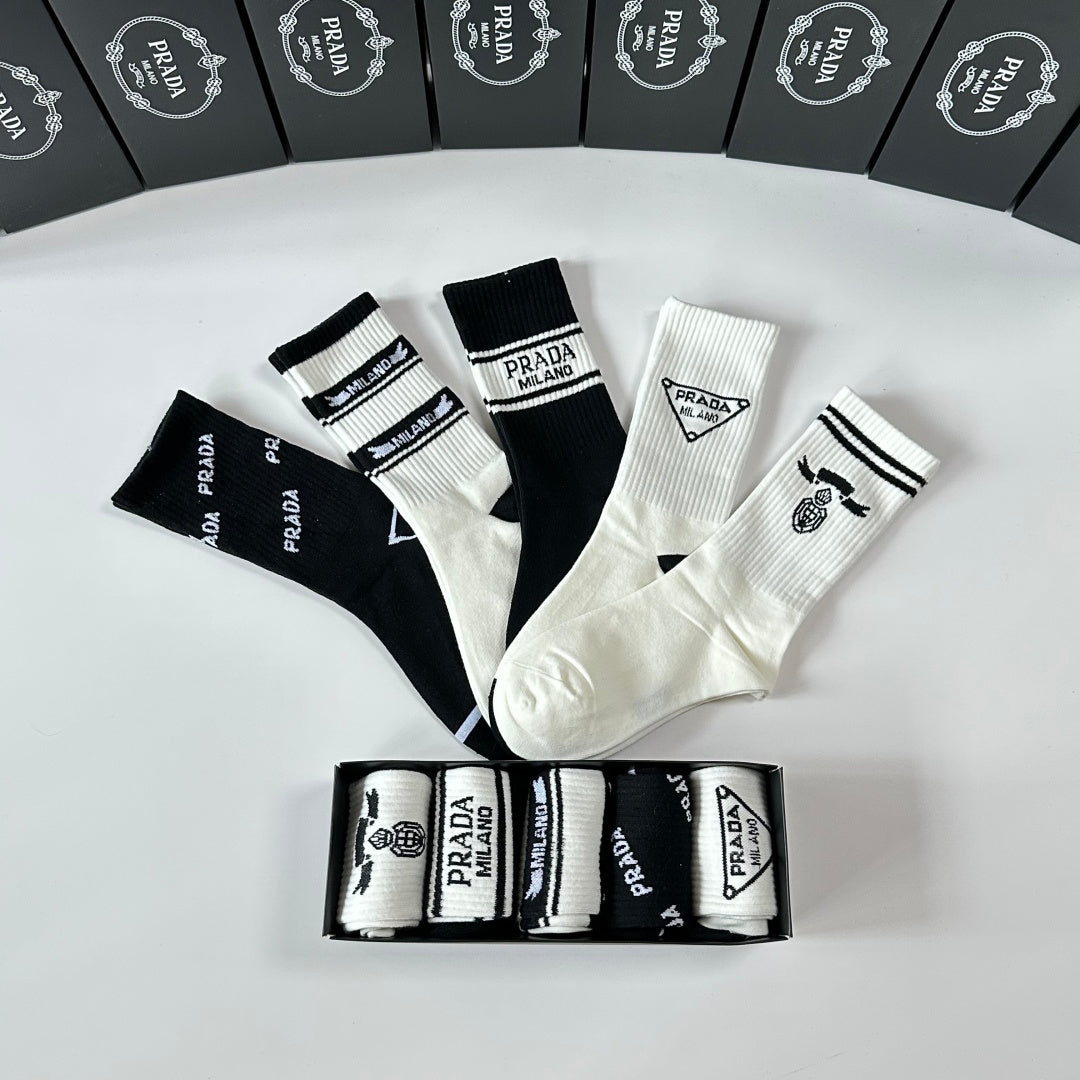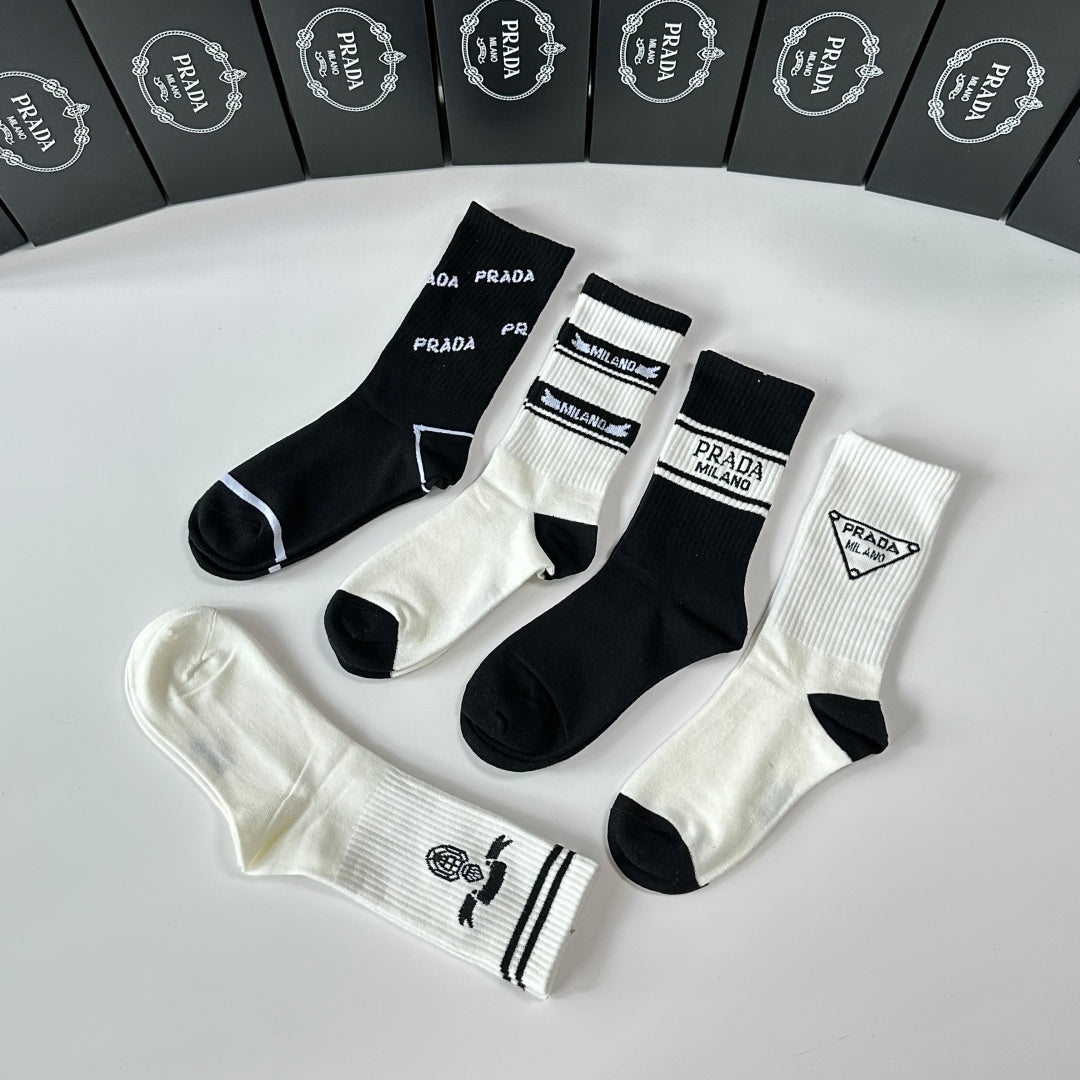 Prada Mid-Calf Socks - Set of 5 Pairs in Counter Packaging