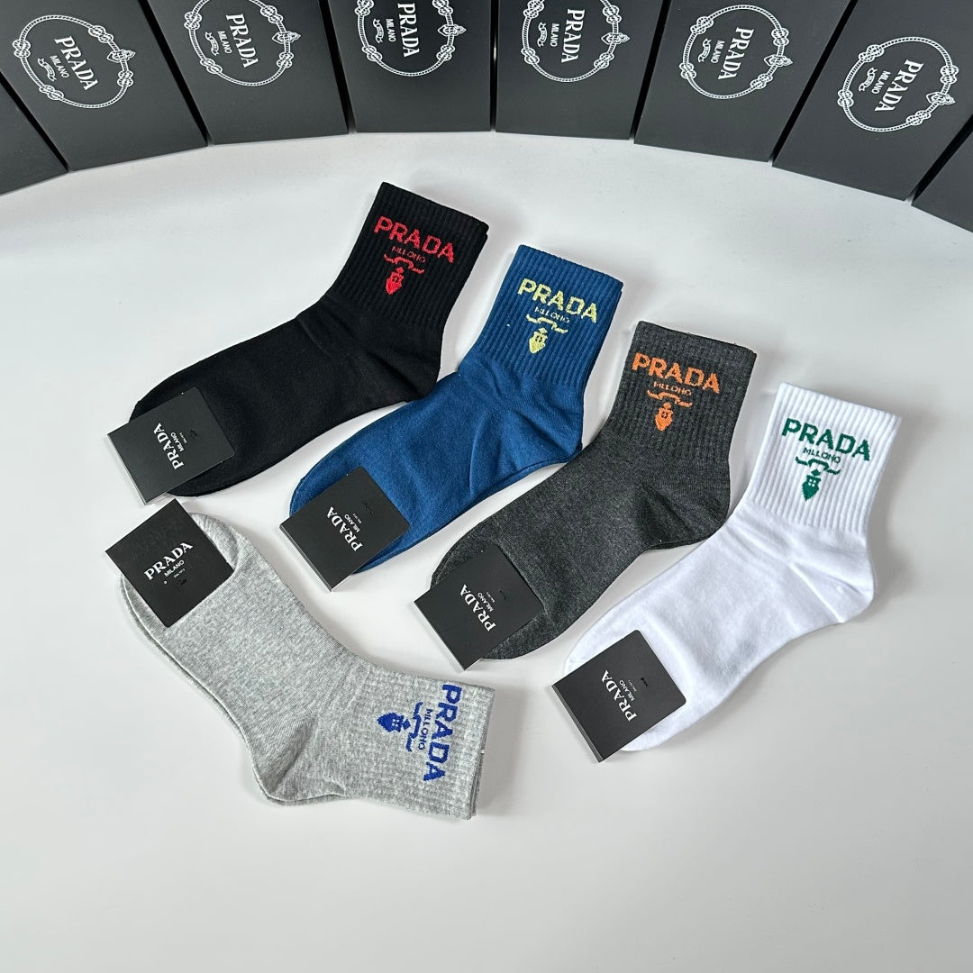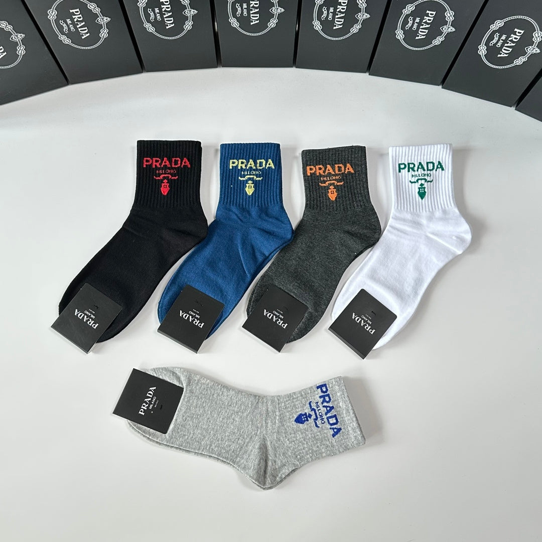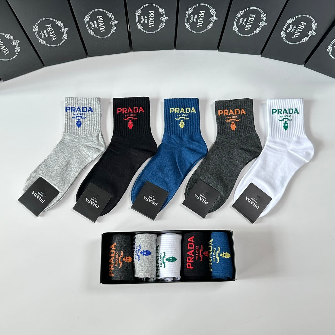 Prada Mid-Length Tube Socks – Set of 5 Stylish Pairs