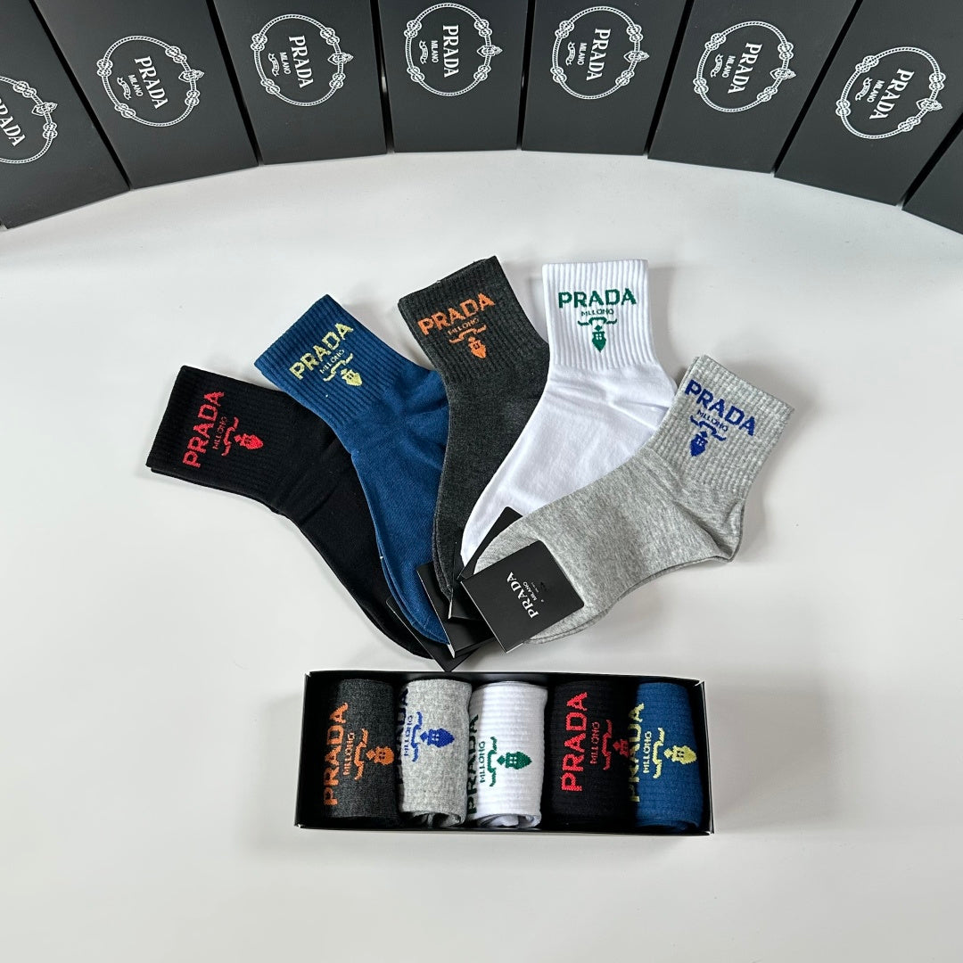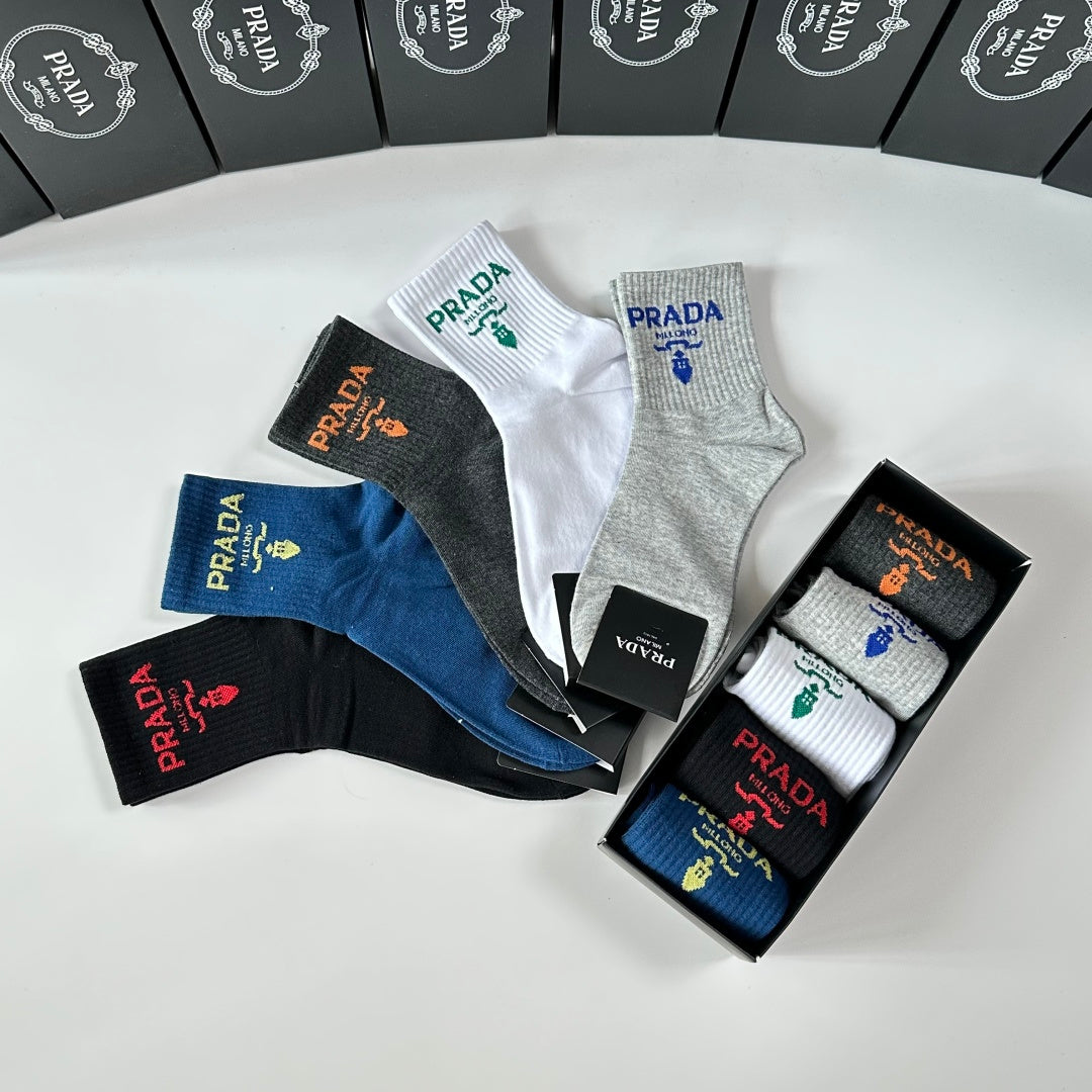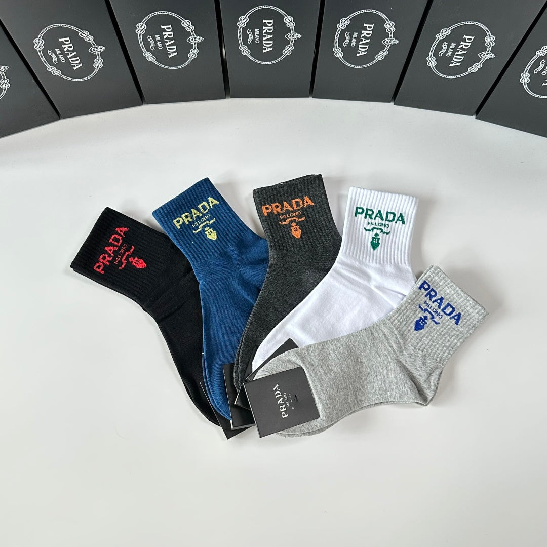 Prada Mid-Length Tube Socks – Set of 5 Stylish Pairs