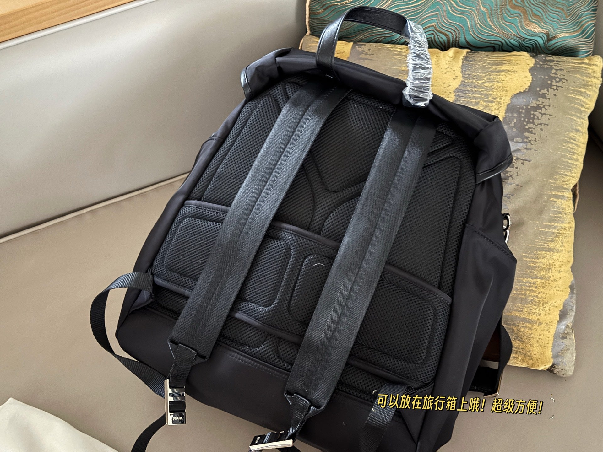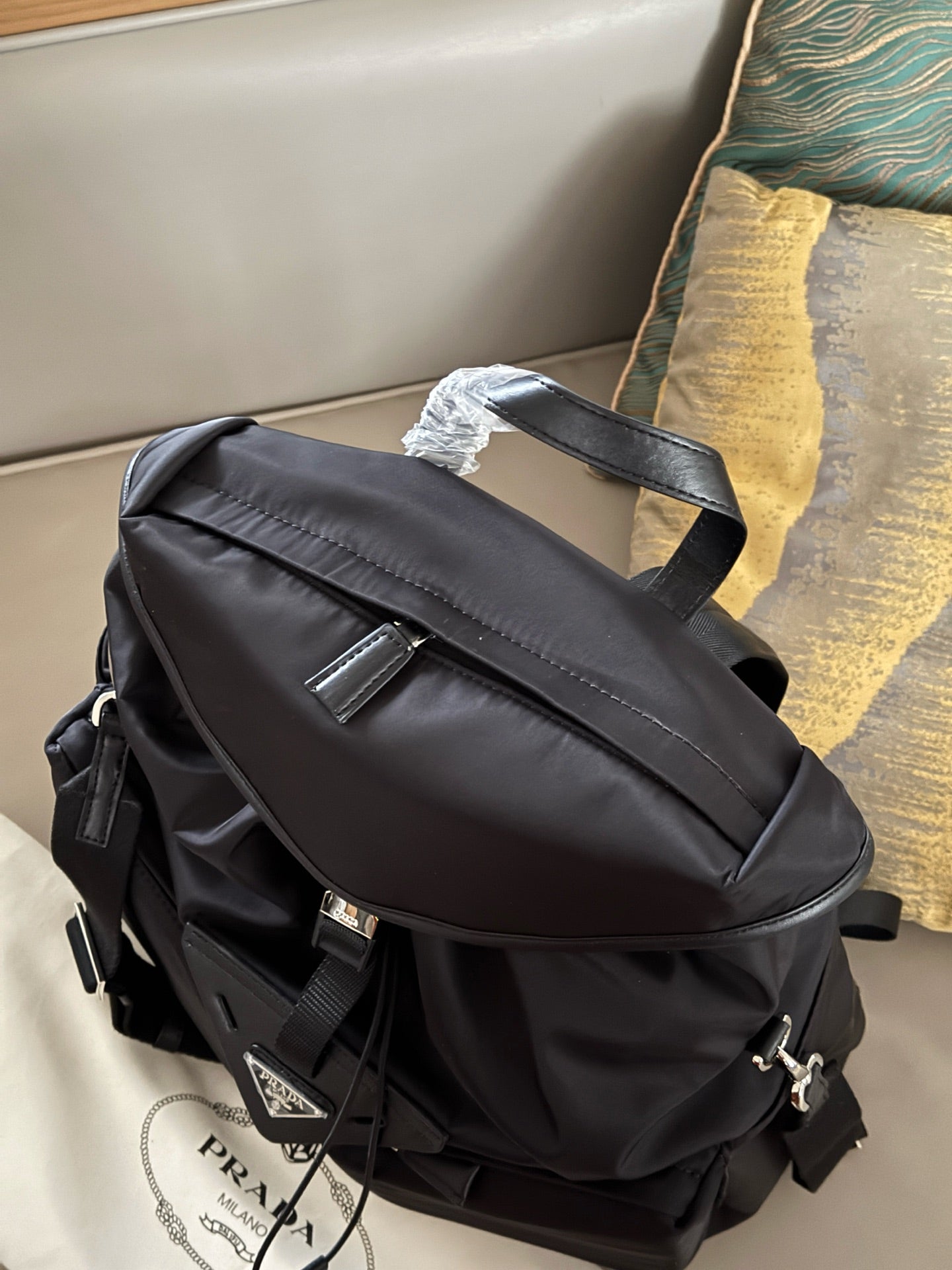 Discover the elegance and functionality of the Prada Nylon Backpack, measuring 37 x 46 cm. Celebrated for over 24 years, this backpack is designed for ultimate versatility: carry it on both shoulders, one shoulder, or by hand. With a simple layout and generous storage capacity, it easily accommodates your laptop and important documents. Crafted with attention to detail, this backpack is the perfect blend of style and practicality.