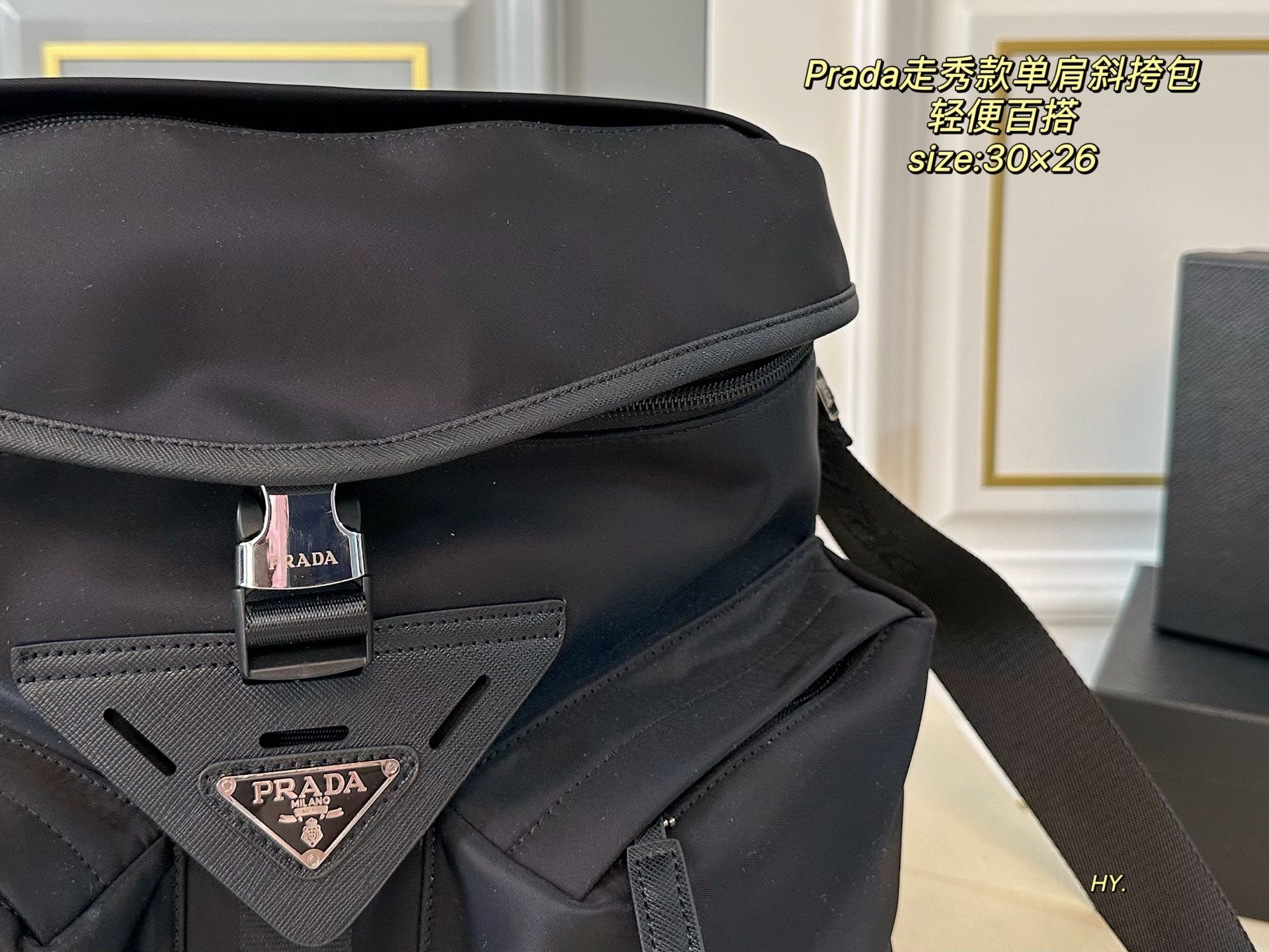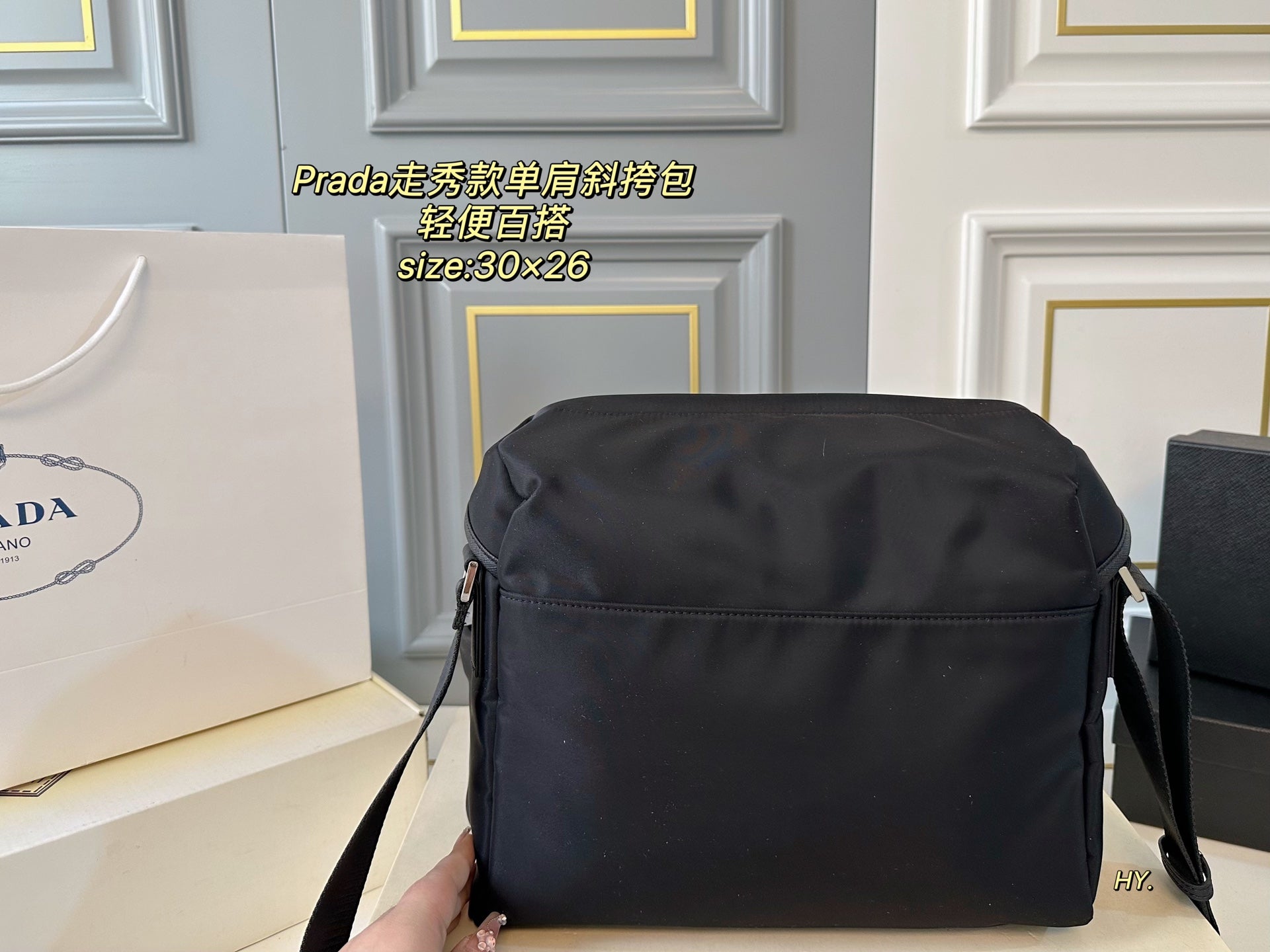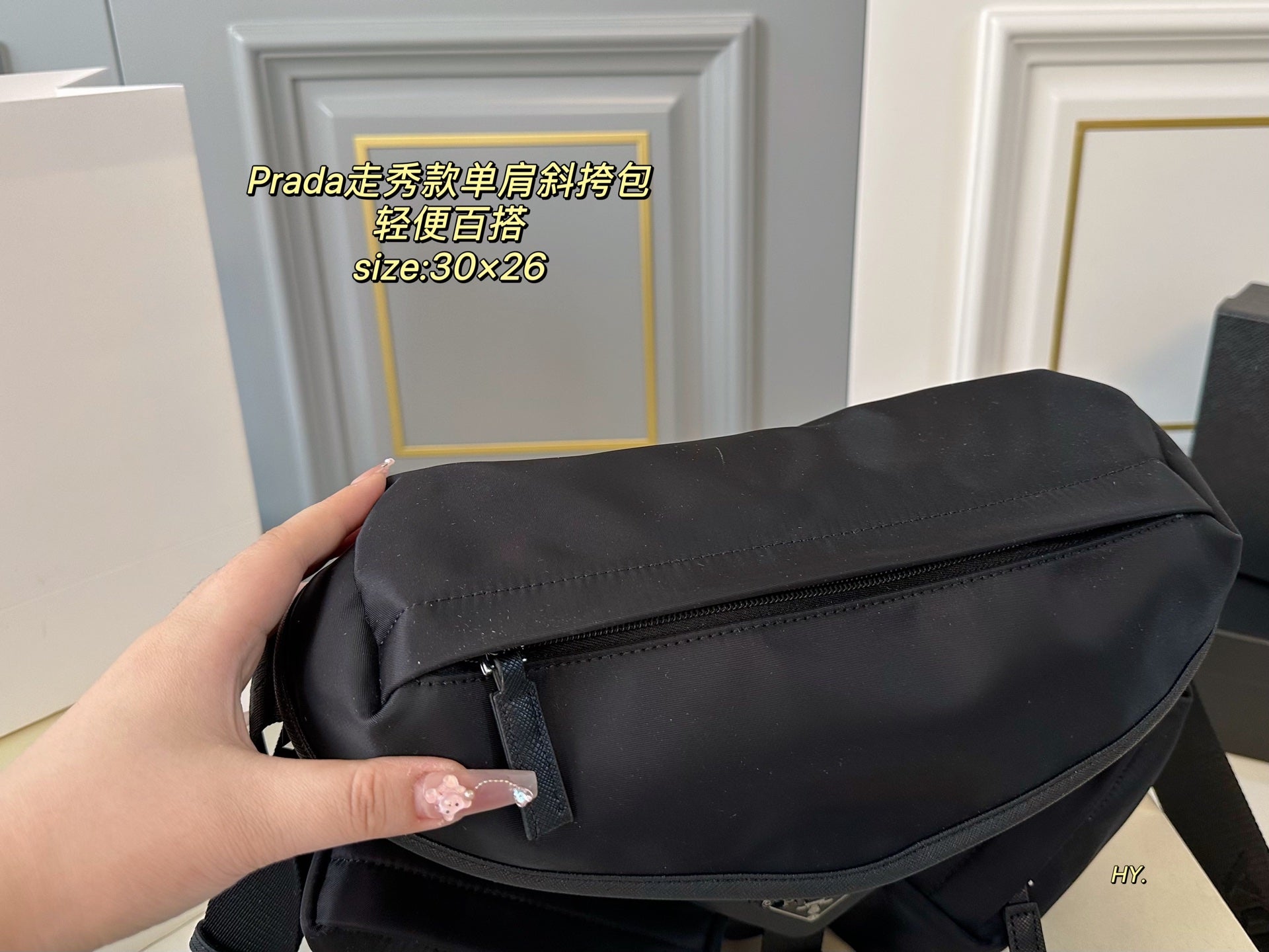 Elevate your style with the PRADA Nylon Catwalk Style Crossbody Bag. This sophisticated piece, measuring 30×26 cm, seamlessly blends fashion with practicality. Crafted from imported materials, it offers a delicate touch while ensuring exceptional wear-resistance. The bag features multiple compartments for effortless organization, making it your go-to accessory for everyday use. Adorned with PRADA's iconic triangle logo, this bag is a statement piece that is both recognizable and timeless. Perfect for those who appreciate elegance and functionality in one stylish package.
