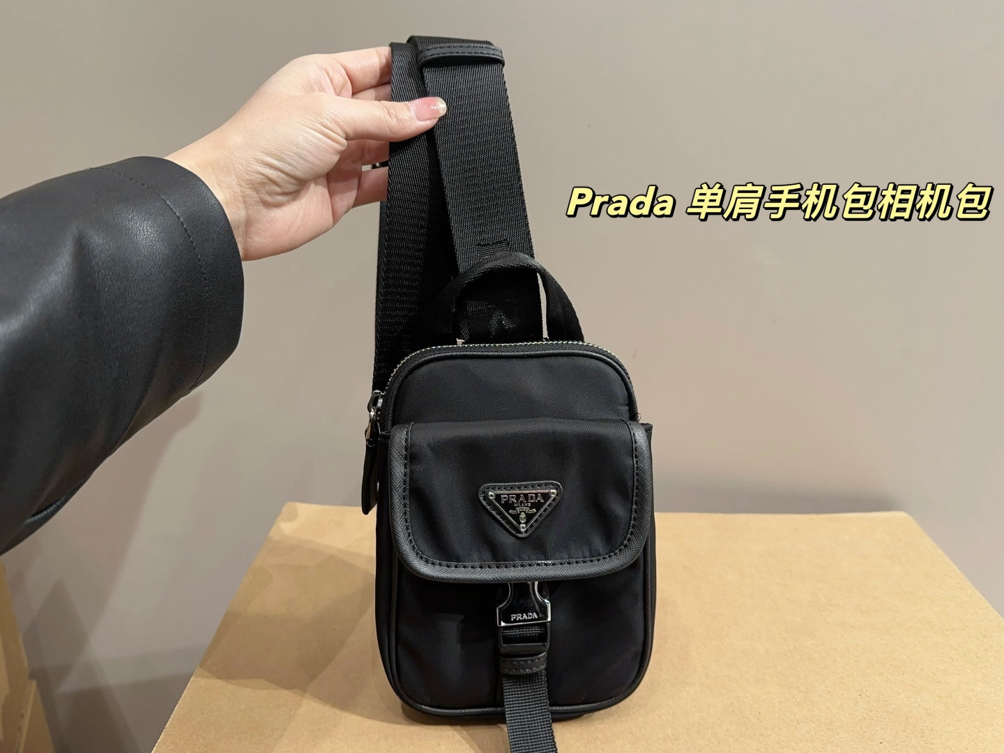 Elevate your style with the Prada Shoulder Phone Bag, designed for the modern, on-the-go individual. This versatile camera bag features a sleek silhouette and an adjustable shoulder strap for a customized fit. Keep your essentials organized with ample space for your phone and small accessories. Perfect for day-to-night adventures, this luxurious bag combines functionality with high-fashion aesthetics. Size 15.16 ensures a comfortable carry while making a bold statement. Add this iconic piece to your collection today!