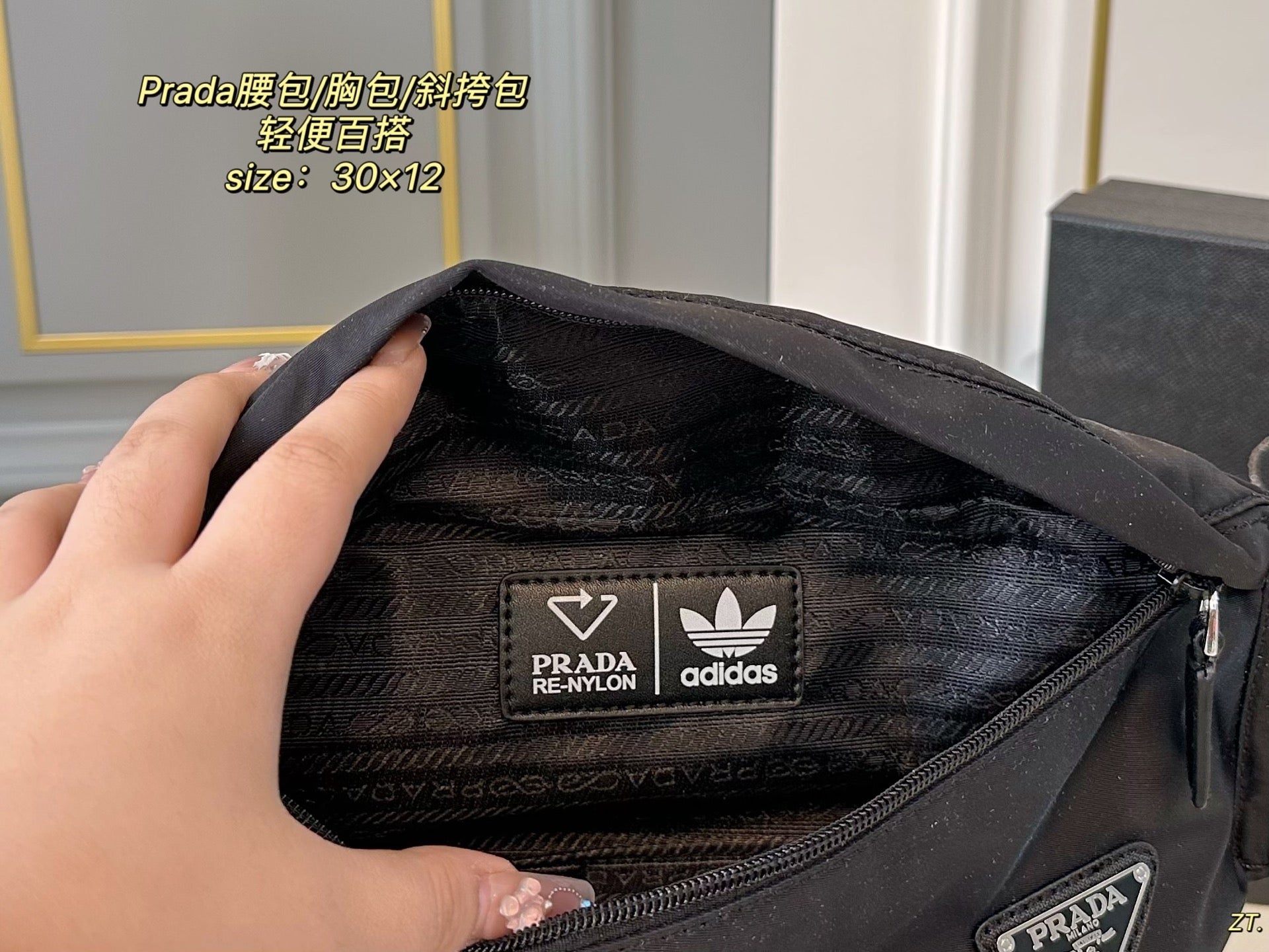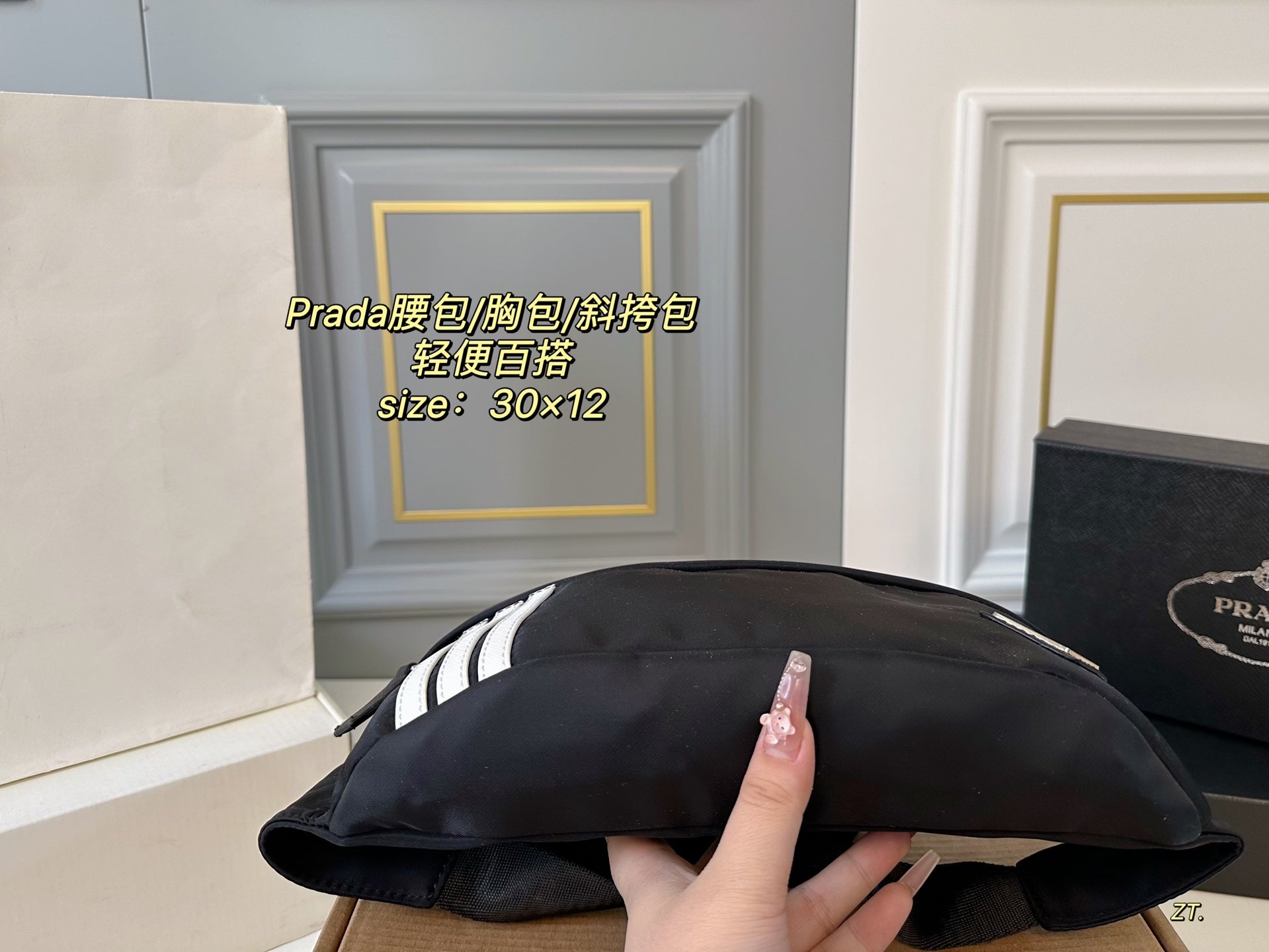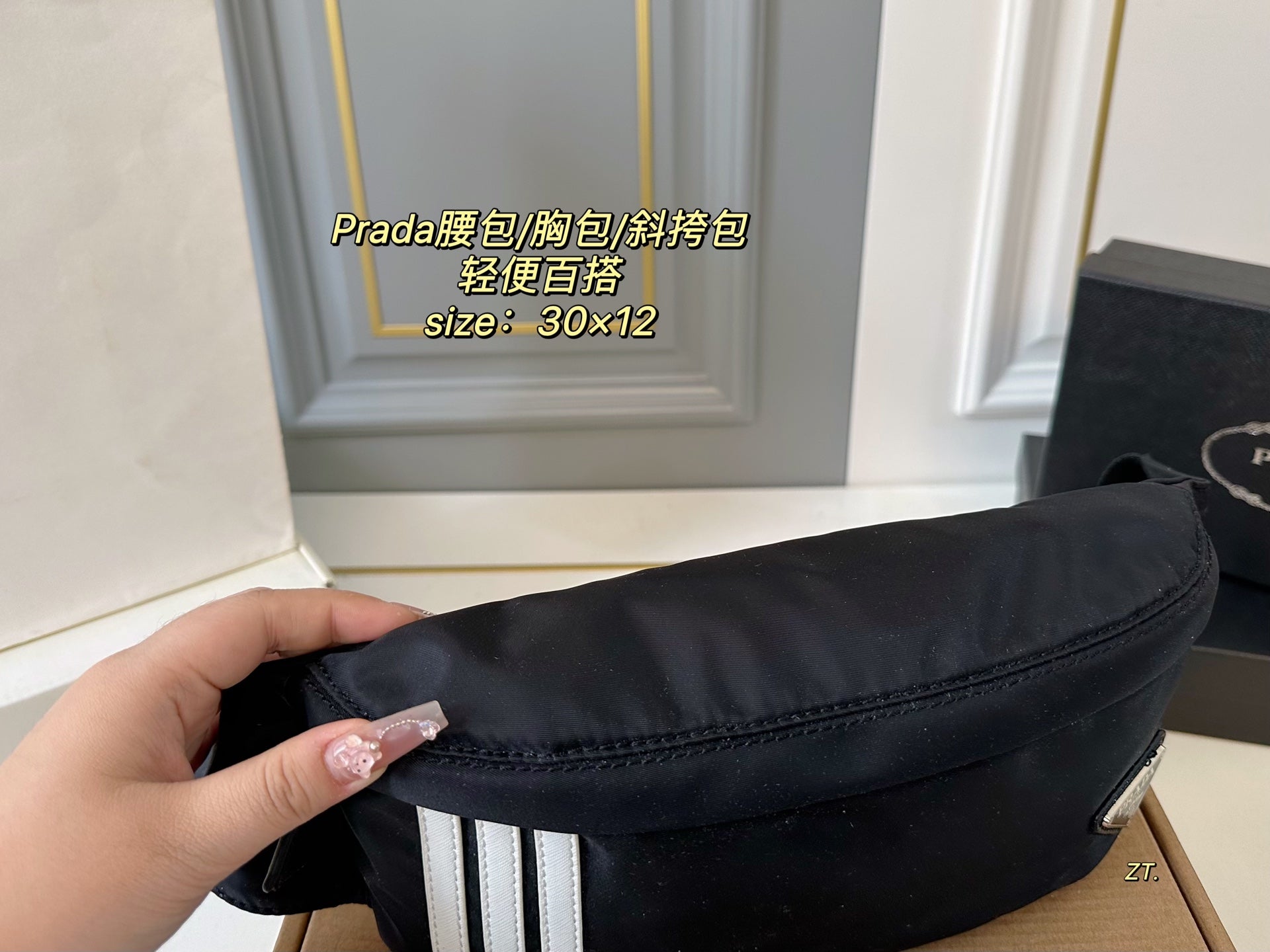 Elevate your accessory game with the PRADA Waist Bag, a versatile piece that serves as a waist, chest, or crossbody bag. Measuring 30×12 cm, this sophisticated design seamlessly blends practicality with style, making it a perfect addition to any outfit. Lightweight and fashionable, it enhances your silhouette while offering ample space for your essentials. Wear it daily to infuse a touch of luxury into your look. Experience the perfect combination of convenience and elegance with PRADA.