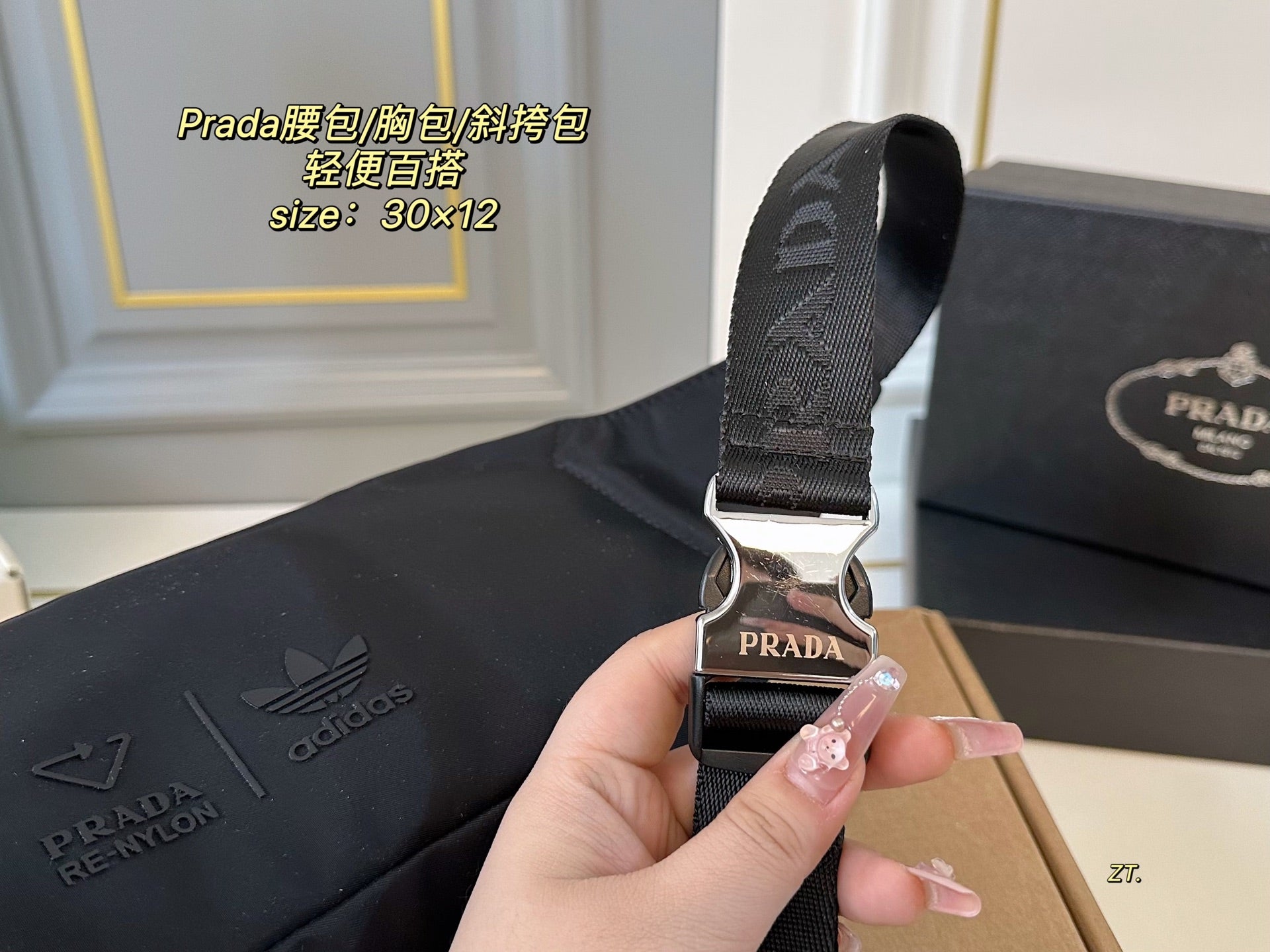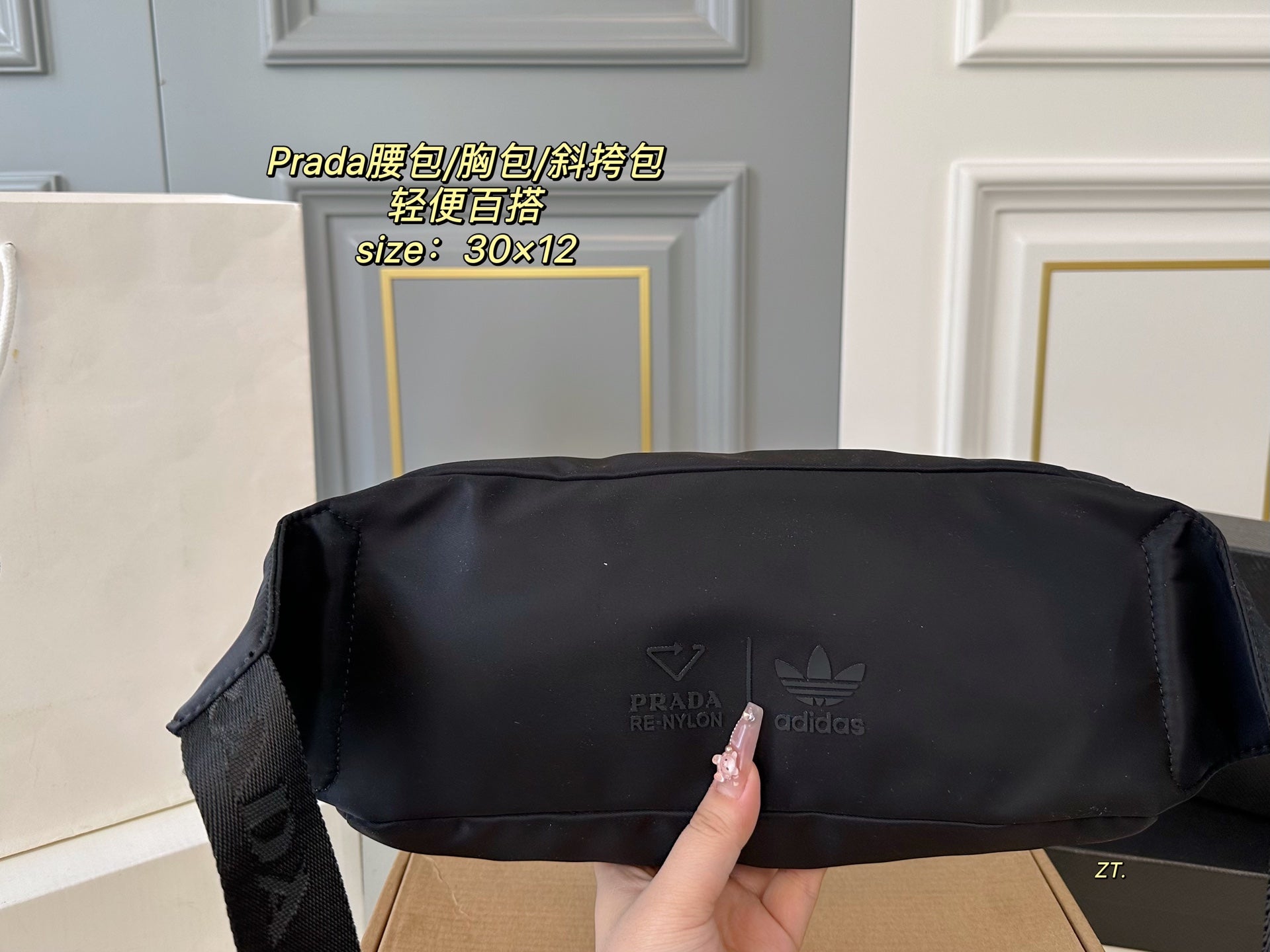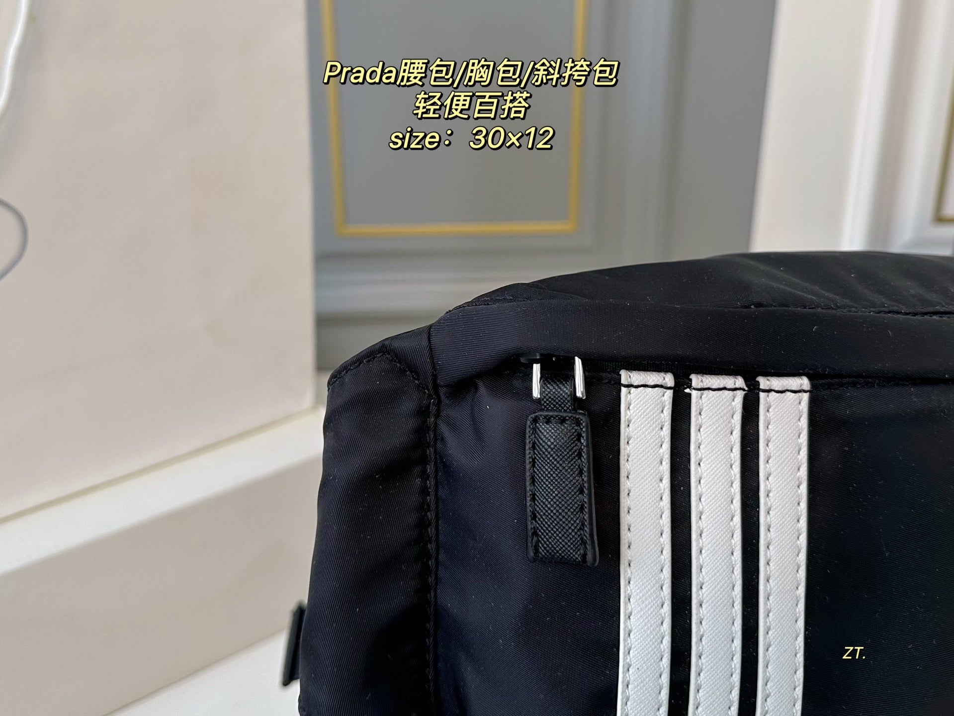 Elevate your accessory game with the PRADA Waist Bag, a versatile piece that serves as a waist, chest, or crossbody bag. Measuring 30×12 cm, this sophisticated design seamlessly blends practicality with style, making it a perfect addition to any outfit. Lightweight and fashionable, it enhances your silhouette while offering ample space for your essentials. Wear it daily to infuse a touch of luxury into your look. Experience the perfect combination of convenience and elegance with PRADA.