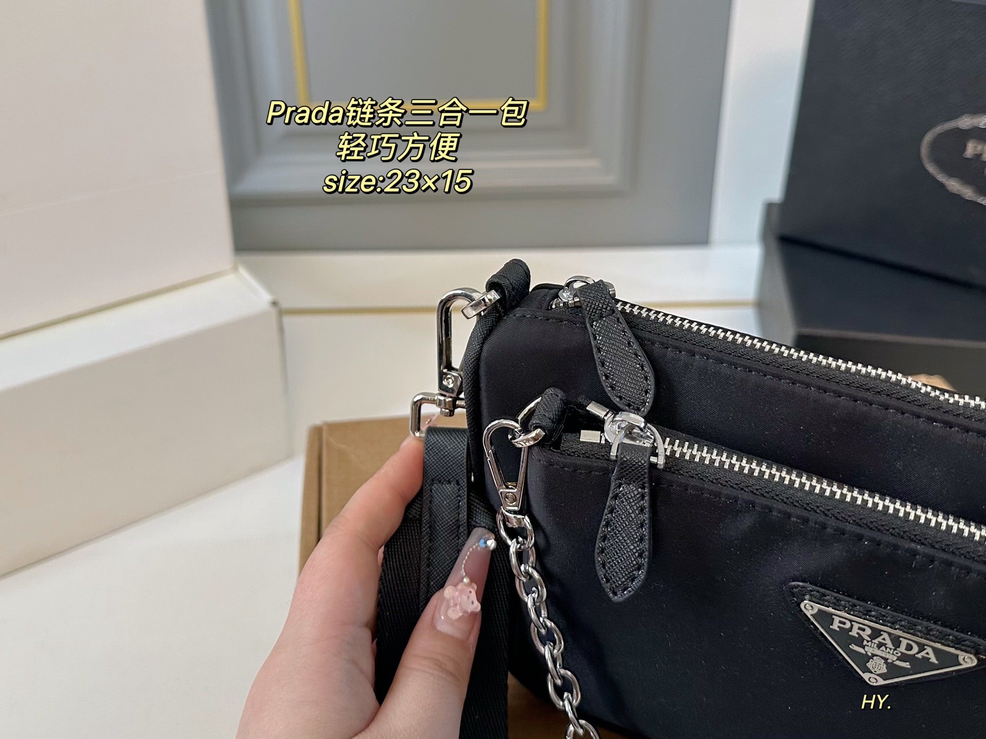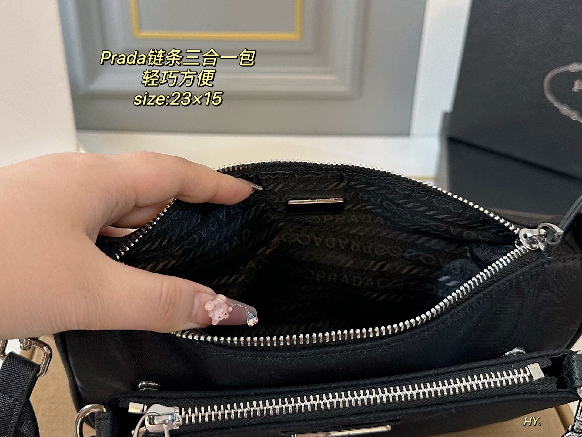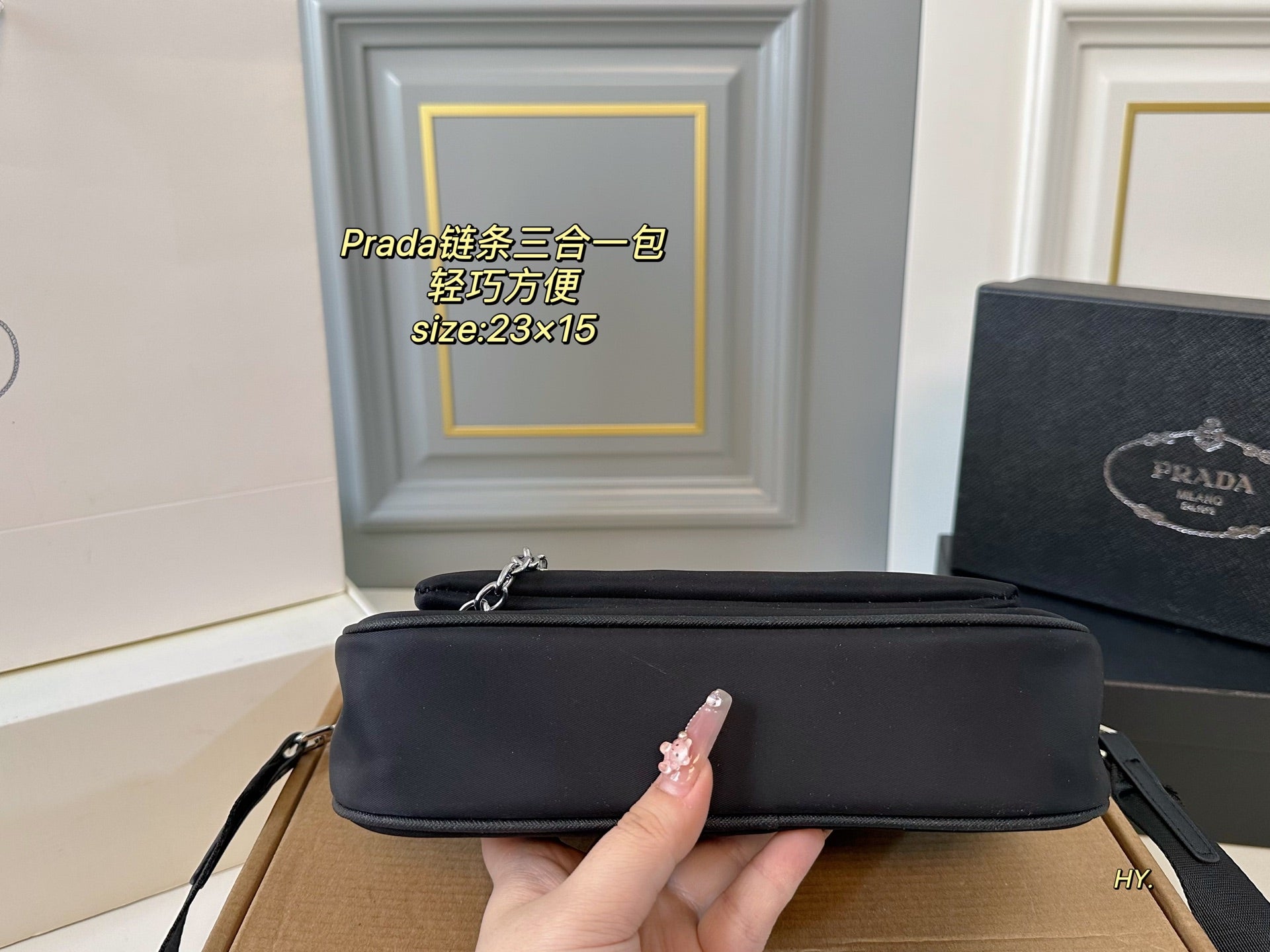 Discover the versatility of the PRADA Chain Hobo Bag, designed for the modern lifestyle. Measuring 23x15 cm, this chic bag features adjustable wide shoulder straps for added comfort and a perfect fit. Its innovative three-in-one design seamlessly adapts to your daily needs, whether you're commuting, heading out, or traveling. Made from high-quality imported nylon fabric, this lightweight bag offers ample space without compromising on style. Elevate your accessory game with this stylish and functional must-have.