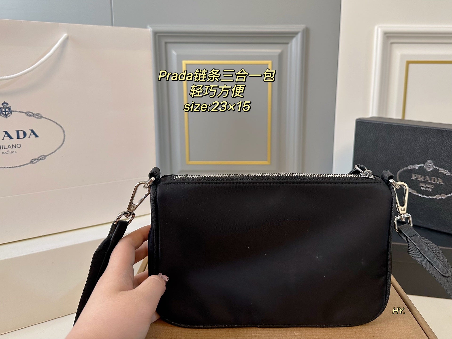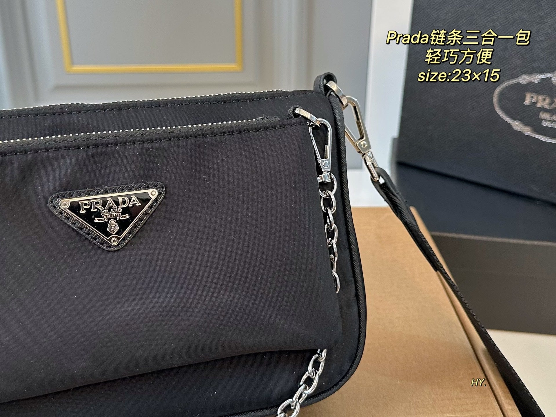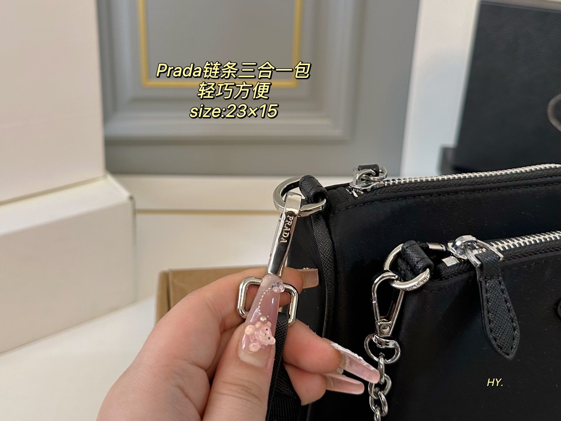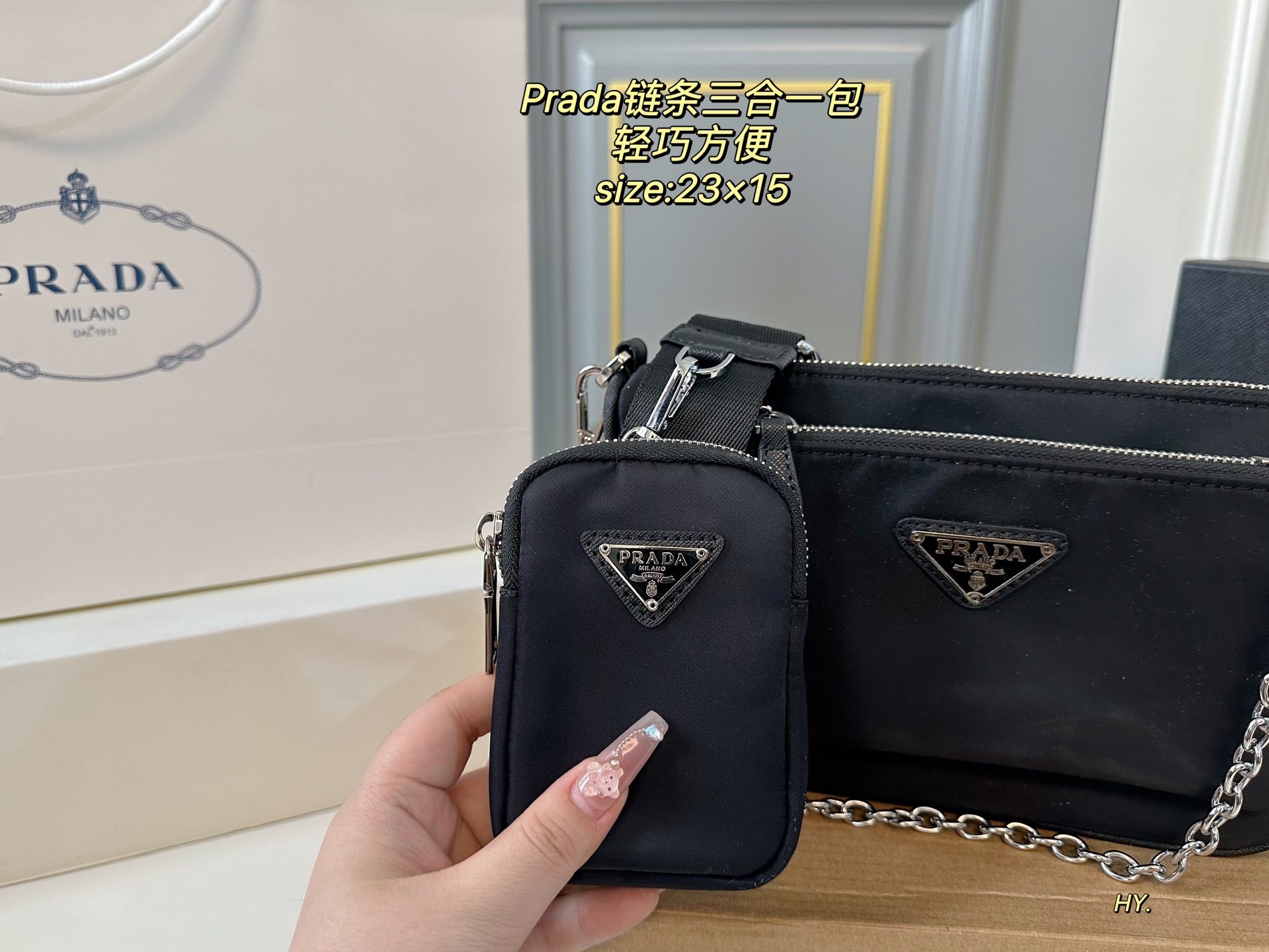 Discover the versatility of the PRADA Chain Hobo Bag, designed for the modern lifestyle. Measuring 23x15 cm, this chic bag features adjustable wide shoulder straps for added comfort and a perfect fit. Its innovative three-in-one design seamlessly adapts to your daily needs, whether you're commuting, heading out, or traveling. Made from high-quality imported nylon fabric, this lightweight bag offers ample space without compromising on style. Elevate your accessory game with this stylish and functional must-have.