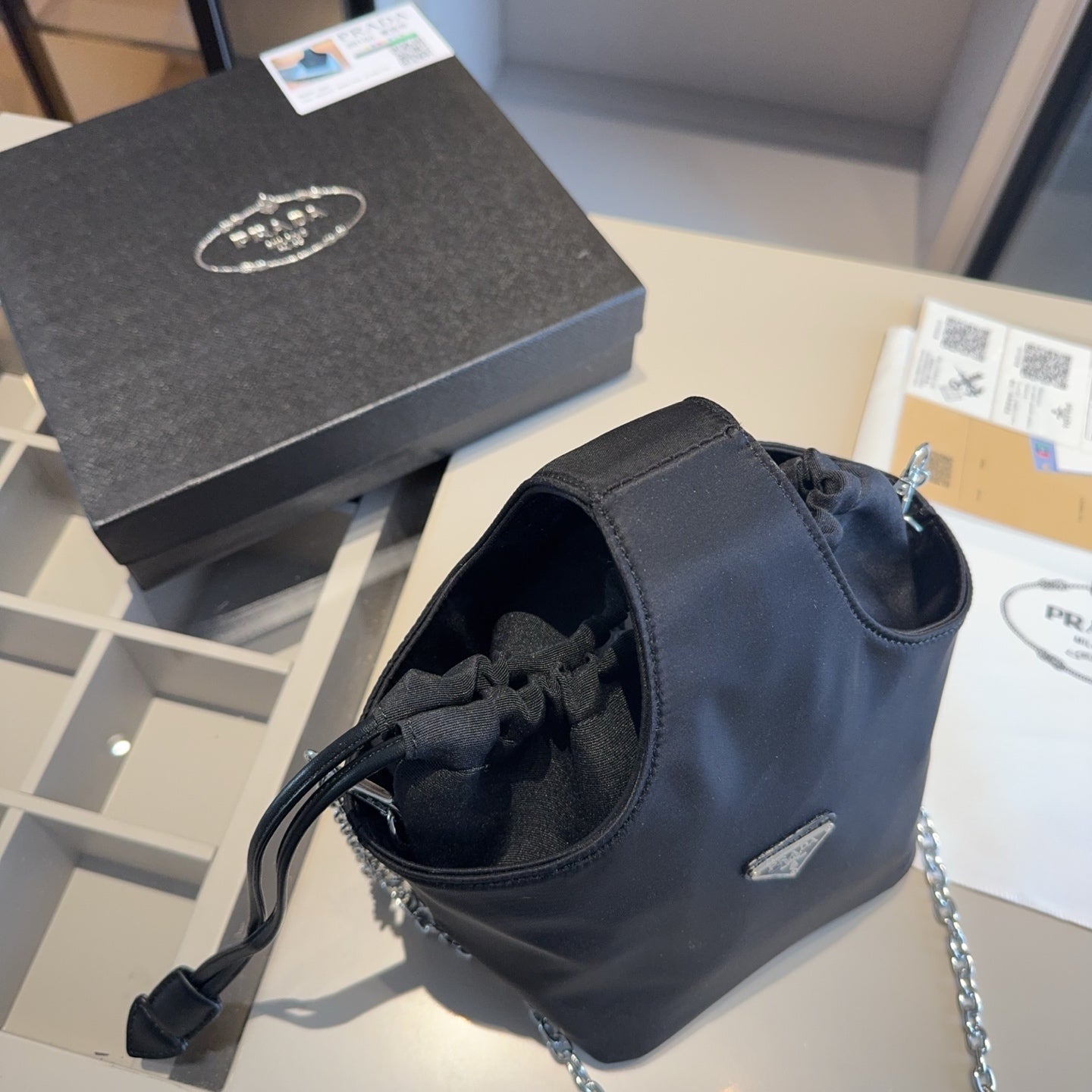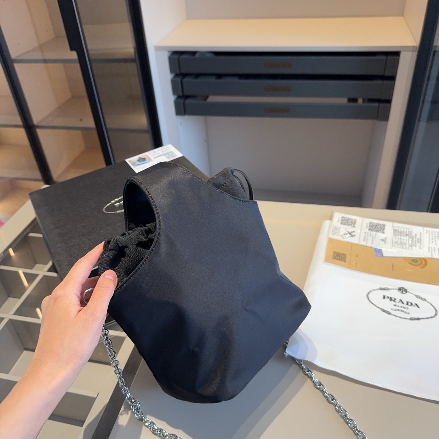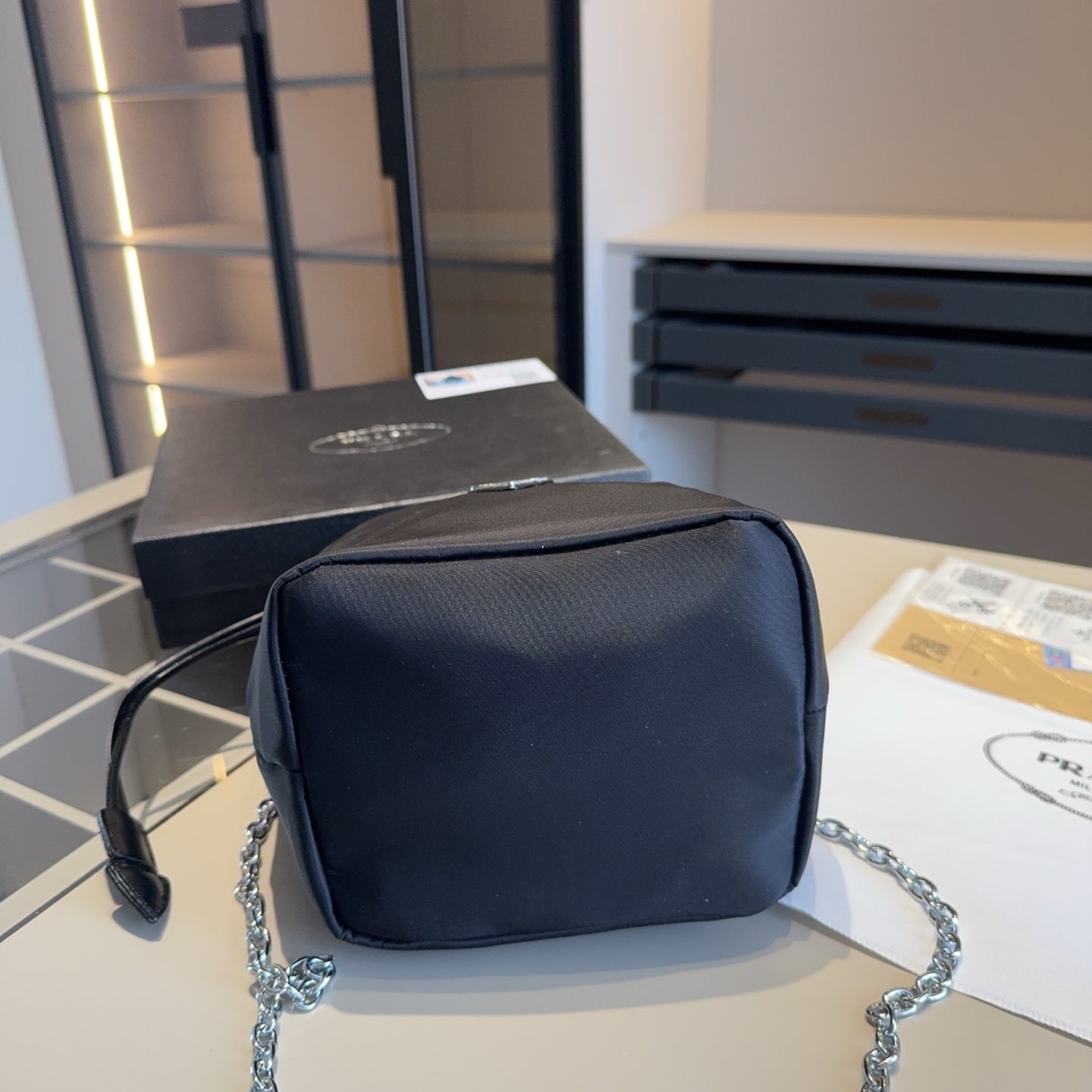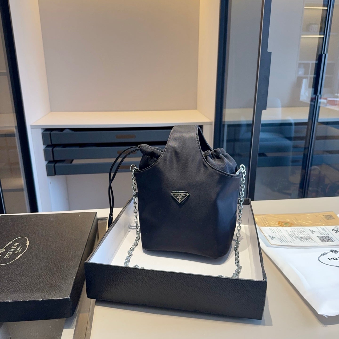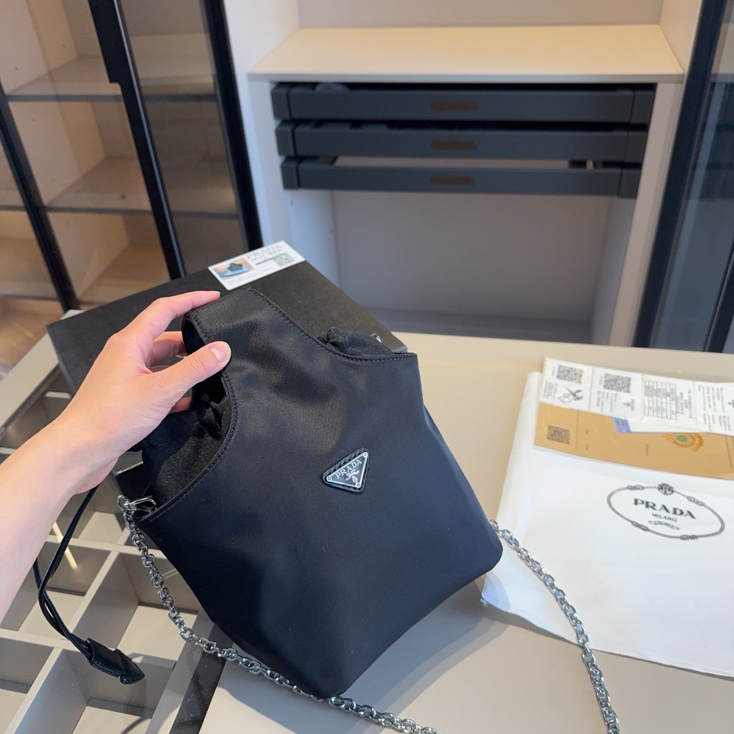 Each bag comes beautifully packaged in an original gift box (size: 18*25*14), making it an ideal present for any occasion. Elevate your accessory collection with the elegance and practicality of the Prada Chain Bag.