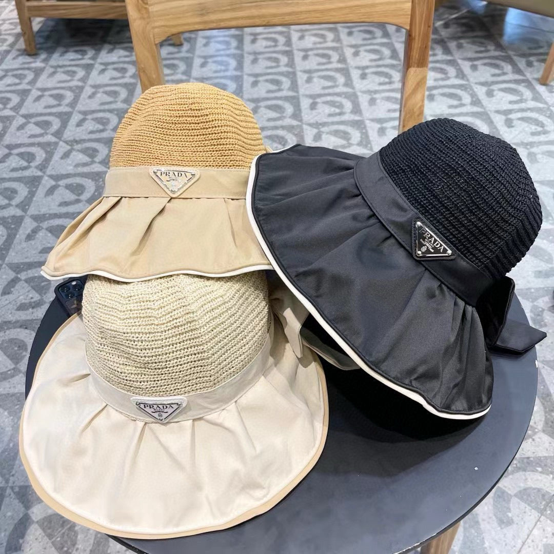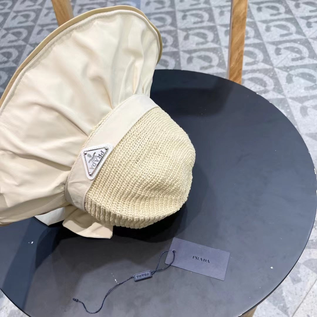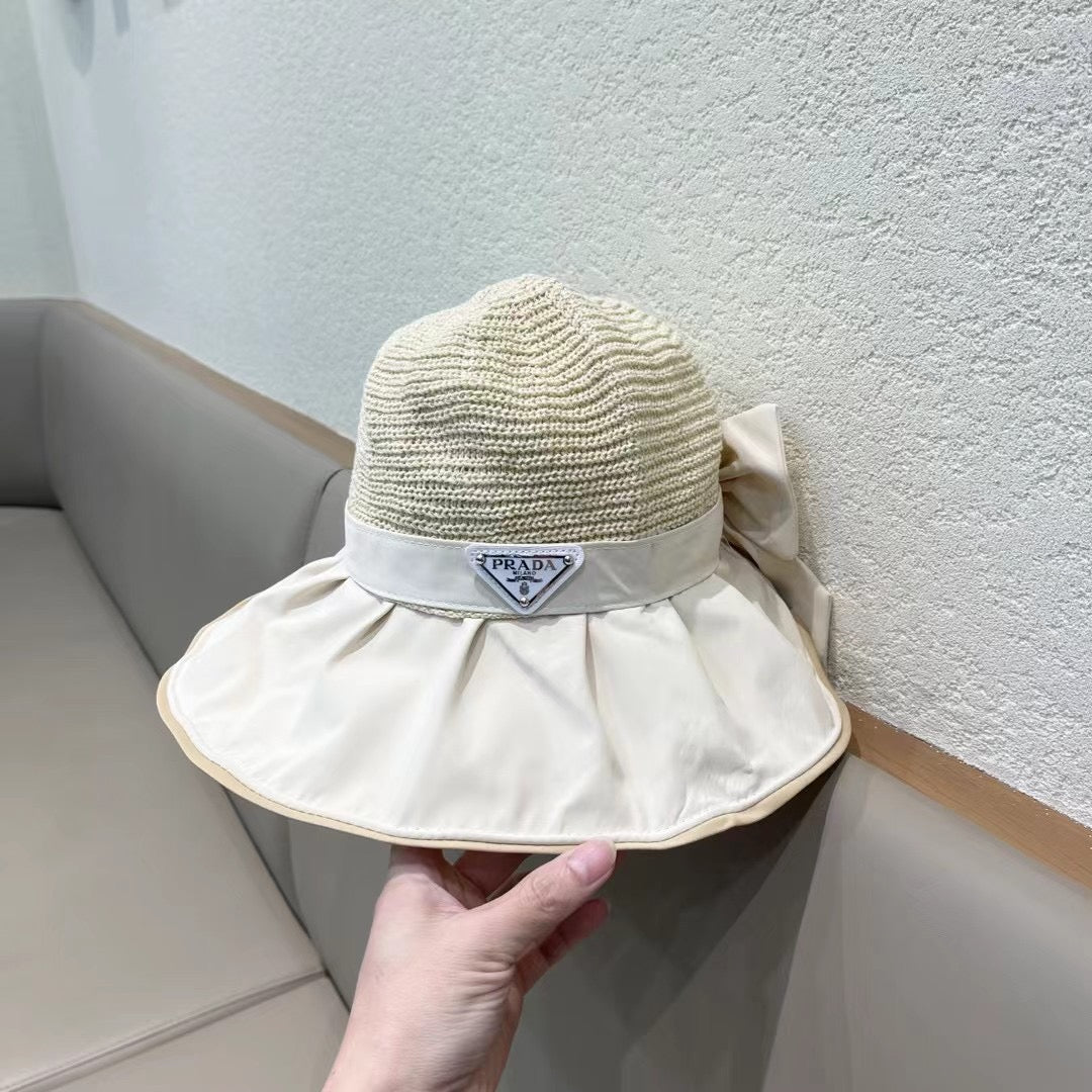 Elevate your spring and summer wardrobe with the PRADA Women's Vinyl Sun Hat, expertly designed for stylish outdoor adventures. This fashionable hat features a large brim for optimal sun protection and a delicate bow for a touch of elegance. Crafted from premium vinyl, it offers anti-UV properties, making it the perfect companion for your travel escapades. Stay chic and protected from the sun's rays while enjoying those sunny days. Ideal for beach trips, picnics, or just a stroll in the park, this fisherman-style sun hat combines functionality with high-end fashion.