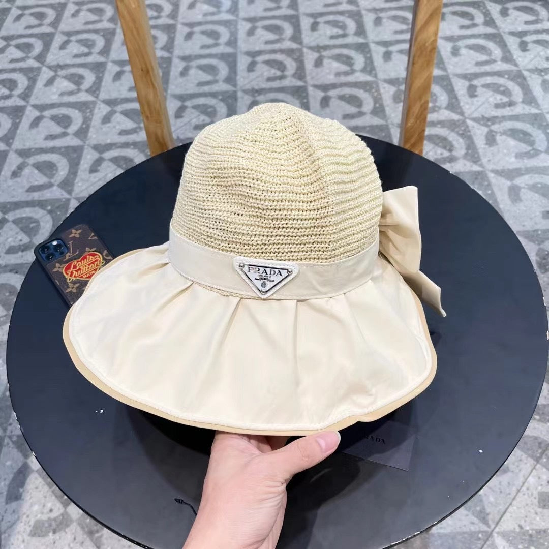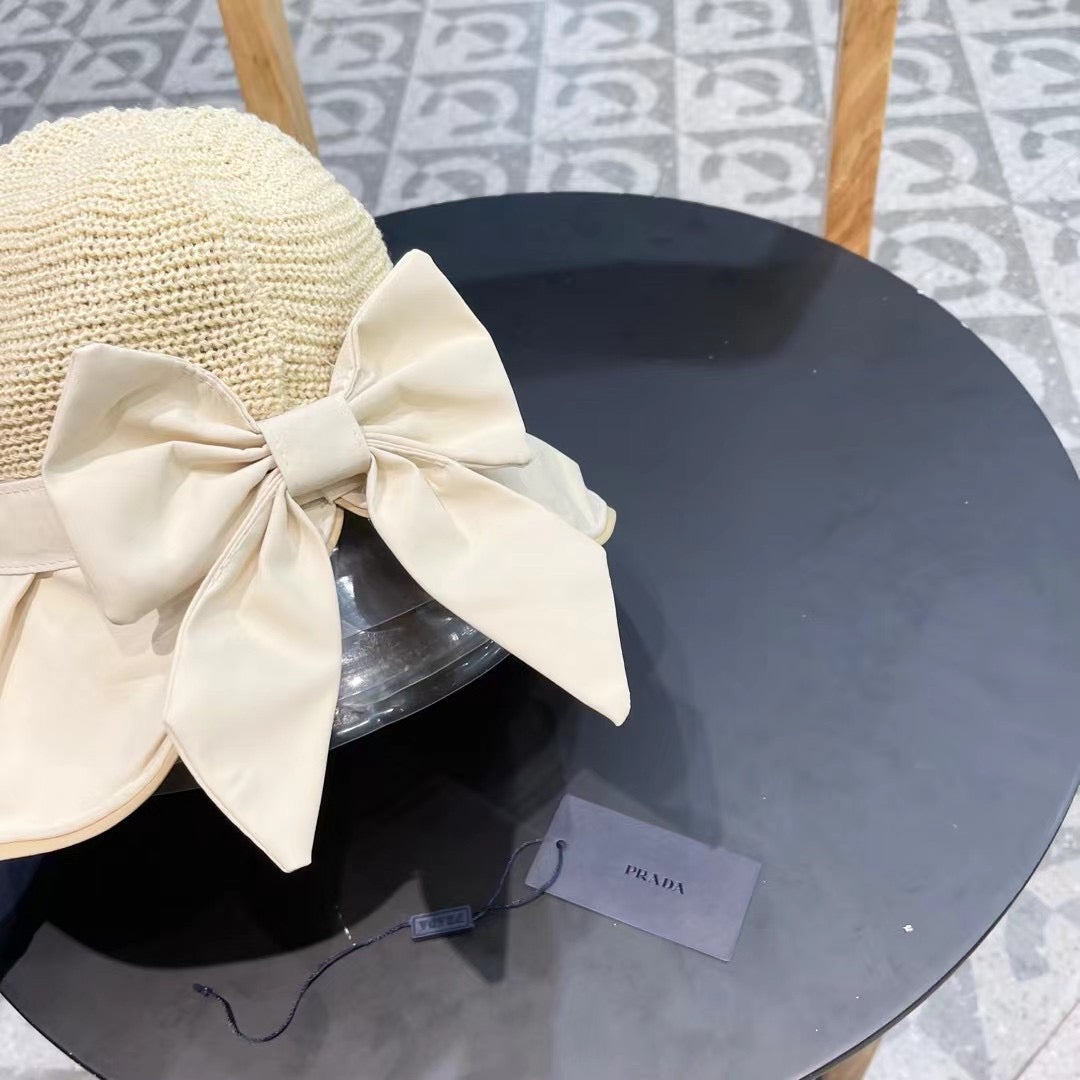 PRADA Women's Anti-UV Vinyl Sun Hat with Large Brim and Bow